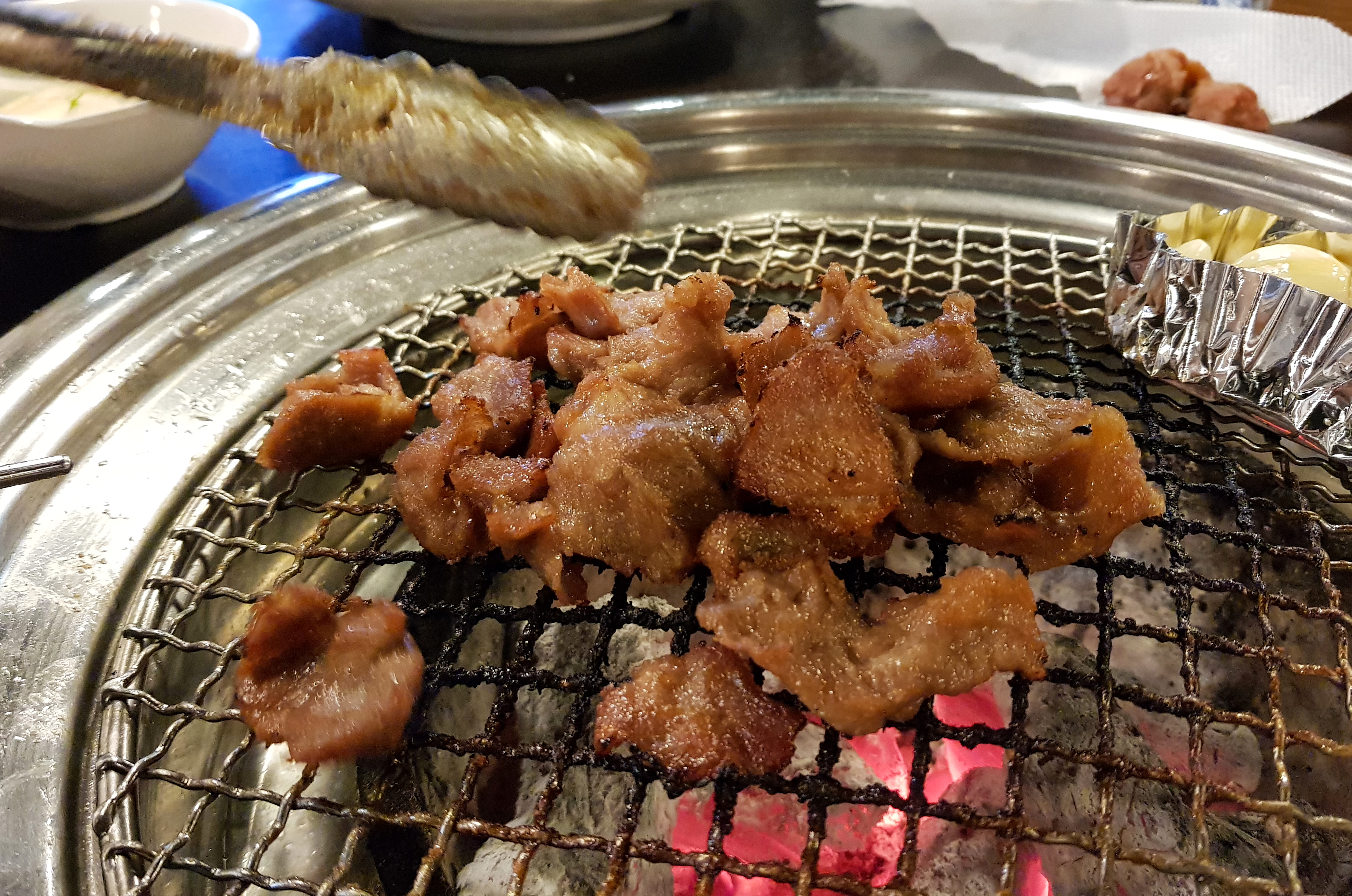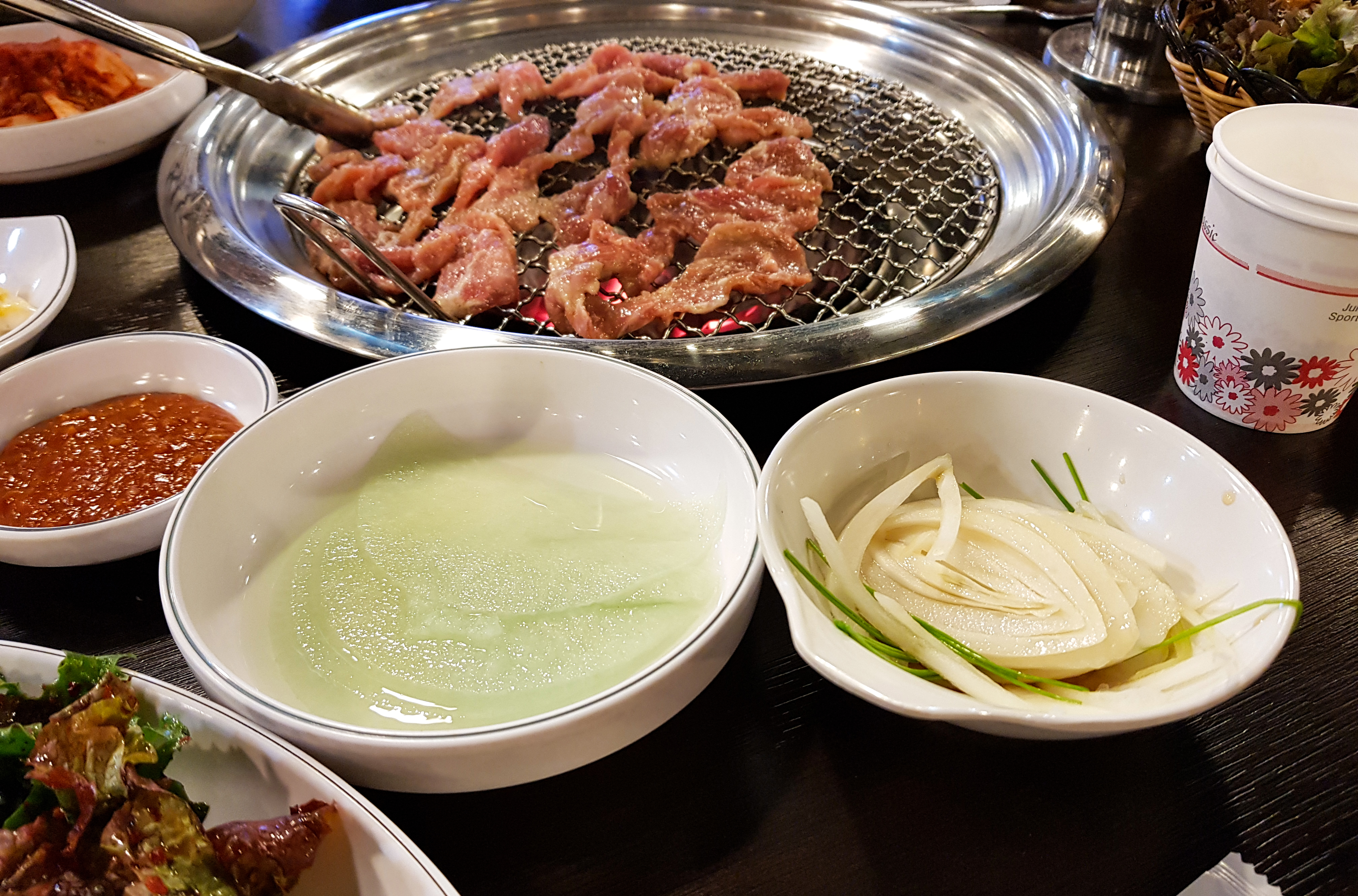 통통돼지뽈살 가게는 내국인도 많았지만, 외국인들이 꽤 많이 있더라구요. 통통돼지뽈살의 밑반찬은 콘샐러드, 김치, 양파절임, 상추무침 등이 있었고 돼지뽈살의 양은 2인분을 주문했지만, 2명이서 먹기엔 적은 듯 했습니다.