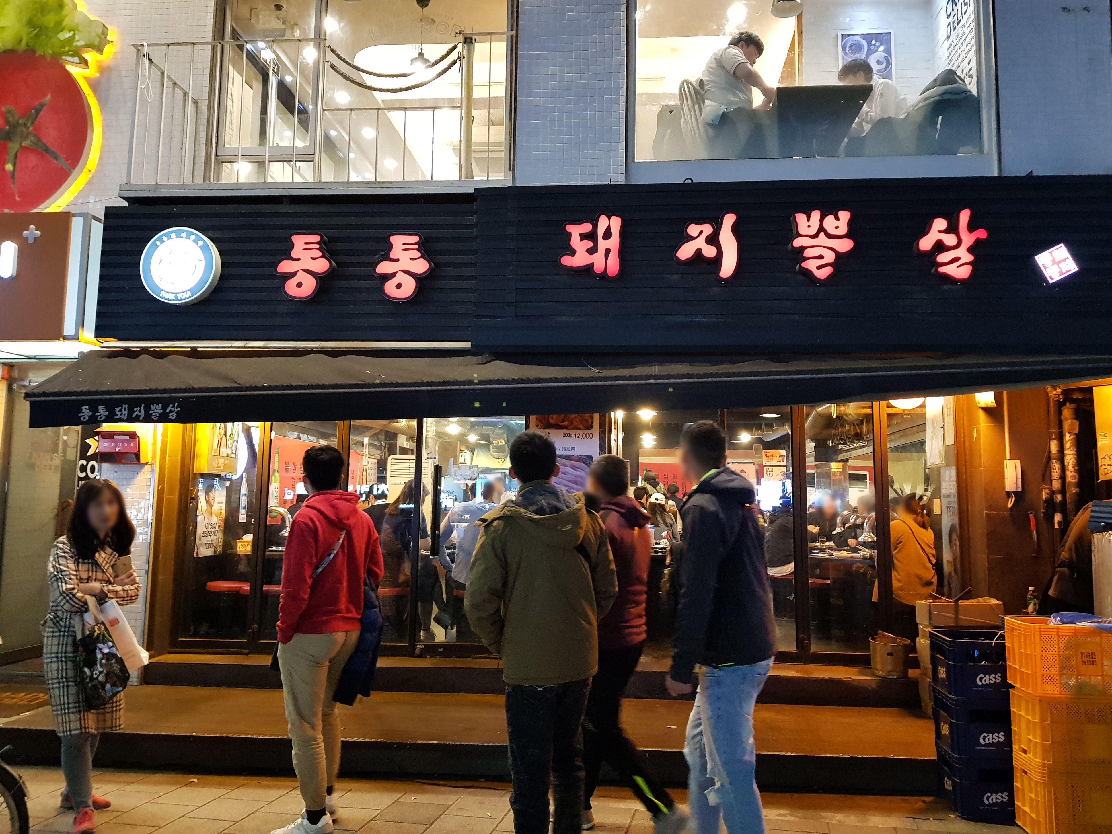홍대에 워낙 먹거리도 많고 다양해서 어디로 갈 지 고민을 하다가 그래도 손님이 가장 많고, 평점도 높은 곳으로 가려고 <통통돼지뽈살> 가게로 들어갔습니다. 그 밖에 예전에 가락동에서 뽈살을 먹은 적이 있는데, 꽤 맛있게 먹었던 기억이 있어서 오랜만에 뽈살집을 방문하게 되었습니다.
