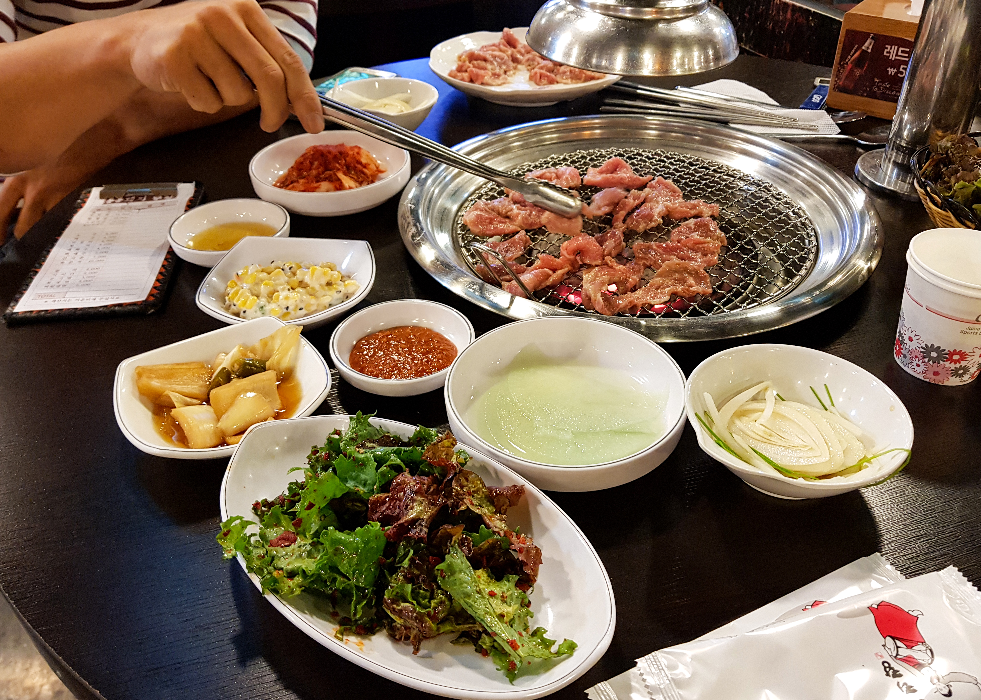 통통돼지뽈살 가게는 내국인도 많았지만, 외국인들이 꽤 많이 있더라구요. 통통돼지뽈살의 밑반찬은 콘샐러드, 김치, 양파절임, 상추무침 등이 있었고 돼지뽈살의 양은 2인분을 주문했지만, 2명이서 먹기엔 적은 듯 했습니다.