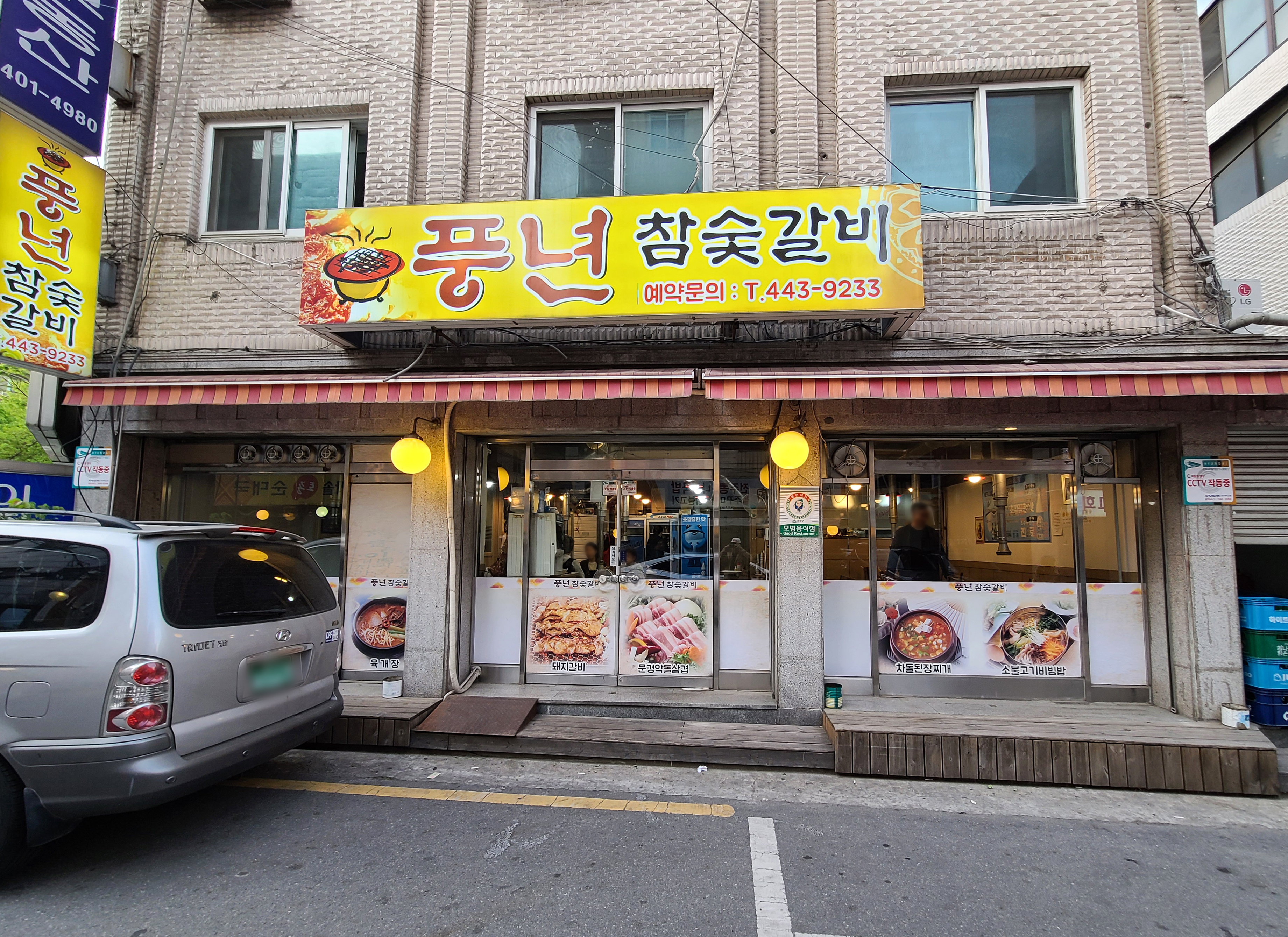 풍년참숯갈비 가게의 모습은 위와 같습니다. 노란색으로 된 가게의 간판이 눈에 들어오며, 가게 앞에는 차량 2대 정도 주차할 수 있는 공간이 있었습니다. 저희는 주차할 수 있는 공간의 여부를 몰라 인근에 주차를 하고 가게에 방문하였습니다.
