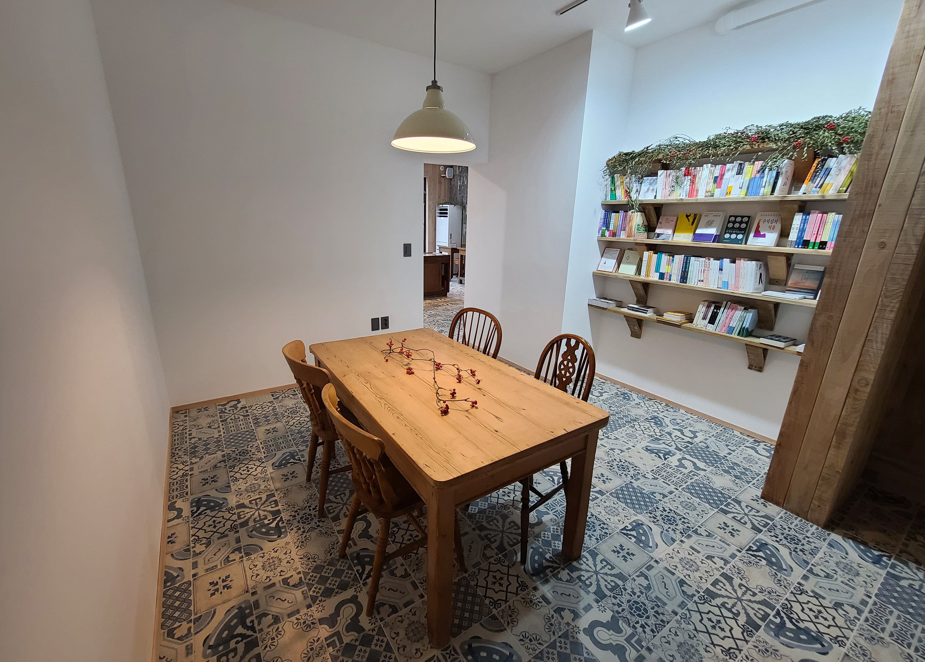 계단을 따라서 2층으로 올라가면 예약 전용 게스트하우스가 위치해 있으며, 여유로운 분위기에서 독서할 수 있는 공간도 마련되어 있었습니다. 그럼 이제 강화도 멍때림 카페의 독서 공간을 함께 살펴보실까요?