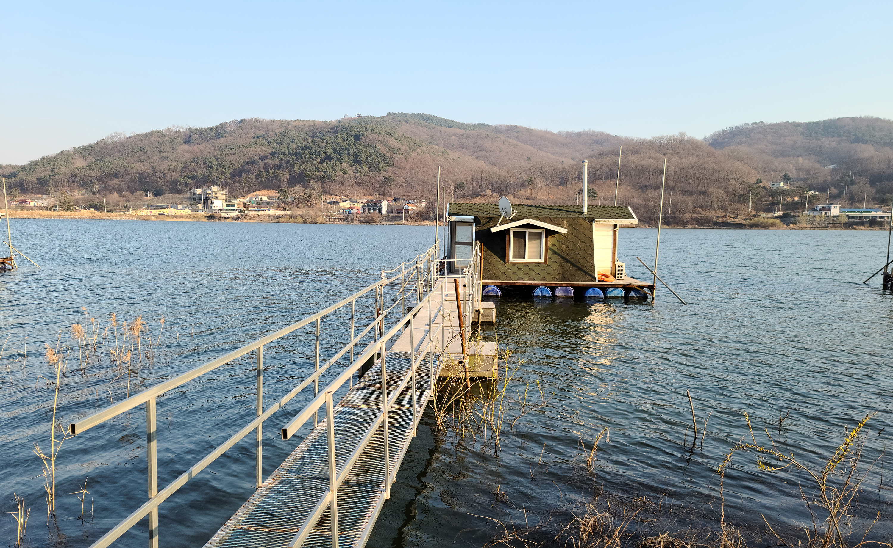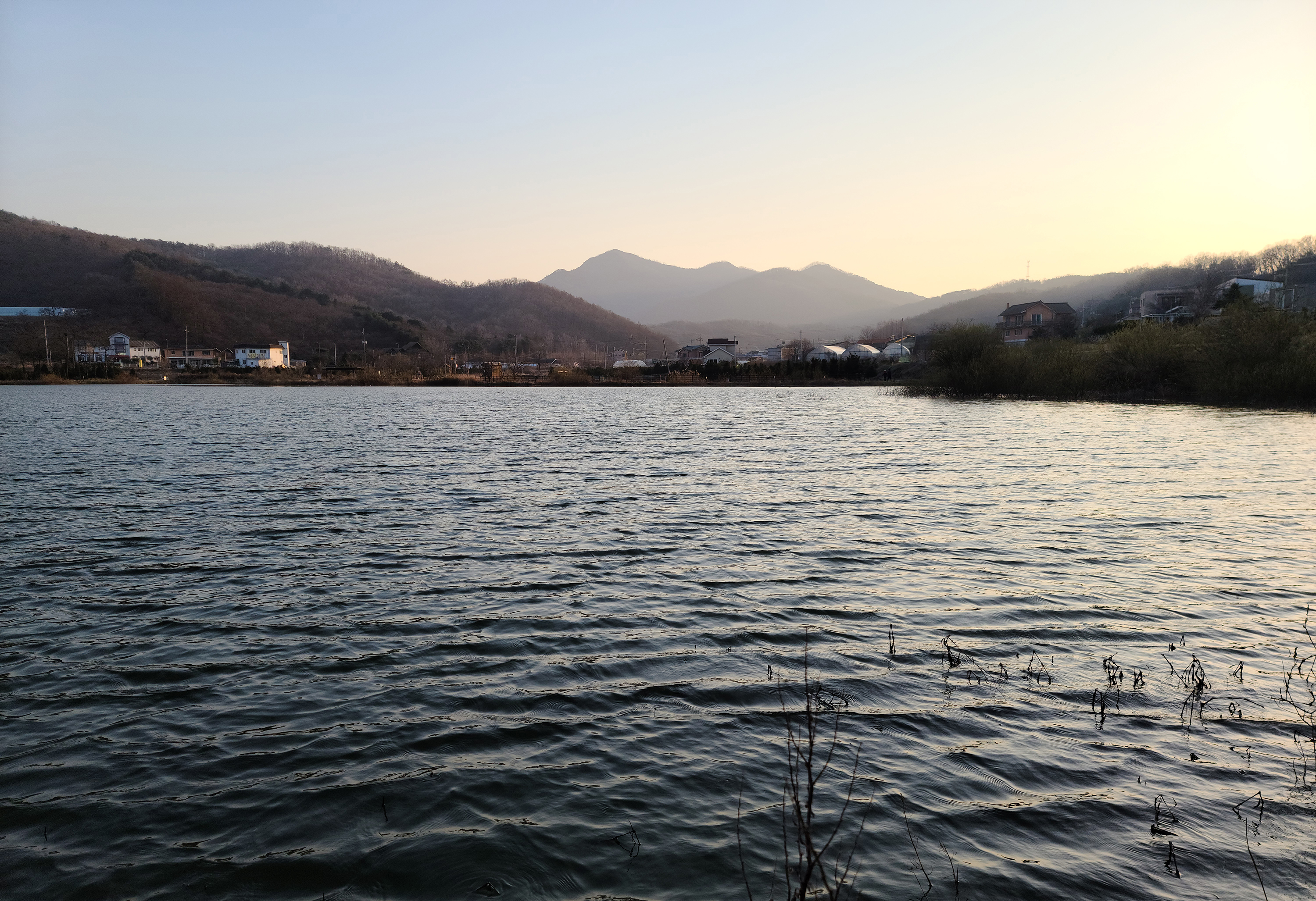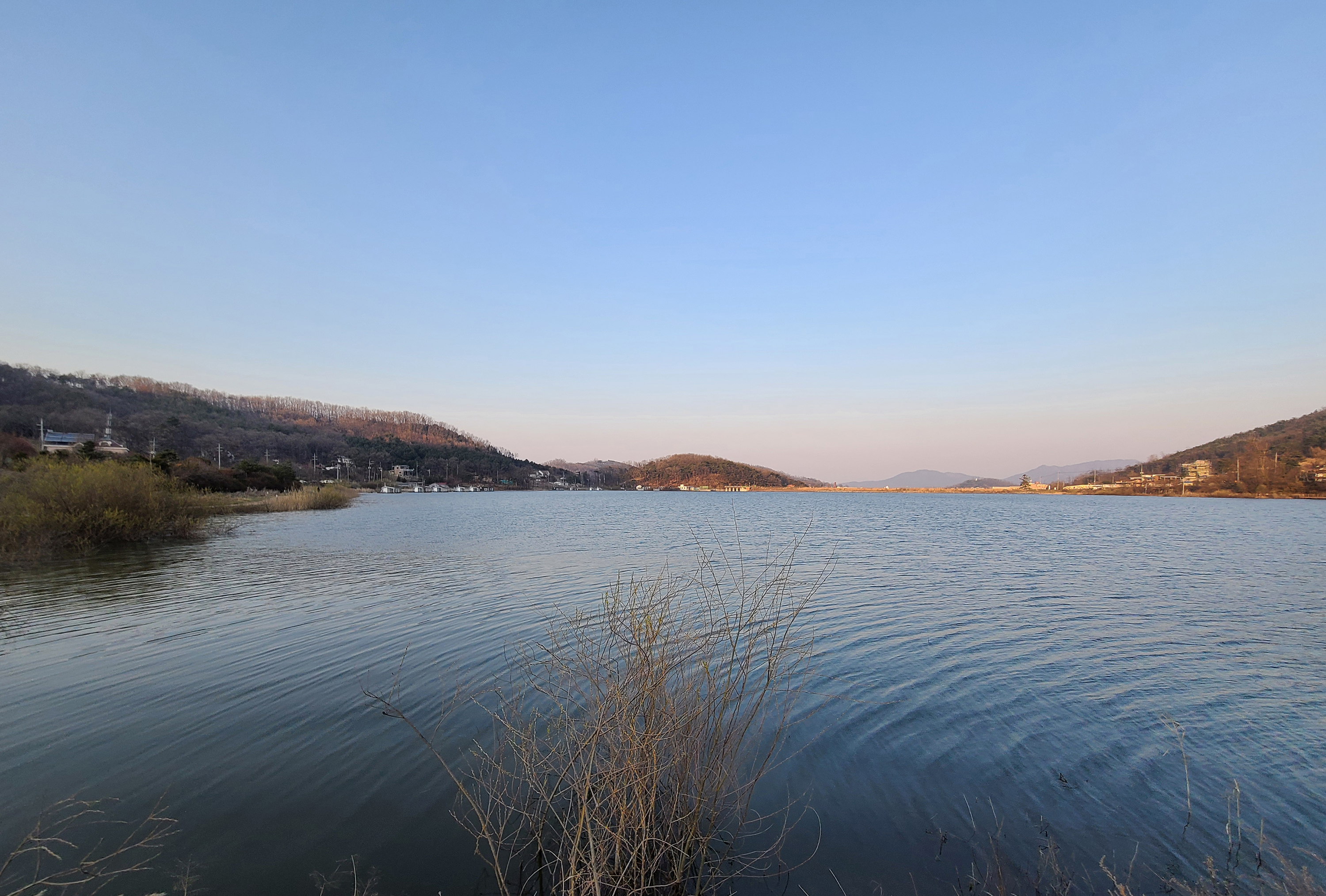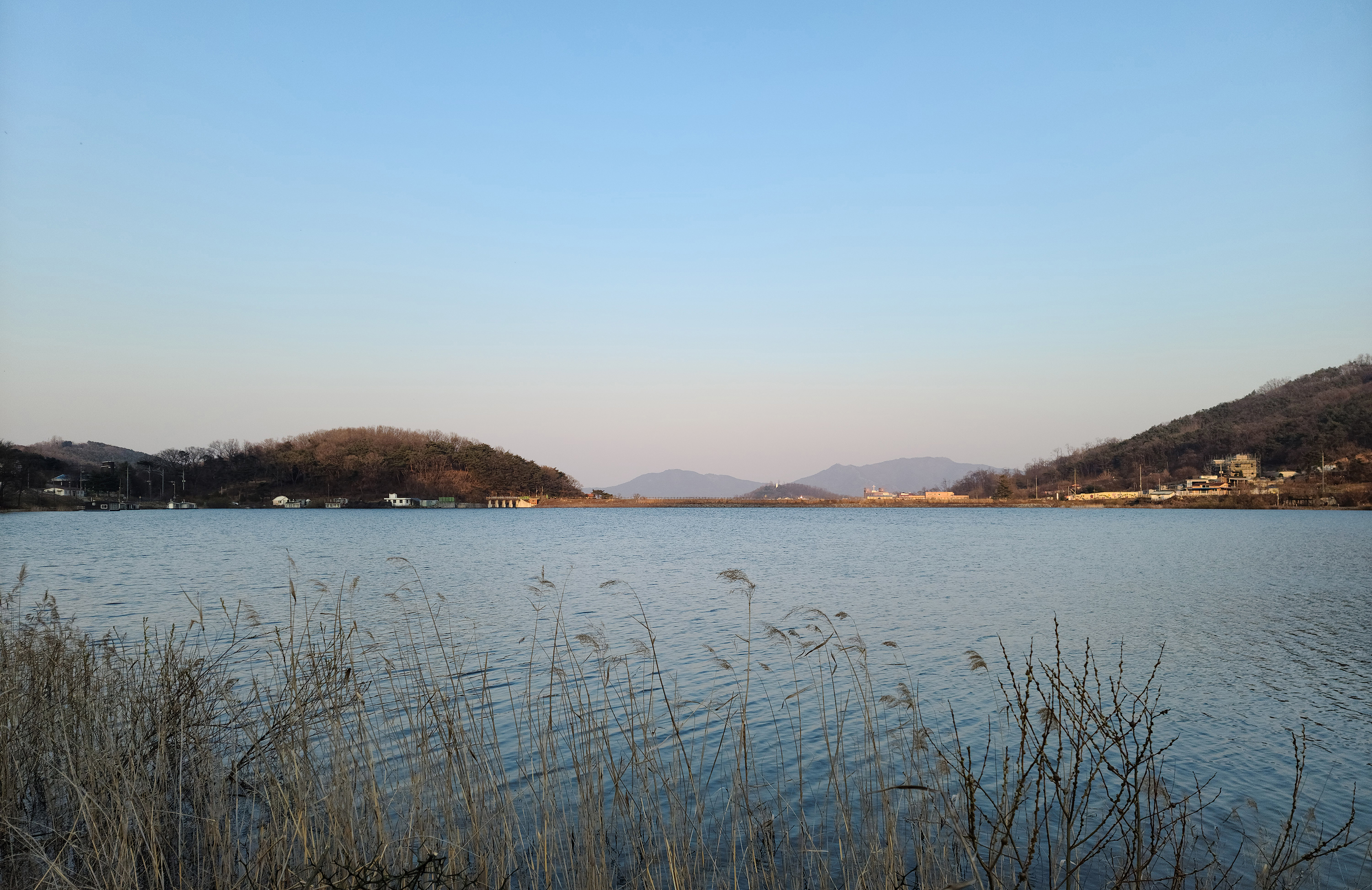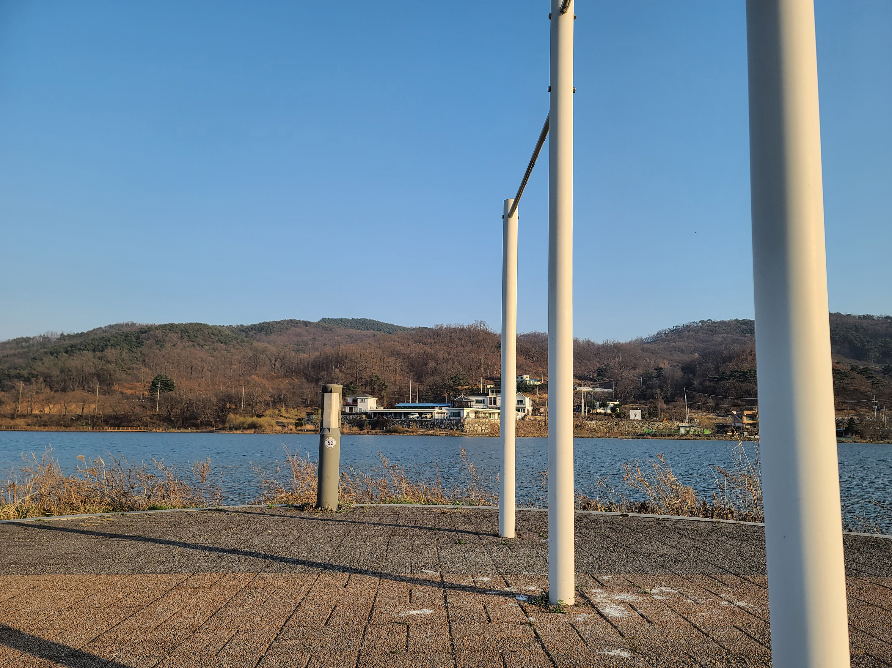 보통 저수지 인근에는 카페들이 자리해 배경을 해치는 느낌이 강한데, 강화 국화저수지는 그런 시설이 없어서 더 좋았습니다. 저수지 내 낚시터가 있기는 한데, 저수지의 풍경을 해치지 않아서 괜찮았습니다.