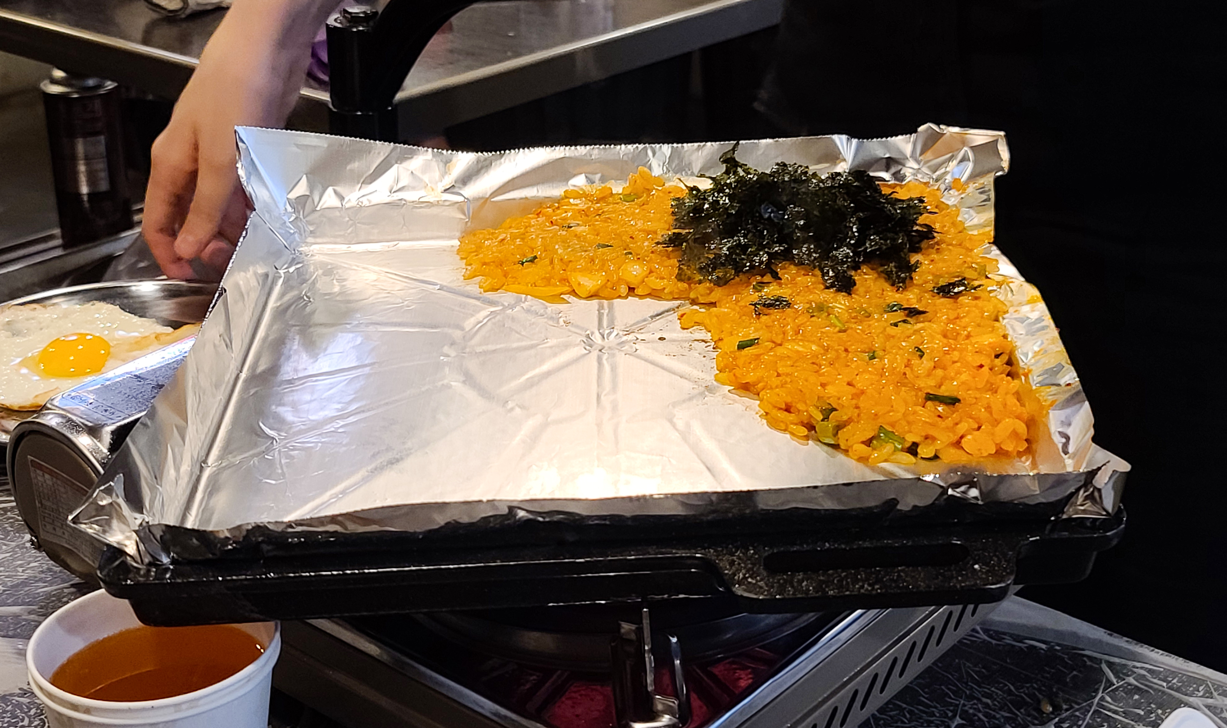 메뉴를 다시 한 번 살펴보니, 볶음밥이 있더라고요. 계란 프라이를 추가하여 먹기로 하고 메뉴를 주문했습니다. 볶음밥은 독특하게 불판의 틀을 이용해 하트(♡) 모양으로 구워주시더라고요, 생각난 김에 비슷하게 생긴 공감(♥)도 눌러 주시면 감사하겠습니다.
