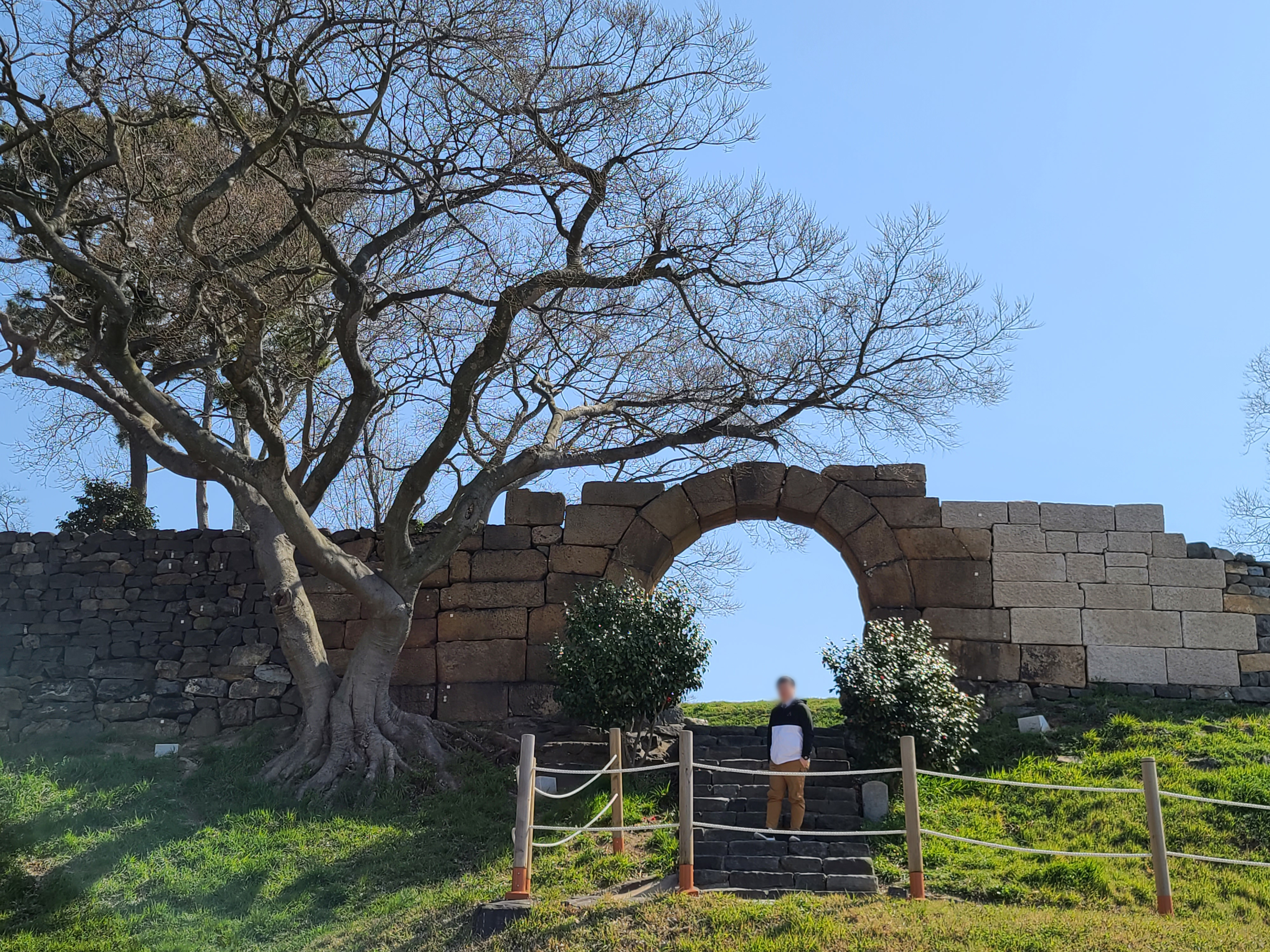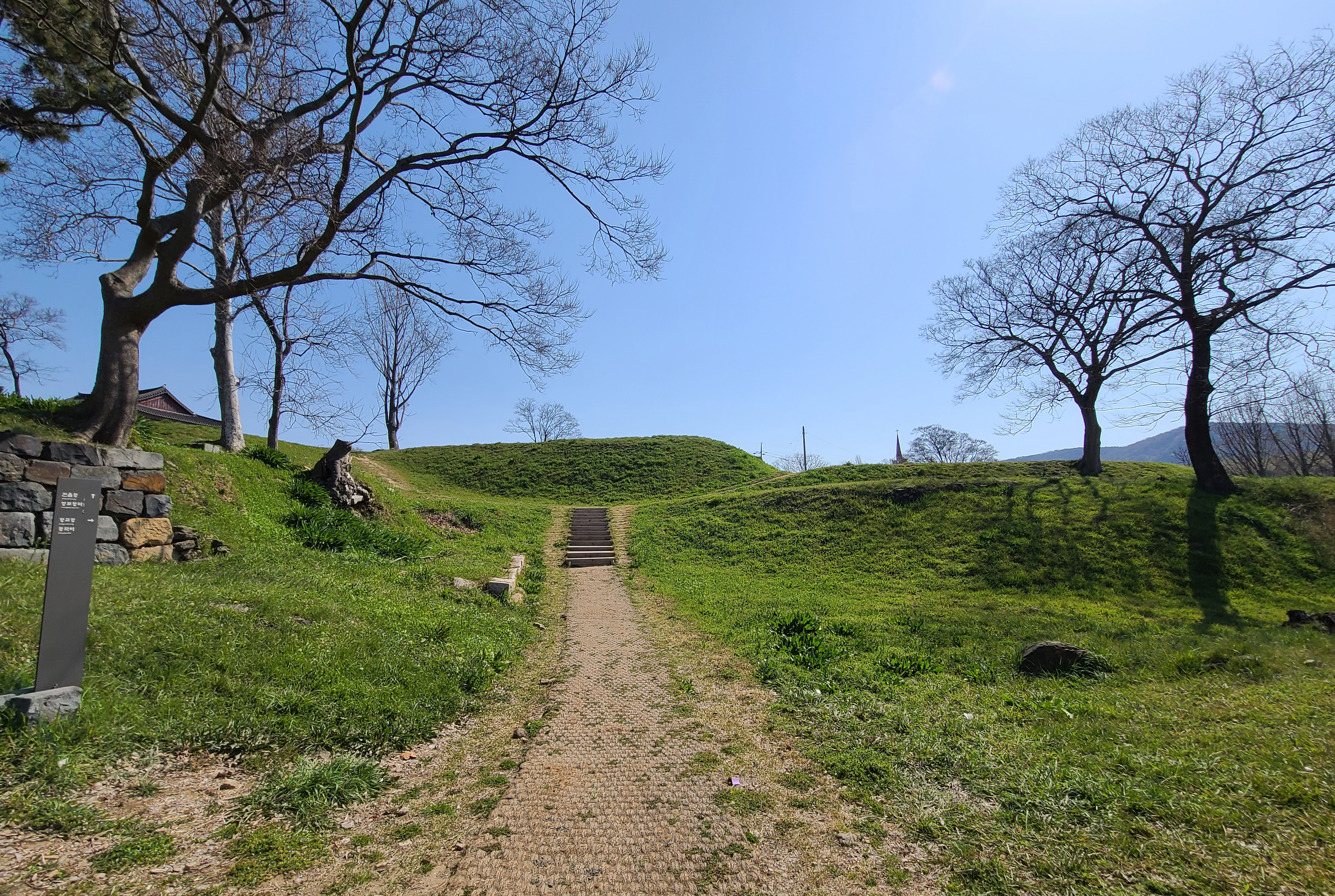 충청 수영성 입구를 따라 들어가 보면 이렇게 넓은 잔디동산이 펼쳐집니다. 파란 하늘과 녹색 잔디를 보니 기분이 절로 좋아지는 것 같더라고요. 충청수영성은 큰 규모는 아니지만, 주변 경관이 너무나도 아름다워 둘러보는 매력이 있는 장소였습니다.