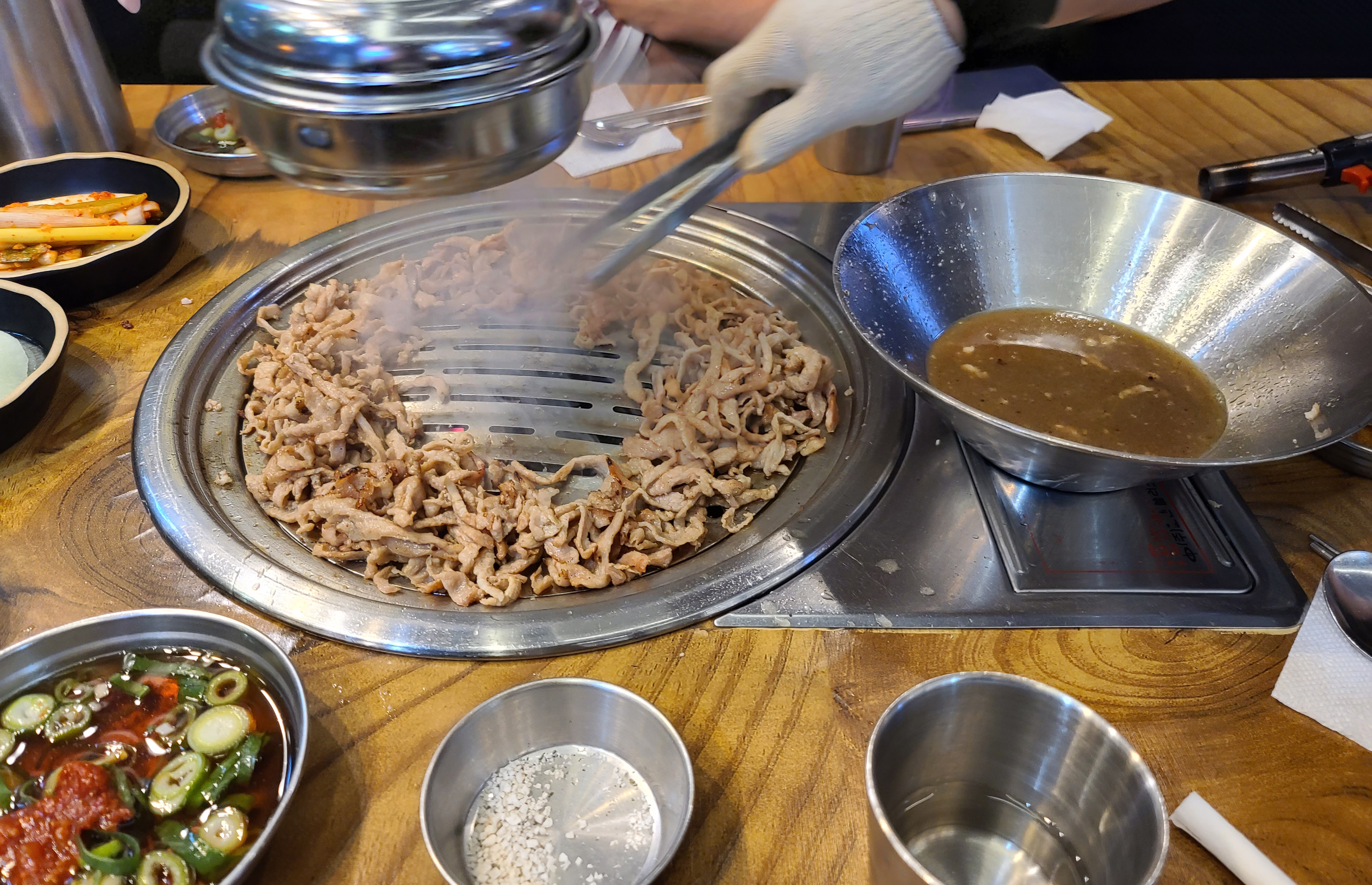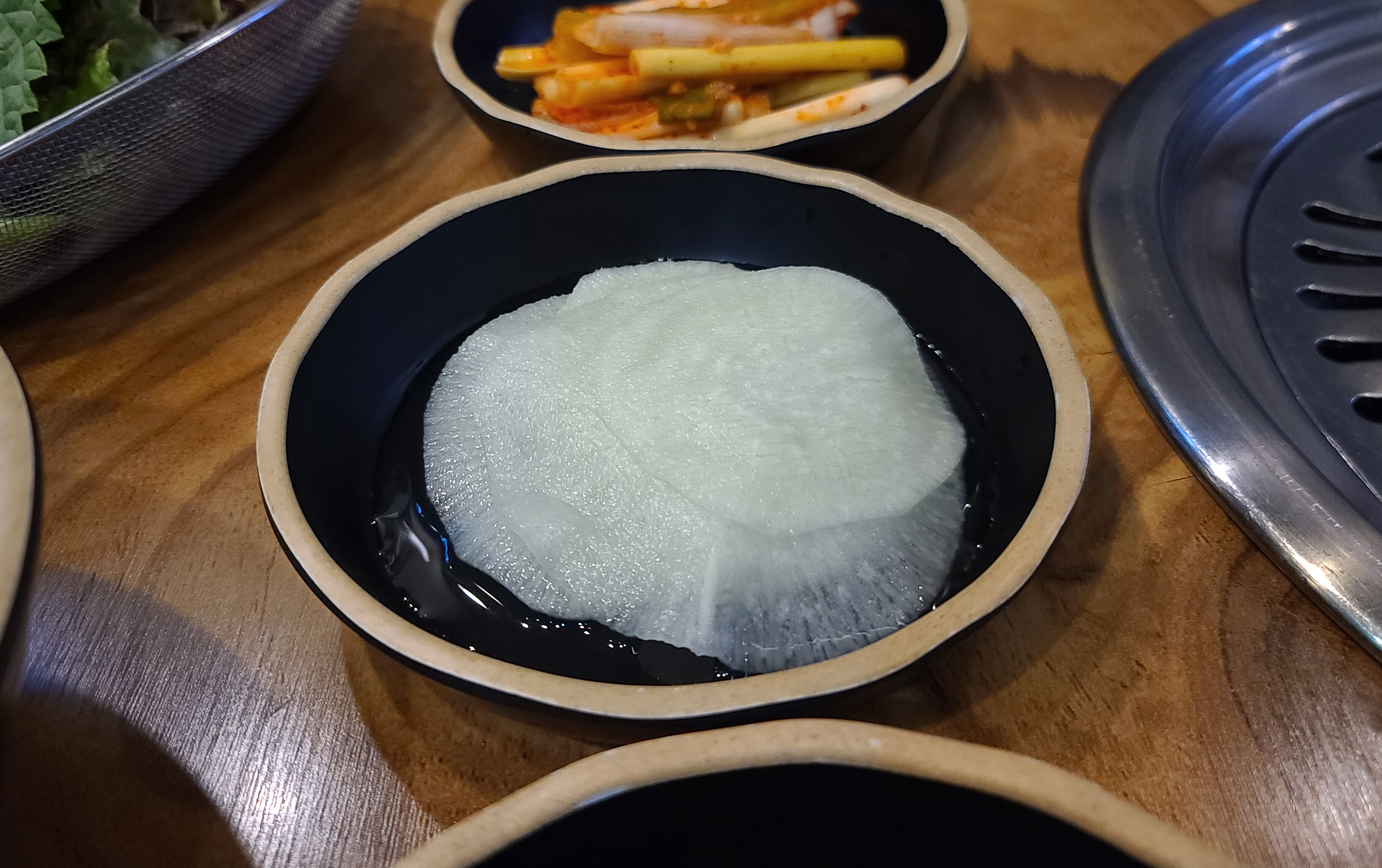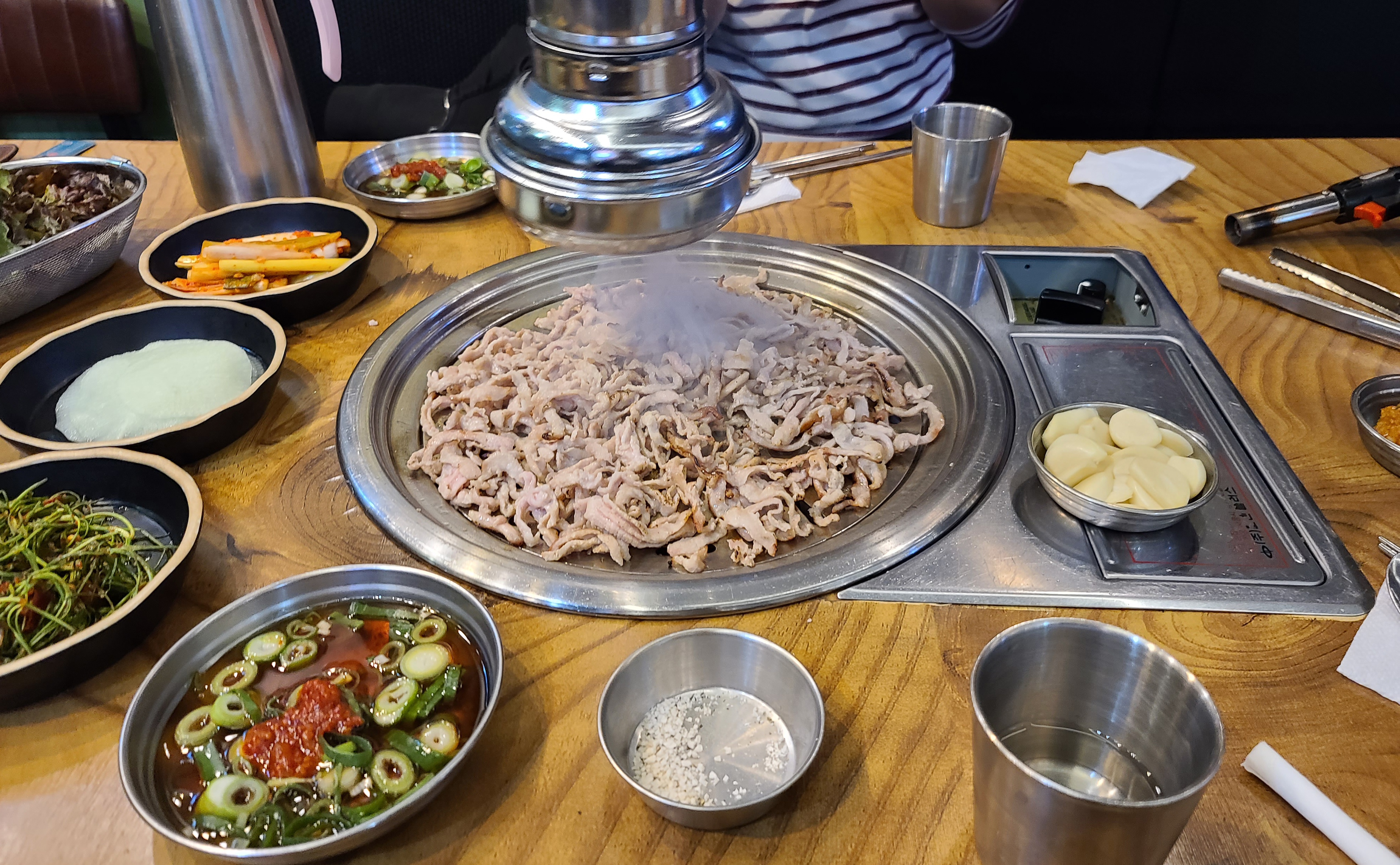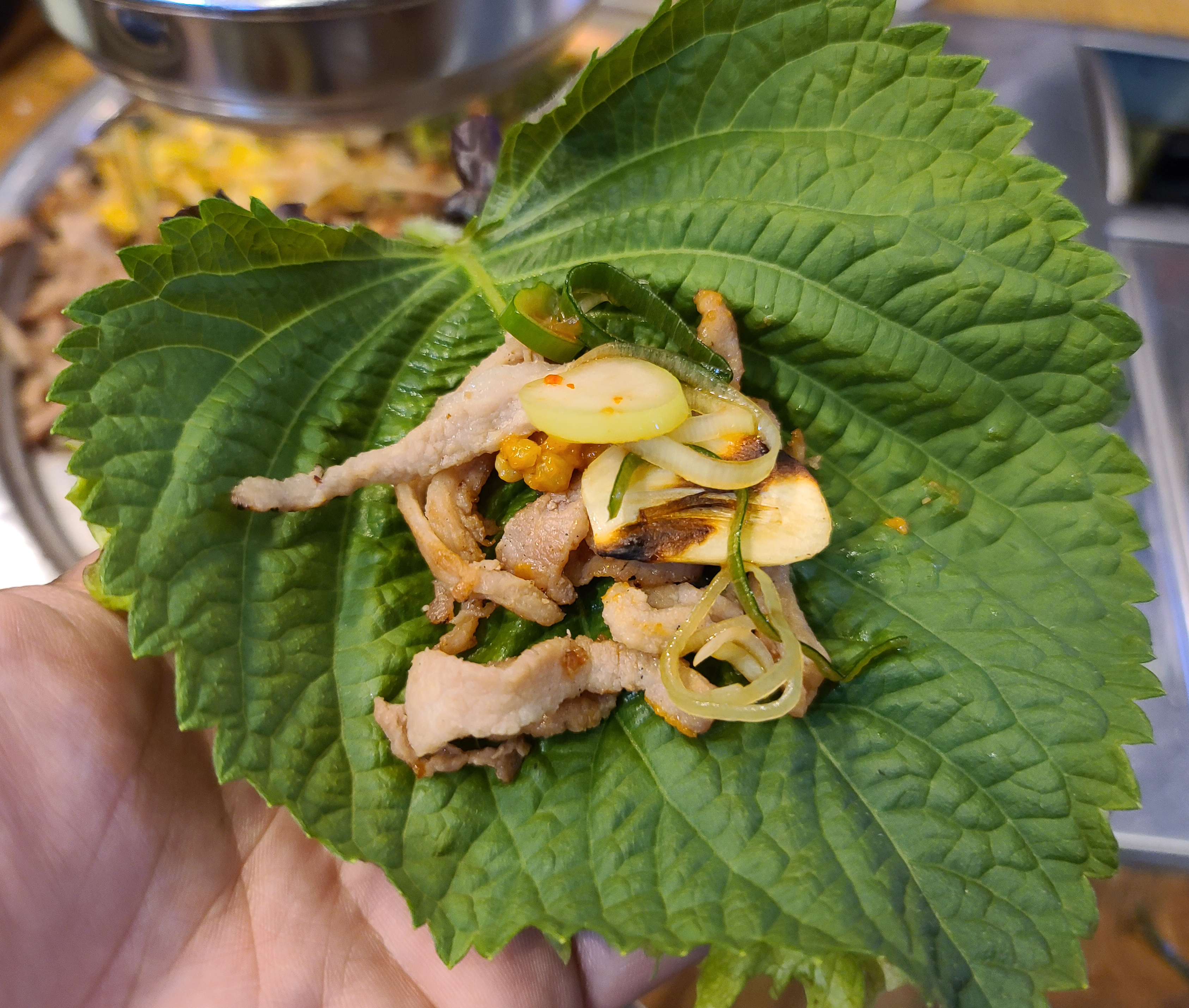 잘 구워진 항정살에 마늘과 대파장에서 파를 건져내 같이 쌈을 싸 먹으면 더없이 좋았죠. 정말 여태까지 다녀본 고깃집 중에 가장 손이 많이 가는 메뉴였고, 고기 굽는 손놀림이 아직도 잊히지 않을 정도로 놀라웠습니다.