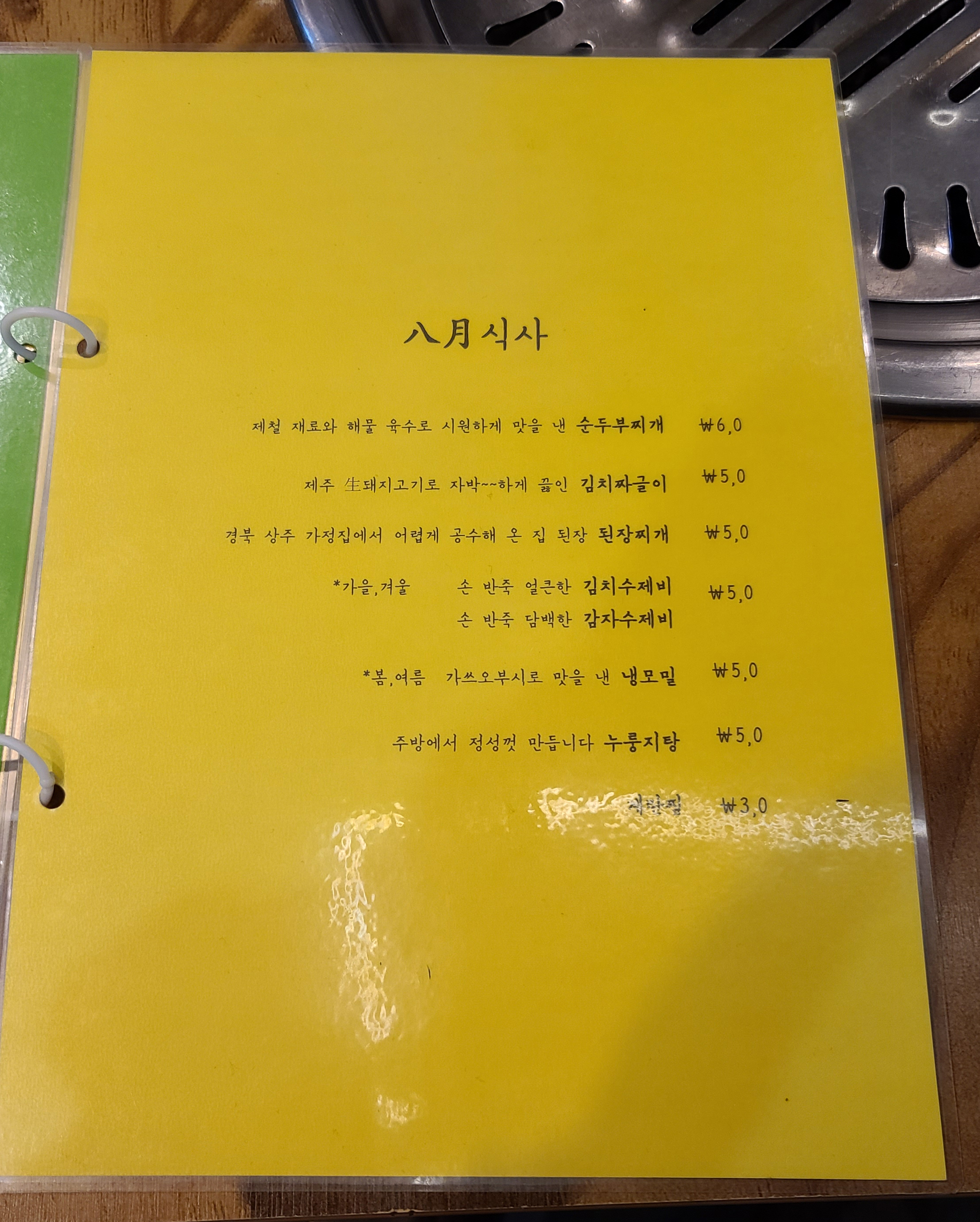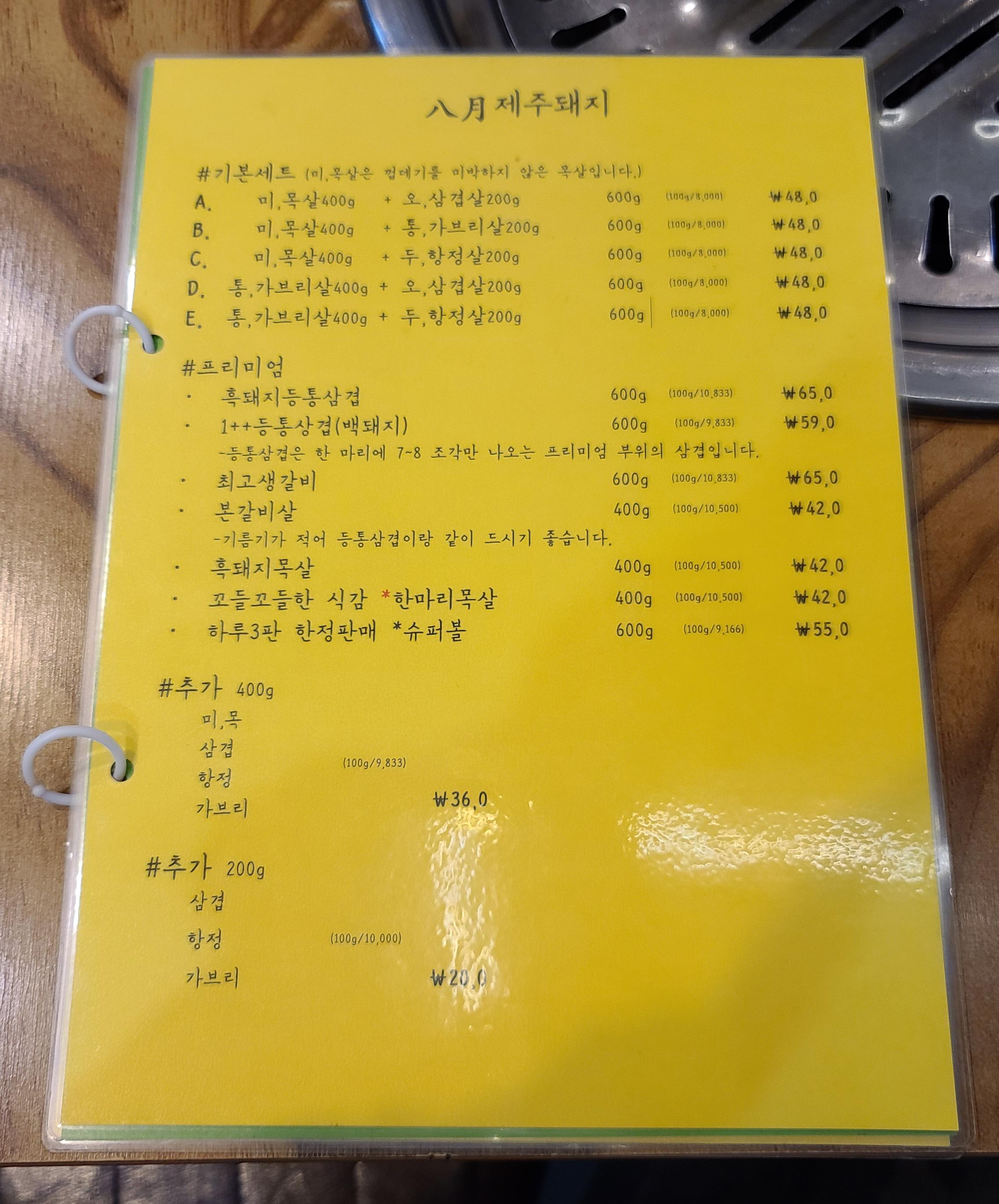 가게의 메뉴판은 위와 같이 칠판으로 큼지막하게 적혀있었습니다. 물론 종이 메뉴판도 있었고요. 저는 블로그 포스팅을 위해 종이 메뉴판의 사진을 따로 찍어보았습니다.