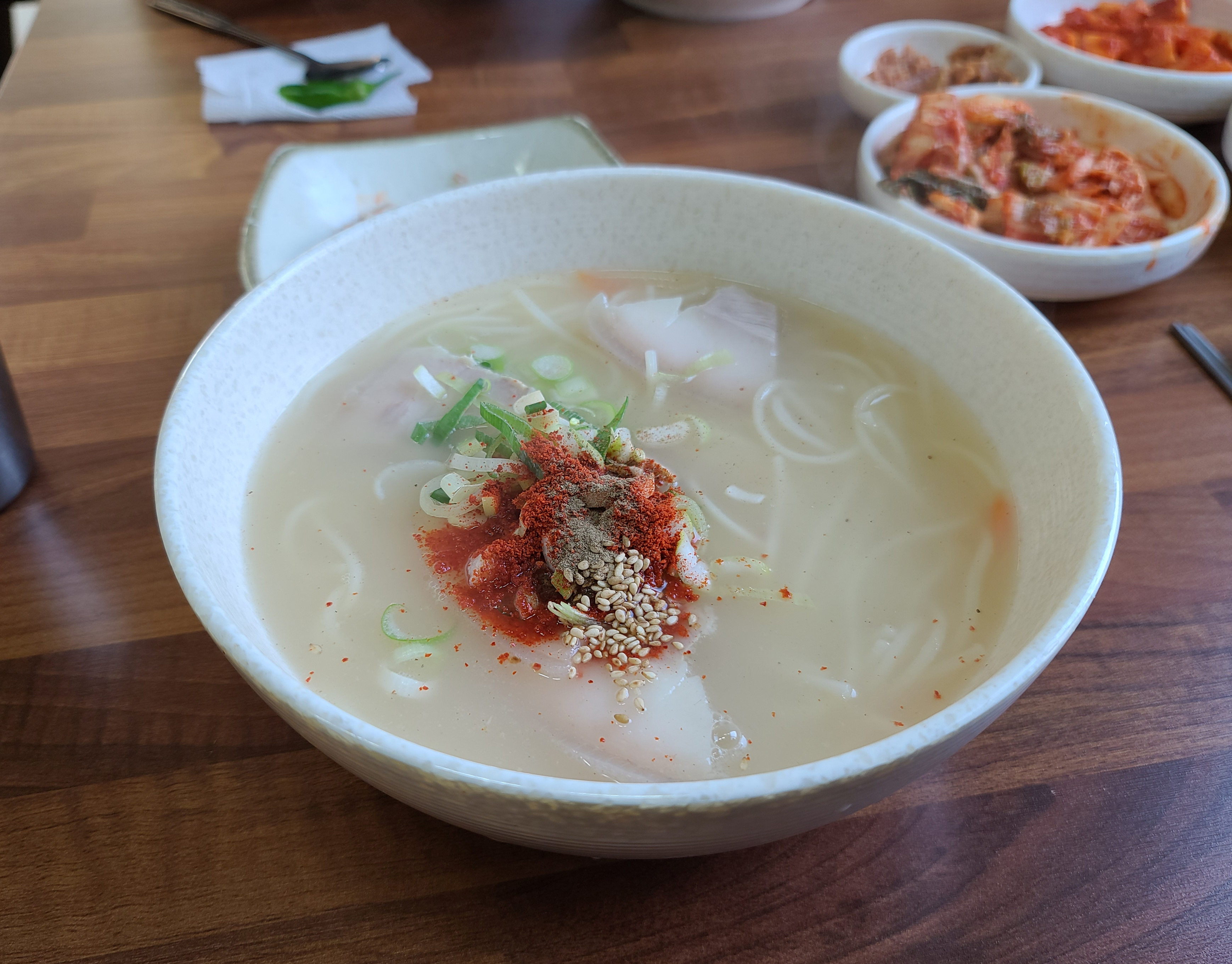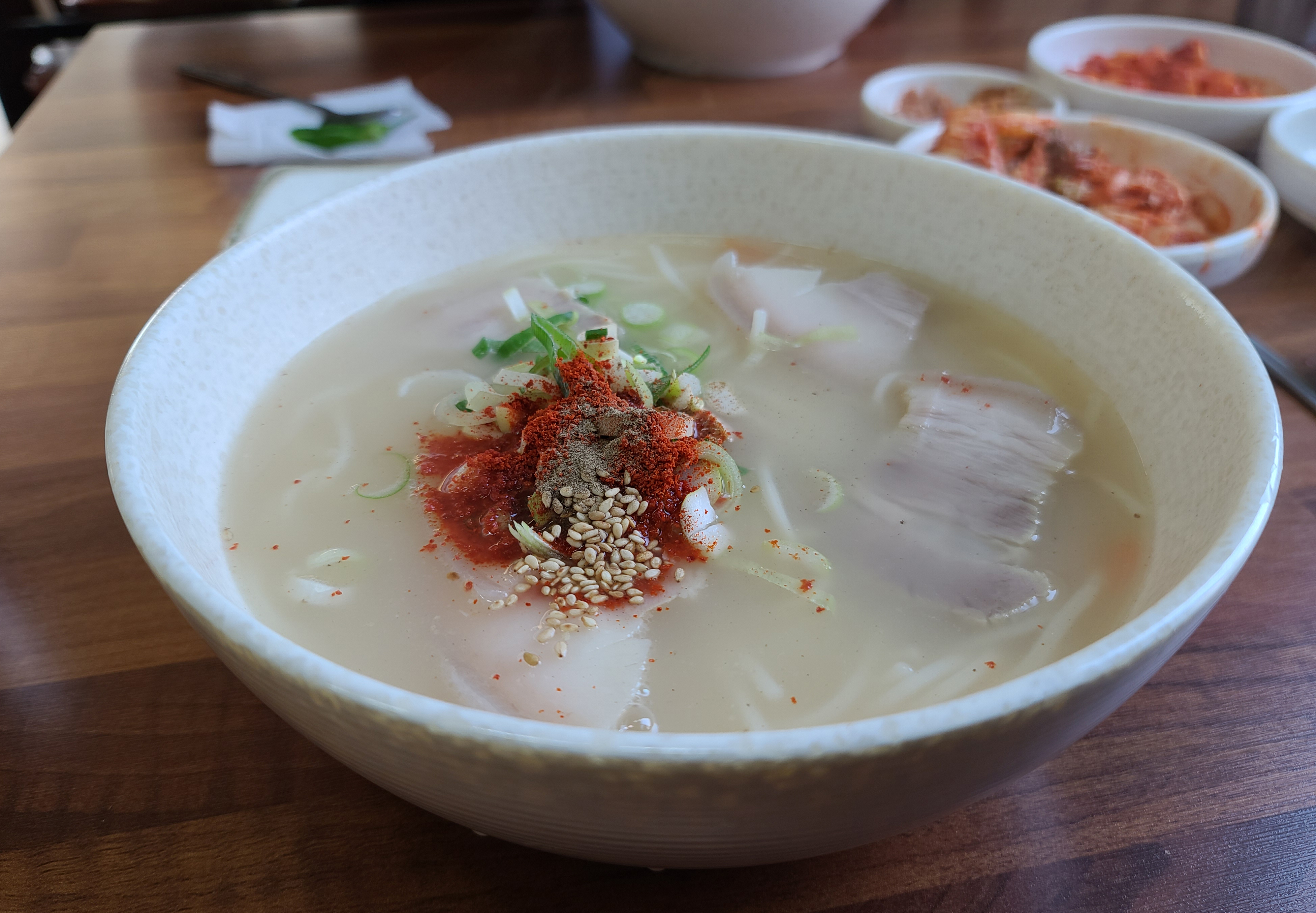 고기도 잘 삶아져 식감이 좋았으며, 배추김치와 특히 잘 어울렸습니다. 제가 제주도에 도착하자마자 첫 끼니여서, 허겁지겁 서비스로 주신 고기를 다 먹었더니, 사장님께서 인심 좋으시게도 고기를 더 내어주셨습니다. 물론 값을 더 받지 않으시고 말이죠. 장수물식당의 돔베고기도 맛있었지만, 하이라이트는 고기국수였죠.