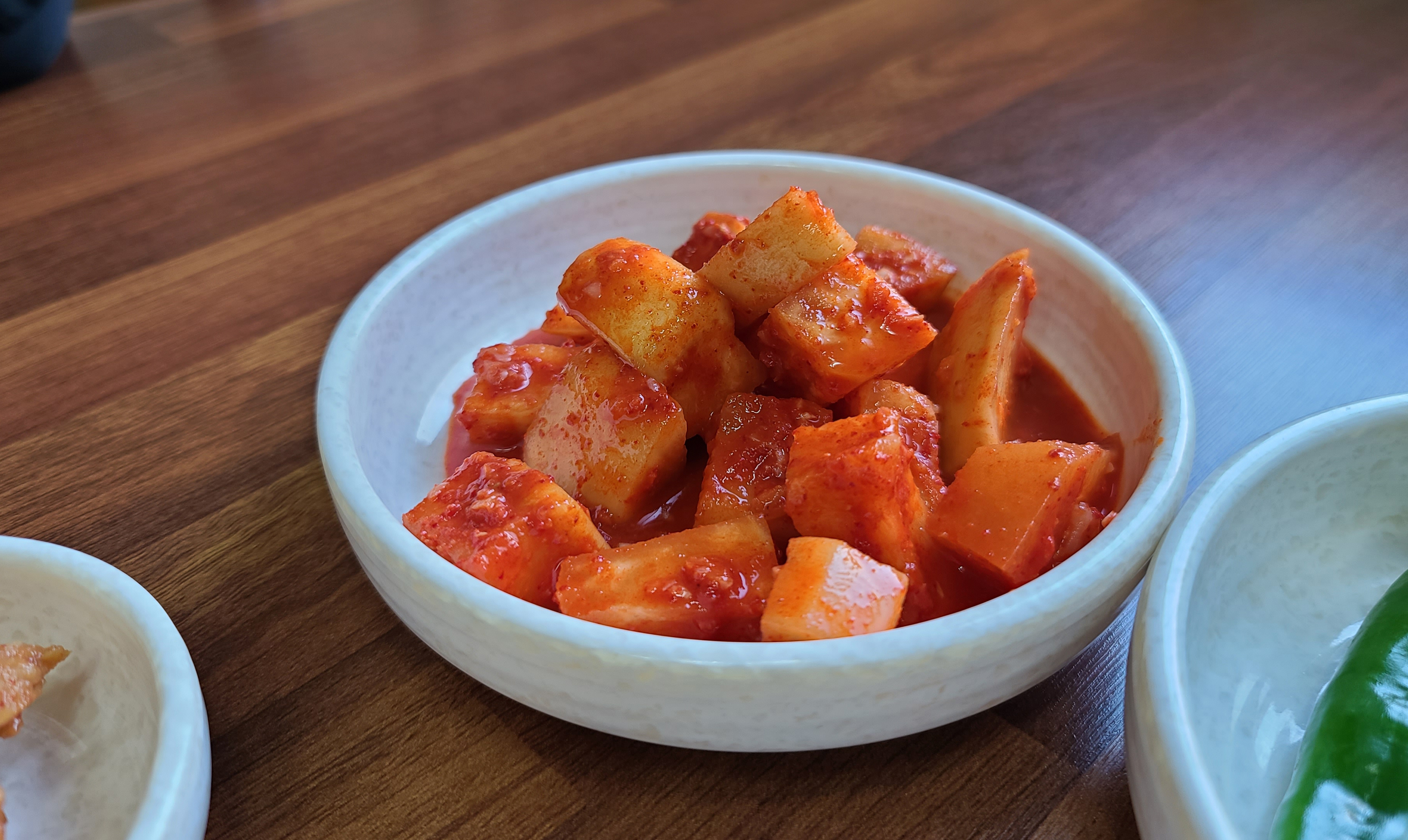 제주도 장수물식당은 돔베고기를 서비스로 몇 점 제공해주시는데요, 쌈장이나 순대용 소금에 찍어먹는 형태였습니다. 물론 깍두기나 배추김치와 곁들여도 좋았습니다.