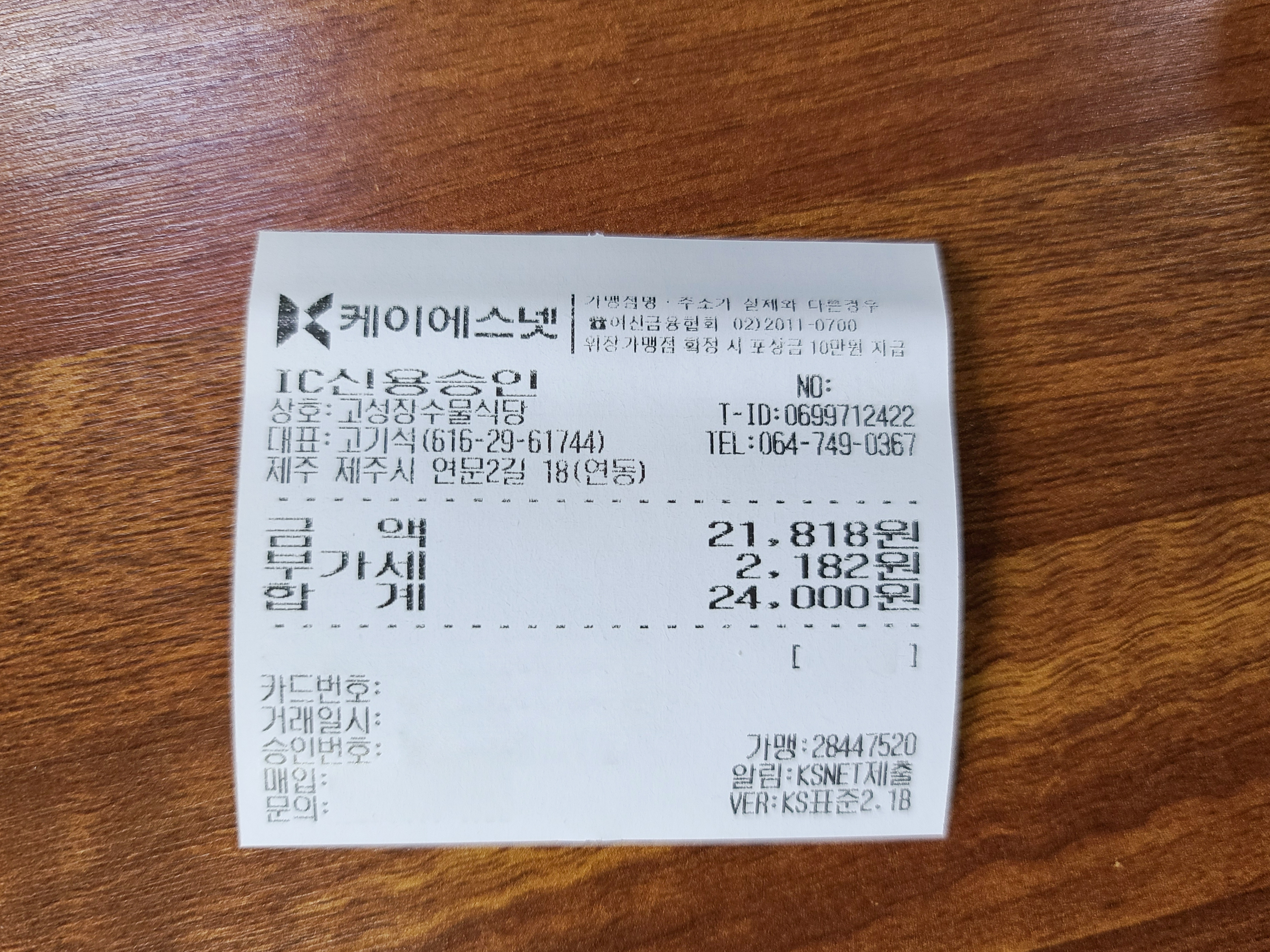 가격은 3인 24,000원 나왔으니, 고기국수 1인분에 8,000원 입니다. 제주에 또 방문하게 된다면 다시 방문할 의향이 있는 가게이고요, 제주여행을 계획하고 계신 분들이 있다면 추천드리고 싶은 가게입니다.