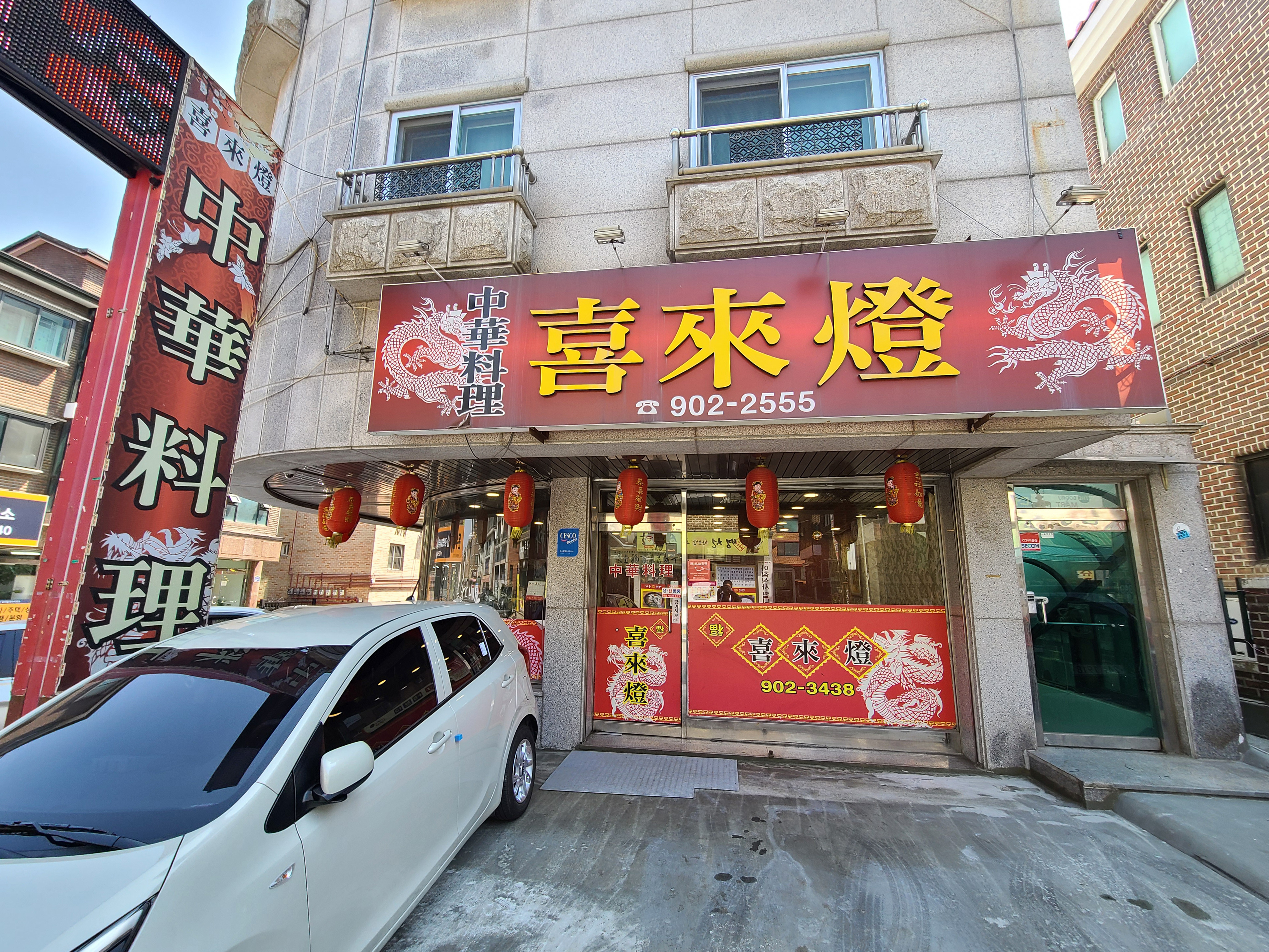 마두동 희래동의 모습은 위와 같습니다. 중국요리 전문점답게, 가게의 전체적인 톤은 빨간색을 많이 사용하고 있었고, 가게 이용 시 건물 주위로 주차가 가능했습니다. 주차를 마치고 가게에 들어갔습니다.