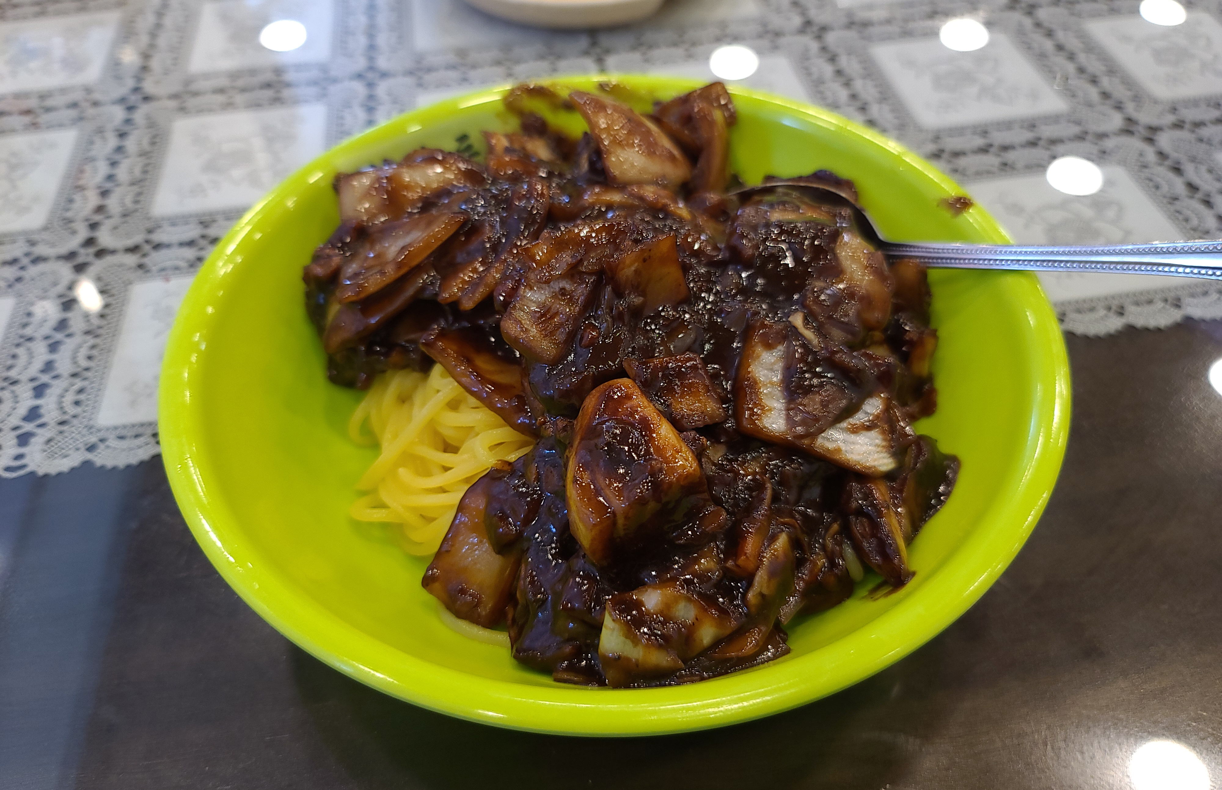 소스를 면 위에 붓고 뒤적여줬습니다. 오랜만에 짜장면을 먹으니 맛있더라고요. 고기도 적당히 들어가 있고, 채소도 많이 있었고요. 맛집 까지는 아니었지만, 일산의 국립암센터 인근의 중국집을 찾아보신다면, 여기 한 번 이용해볼 수 있을 것 같습니다.