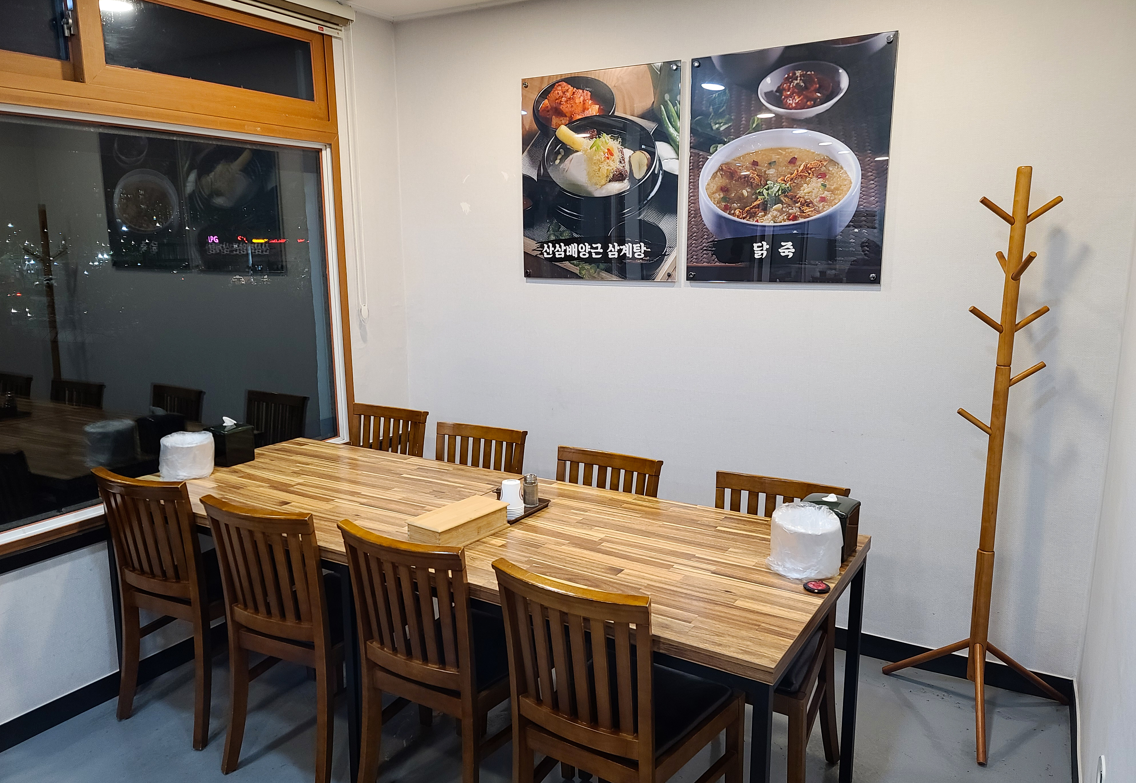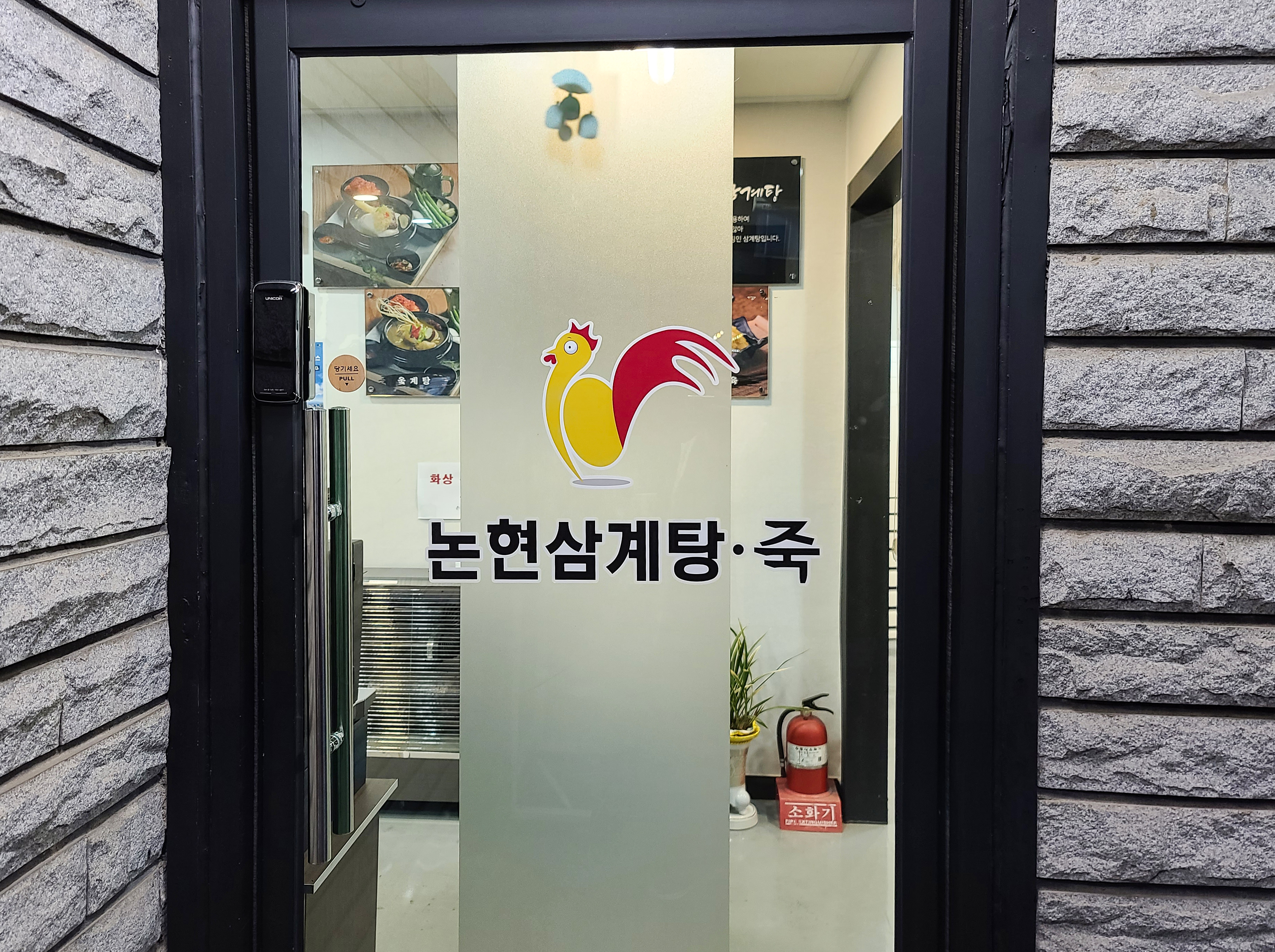 강남구 자곡동 논현삼계탕의 모습은 위와 같습니다. 주차는 발렛 서비스를 제공하고 있었으며, 가게는 건물 옆 계단을 따라 올라가면 되었습니다. 가게에 들어가면 커다란 통 유리가 있는 창가 자리들이 마련되어 있었고, 전부 식탁으로 된 장소였습니다.