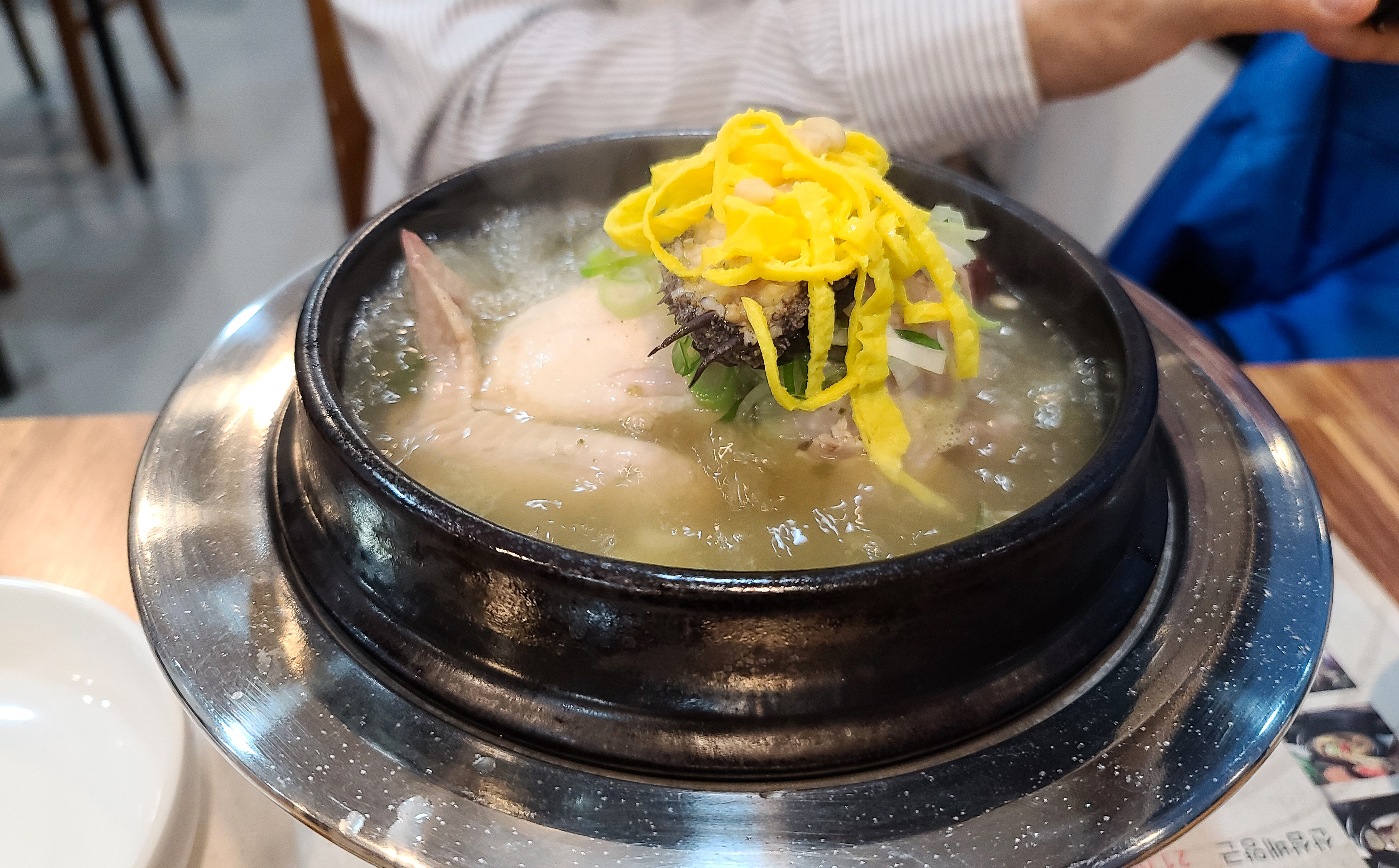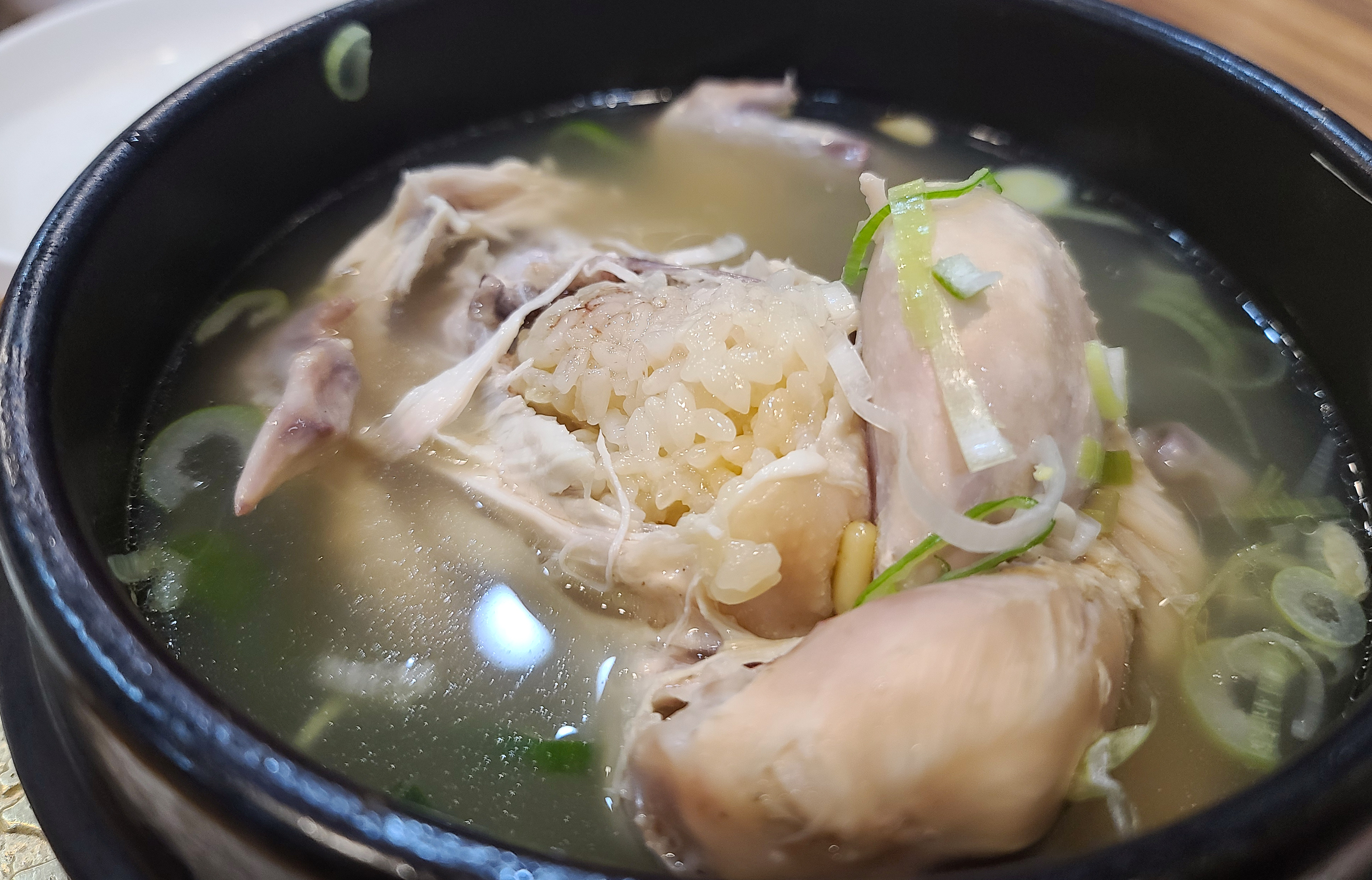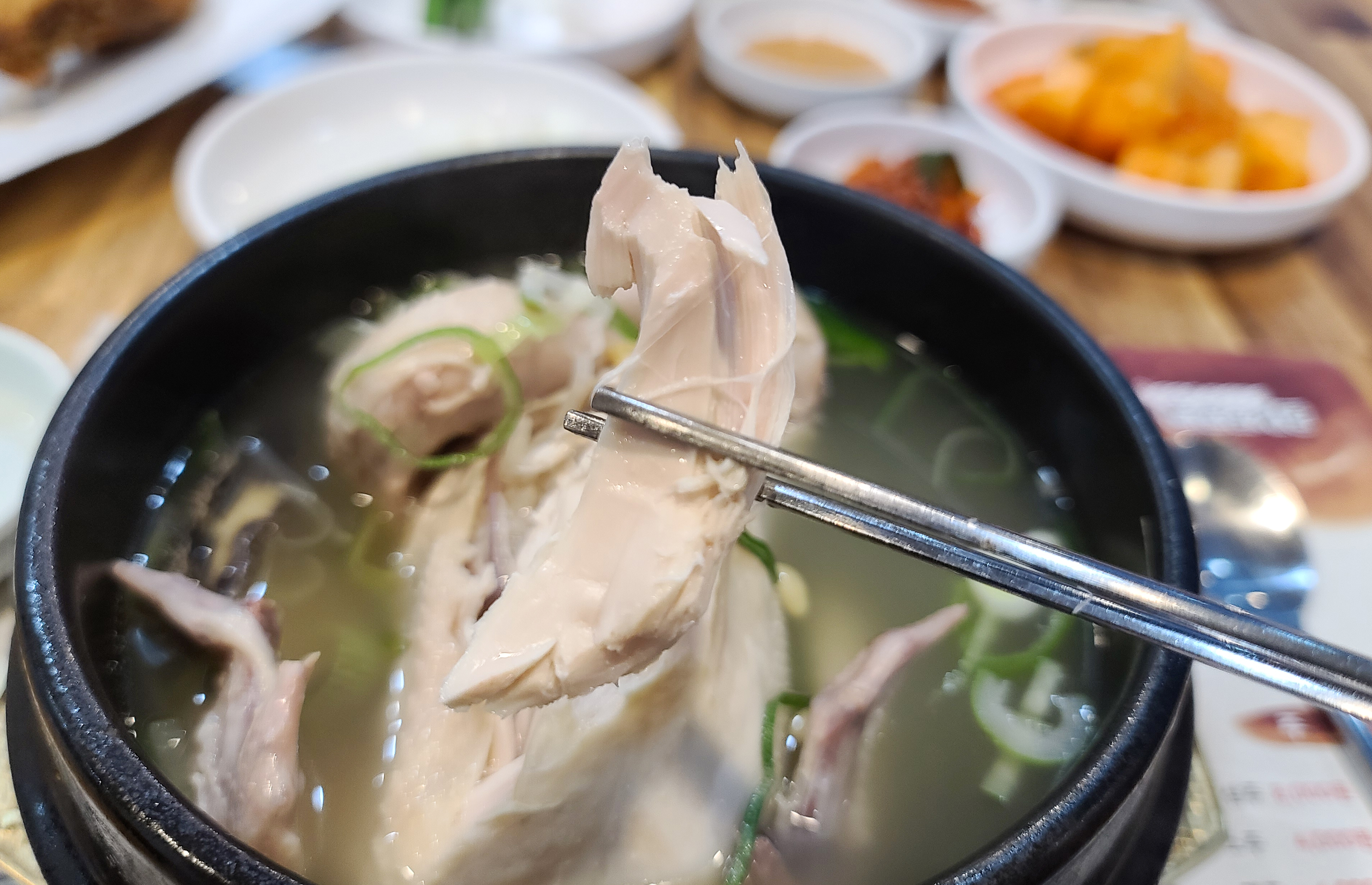 제가 먹은 삼계탕의 모습은 위와 같습니다. 사골을 섞지 않은 맑은 육수에 부드러운 식감의 닭고기가 들어있는 형태였죠. 닭고기 안에는 찹쌀과 밤, 마늘, 대추, 인삼 등이 들어있었습니다. 논현삼계탕의 국물이 담백하면서 깔끔한 게 제 입맛에 맞는 것 같더라고요.