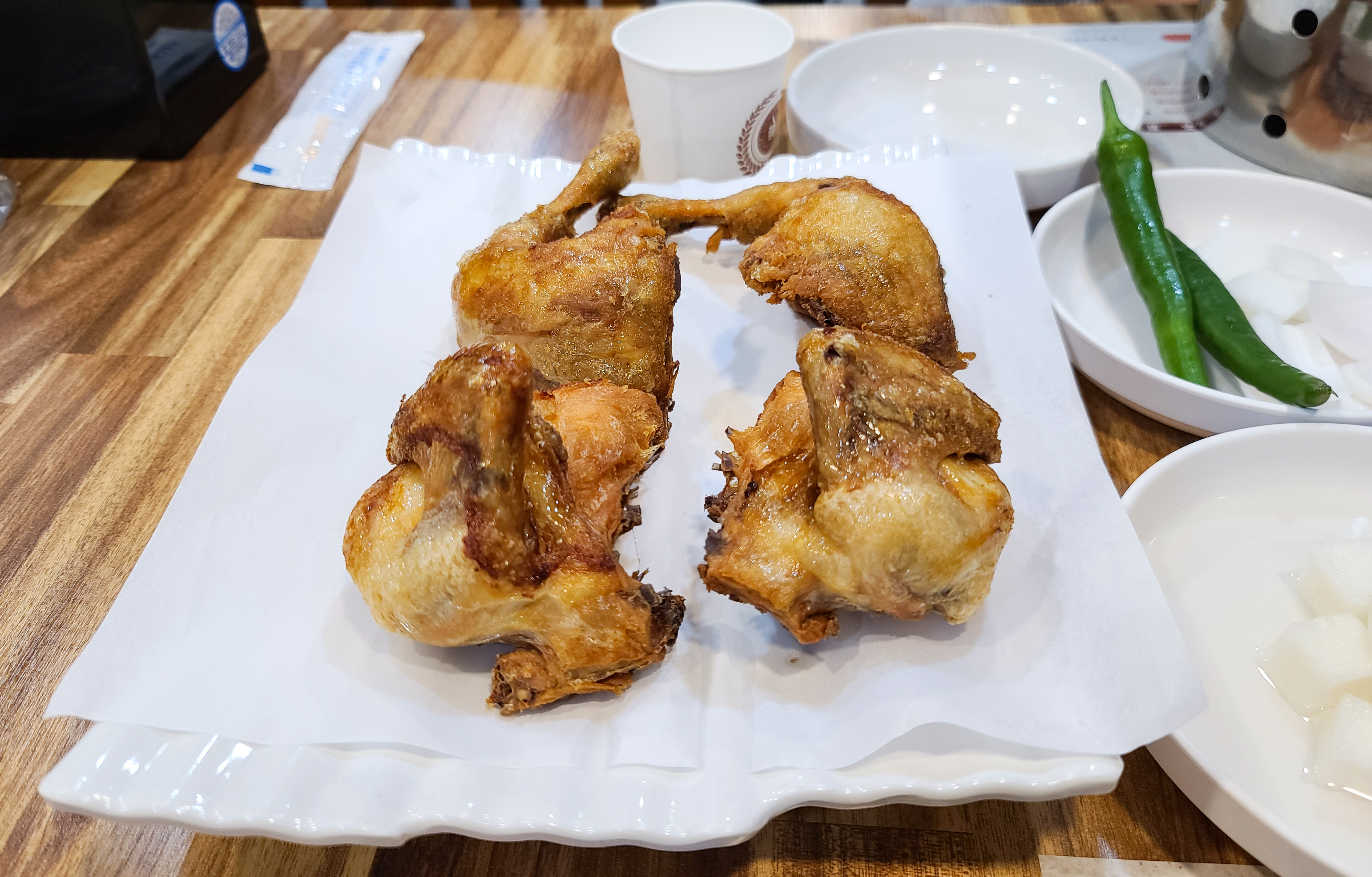 곧이어 주문한 전복 삼계탕, 삼계탕, 전기구이 통닭이 나왔습니다. 기존에 삼계탕과 전기구이 통닭은 먹어봤지만, 이번에 아버지와 함께 이용하였기에 전복 삼계탕으로 주문하였죠.
