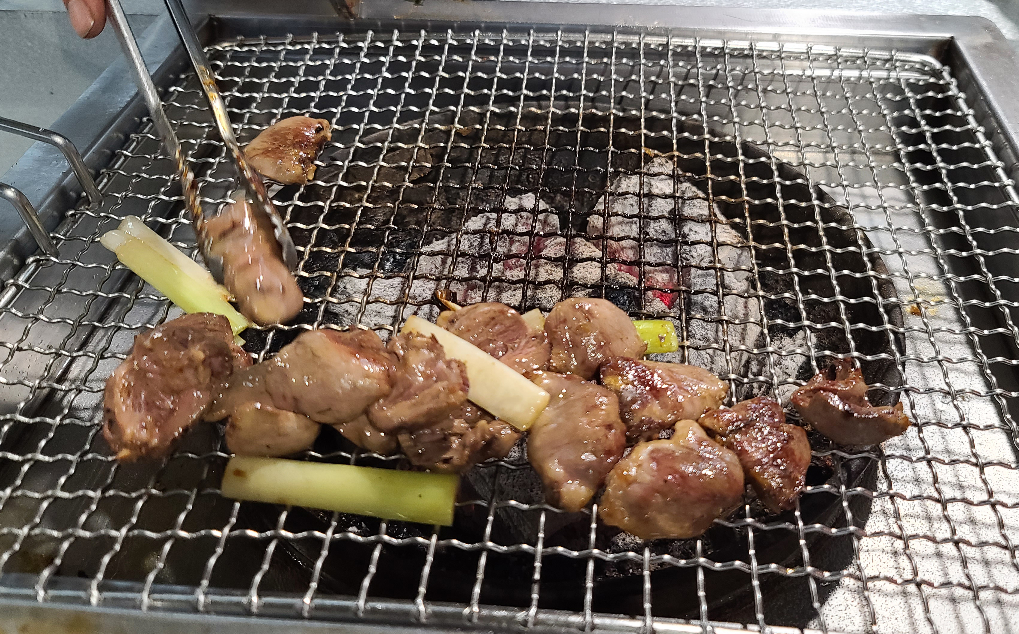 예전에 학교 앞에서 판매하던 닭꼬치 차에서 판매하던 염통 꼬치를 생각나게 하는 파와 염통의 조화는 잘 어울렸고요. 생각보다 부드러운 식감이 매력적이더라고요. 마늘소금 소스와 곁들여도 좋고, 구운 파와 함께 먹어도 좋았습니다.