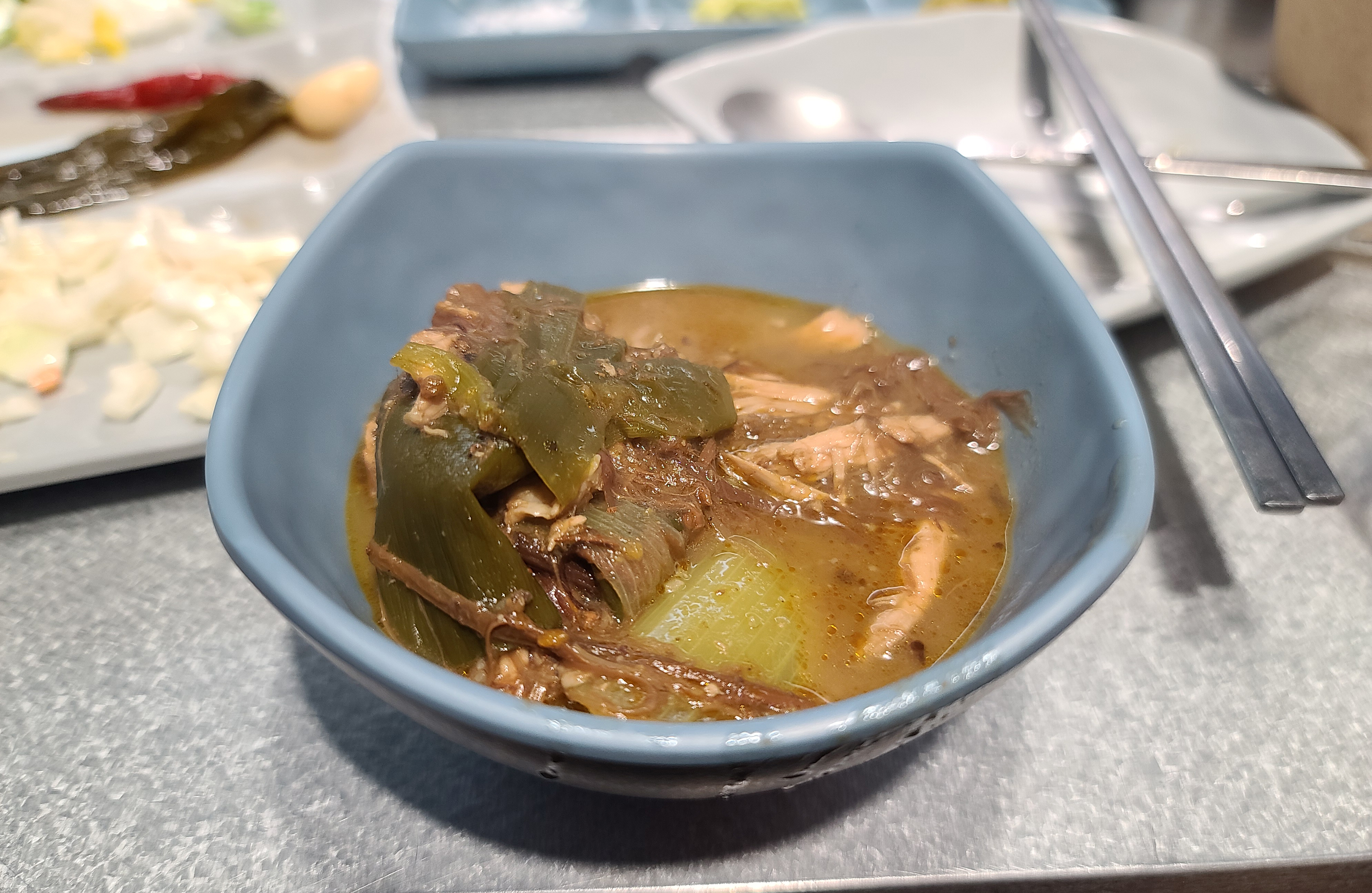 파개장은 약간 보신탕(?)의 느낌이 나는 맛이었는데, 맛은 괜찮았습니다. 비빔국수와 파개장 중에 선택하라면, 비빔국수가 고기와는 더 잘 어울렸고요. 다음으로는 양념 숯불 닭구이를 먹었습니다.