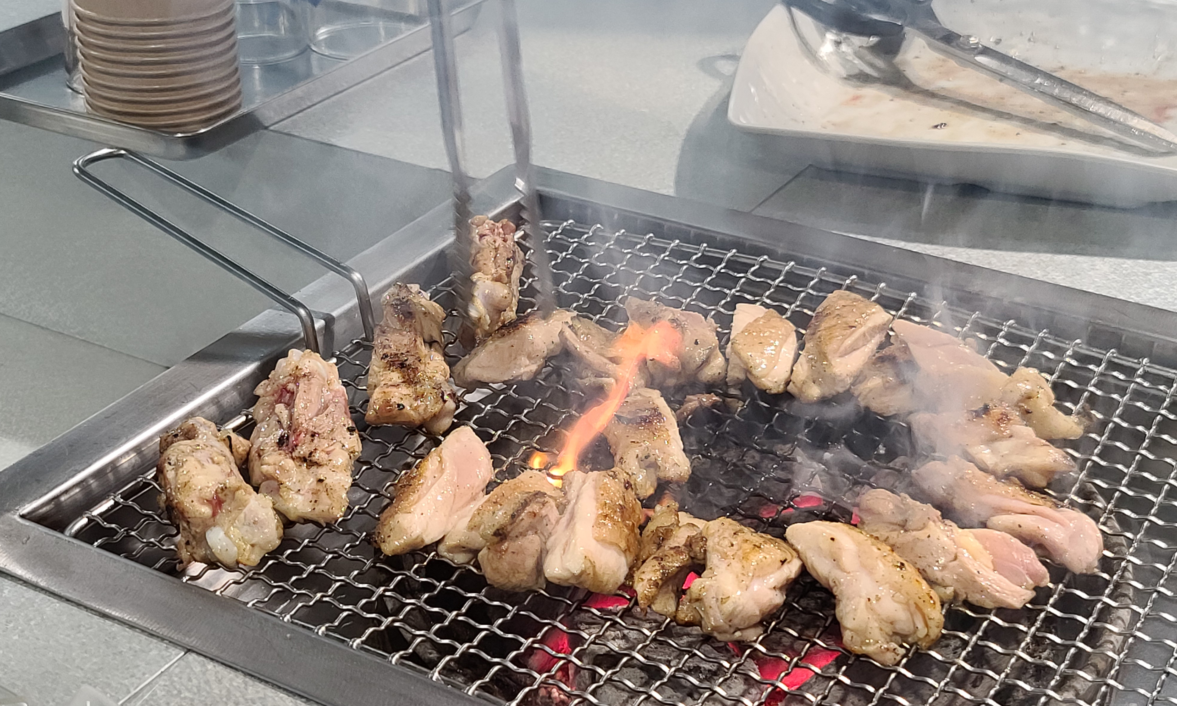 신당동 은화계의 소금 숯불 닭구이는 가게 직원이 직접 자리에서 닭의 뼈 부위와 살코기를 분리하였고, 불판에 직접 닭갈비를 굽기 시작했습니다. 소금 숯불 닭구이는 아무래도 양념 없이 소금으로만 간을 하여 담백한 맛이 좋았습니다.