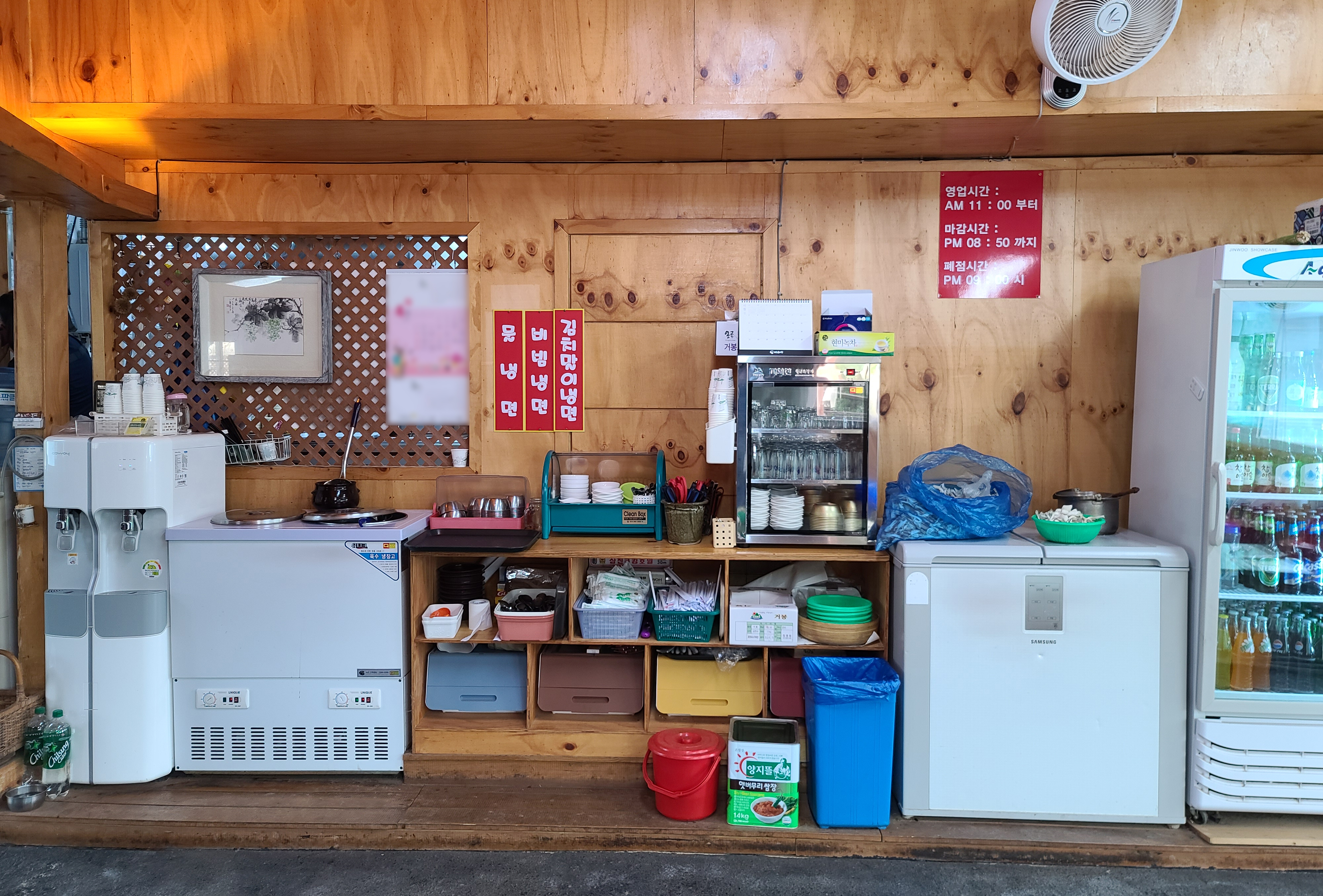 가게 내부에 들어가면 유황생오리구이, 유황생오리양념, 물냉면, 비빔냉면, 김치말이냉면, 날치알볶음밥, 김치볶음밥 등 이 있었으며, 가격대는 30,000원~ 80,000원 사이였습니다. 저희는 유황 생오리구이를 주문했습니다.