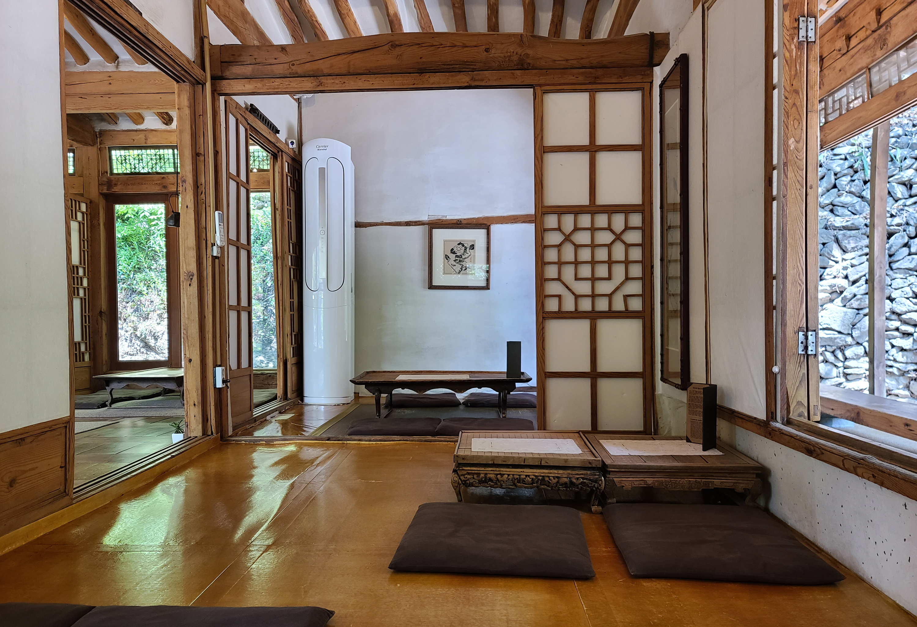 새소리 물소리의 건물은 1923년에 3년여의 공을 들여 완성한 전통한옥 형태의 건물이었습니다. 건물은 크게 본채와 별채로 이루어져 있는데, 주로 본채를 이용하며, 20인 정도 수용 가능한 별채는 예약제로 운영하며 프로젝터 및 스피커가 설치되어 있어 세미나, 워크숍 등이 가능하다고 합니다.