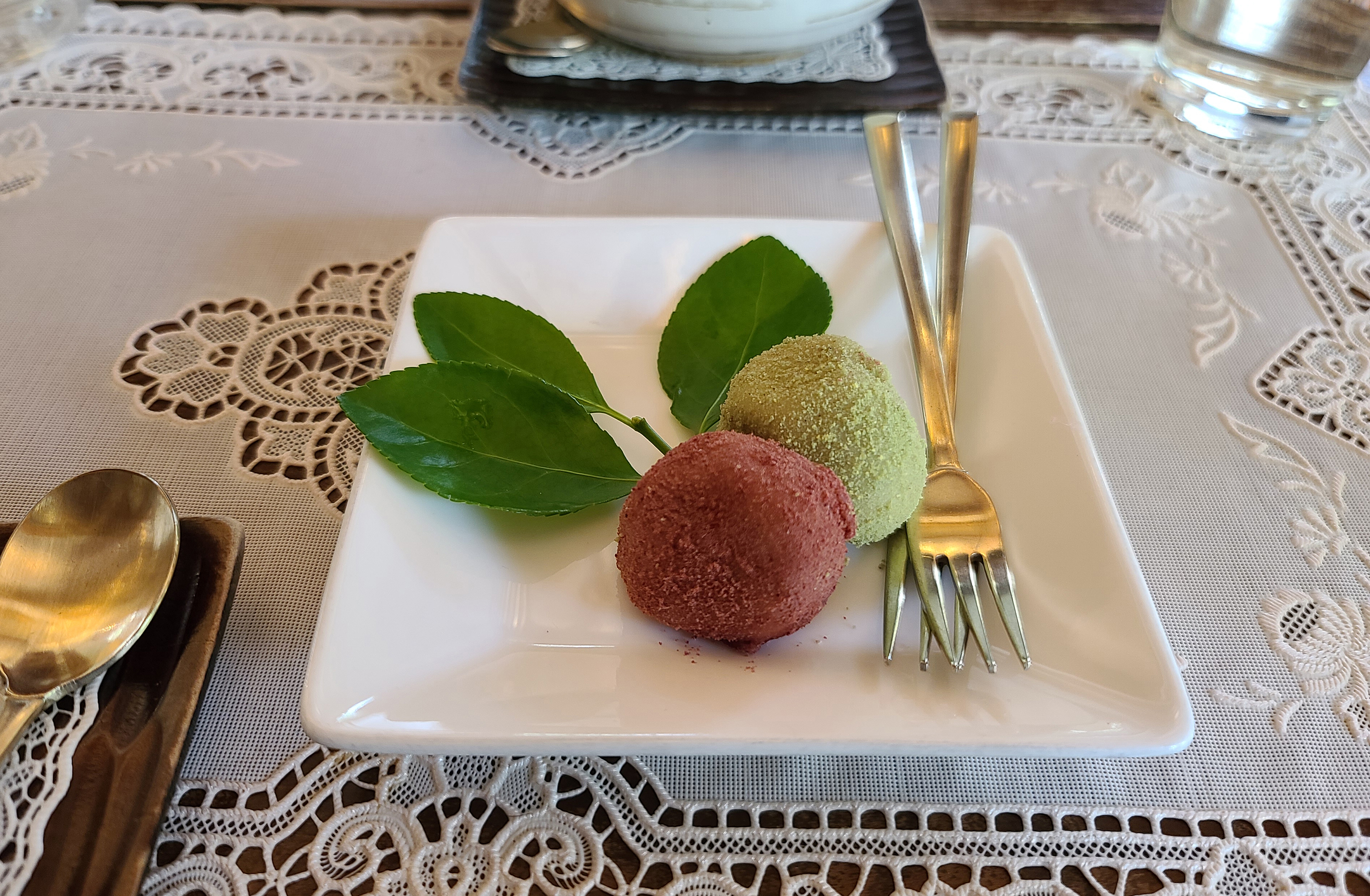 성남 <새소리 물소리>에서 메뉴를 주문하면 위와 같이 경단과 함께 내어주십니다. 단팥죽도 맛있고, 커피도 괜찮았고, 경단도 쫄깃쫄깃 맛이 좋았습니다.