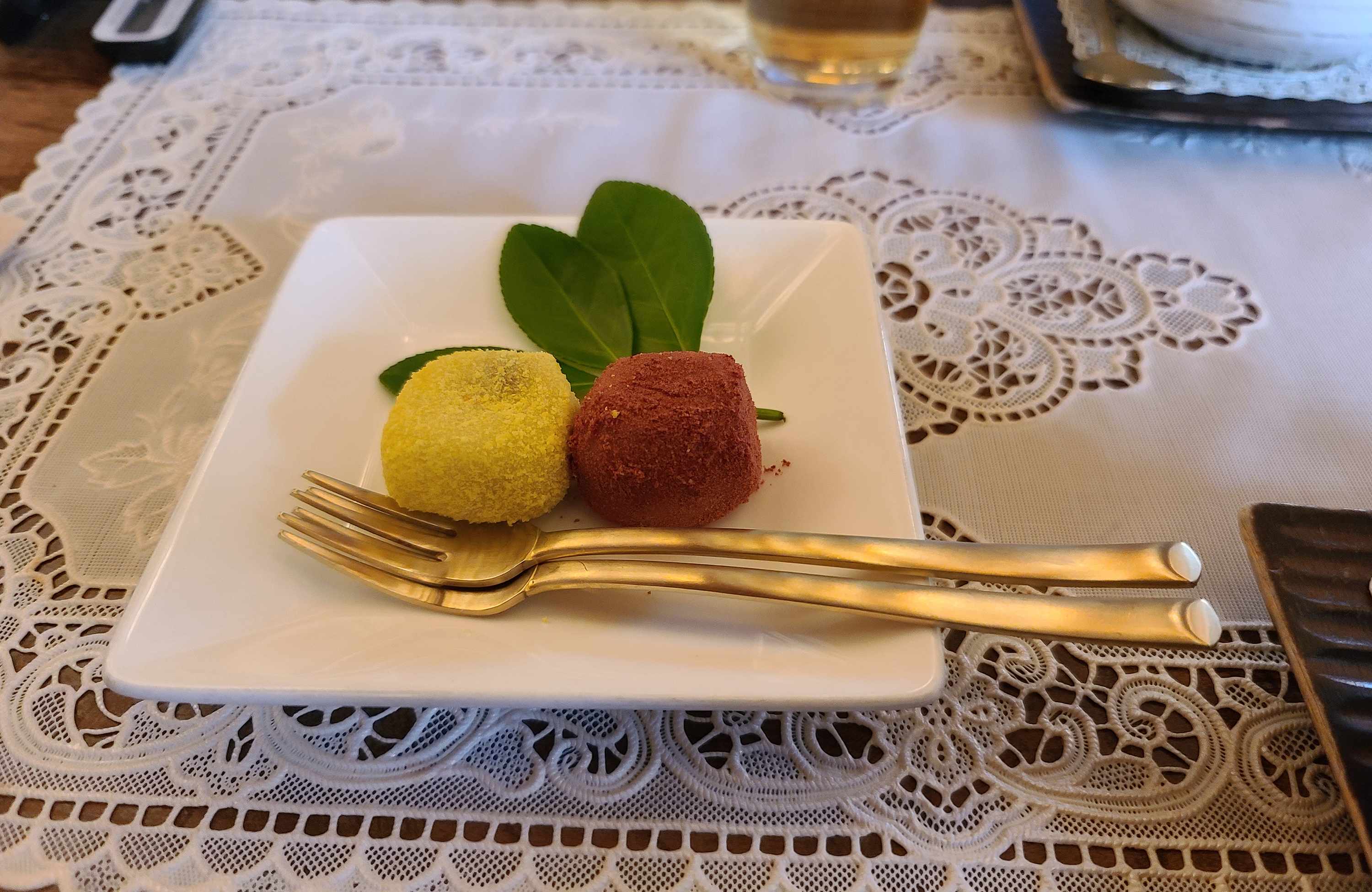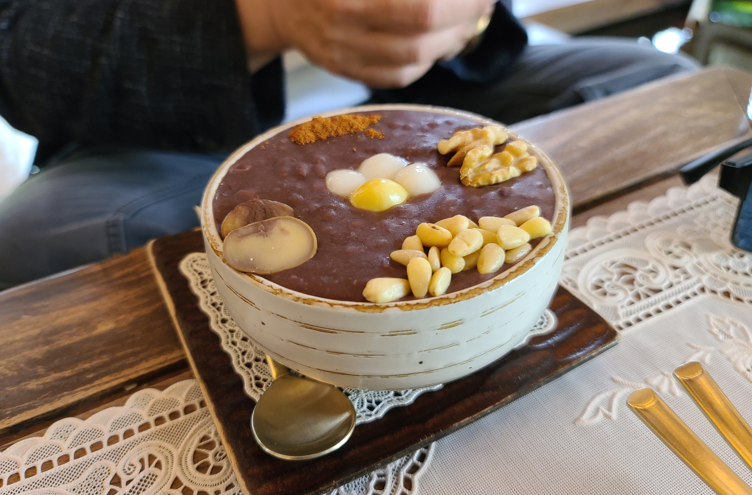 성남 <새소리 물소리>에서 메뉴를 주문하면 위와 같이 경단과 함께 내어주십니다. 단팥죽도 맛있고, 커피도 괜찮았고, 경단도 쫄깃쫄깃 맛이 좋았습니다.
