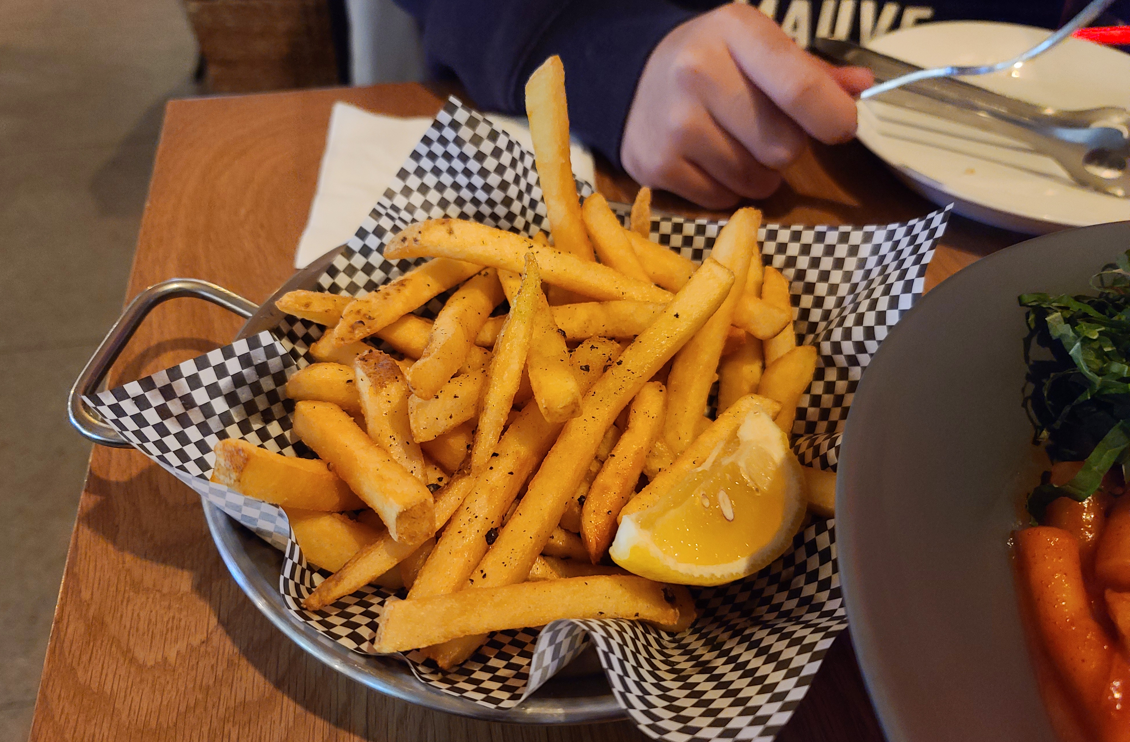 트러플 후렌치 프라이는 감자튀김에 트러플 향과 맛이 입혀져 더 풍미가 좋은 감자튀김이었지요. 원래 같이 간 동생이 크리스피 치킨 스킨을 주문하자고 했는데, 제가 트러플 맛이 먹고 싶어 이 메뉴로 골랐죠. 맛은 괜찮았는데, 크리스피 치킨 스킨도 괜찮았을 것 같다는 생각이 들더라고요.