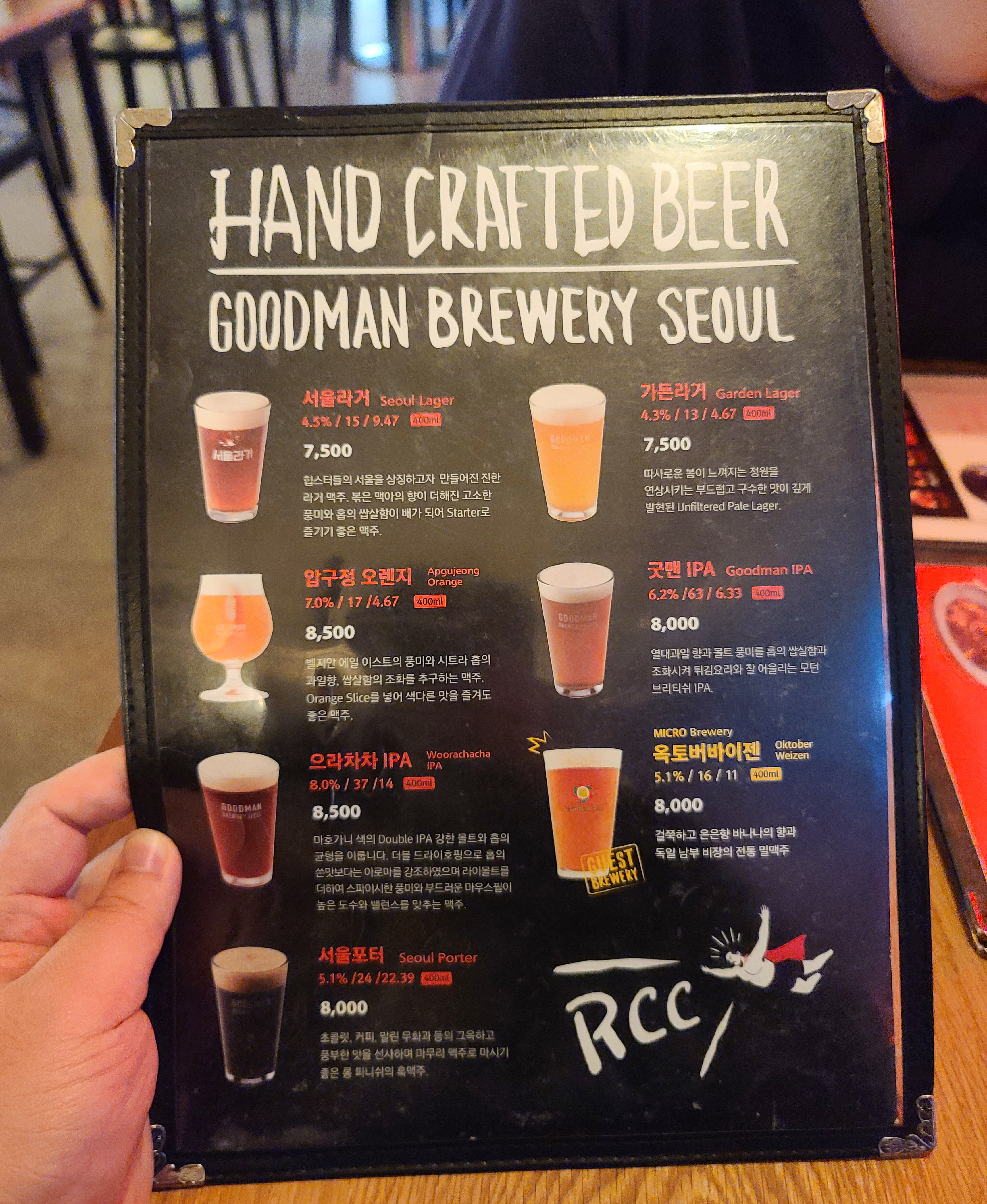 강남구 신사동 로켓크리스피치킨 매장 내부의 모습입니다. 테이블 별로 거리를 널찍하게 배치해 불편하지 않았습니다. 밝은 조명의 치킨집보다는 술집(PUB)에 가까운 가게였습니다. 우선 메뉴를 함께 살펴보실까요?
