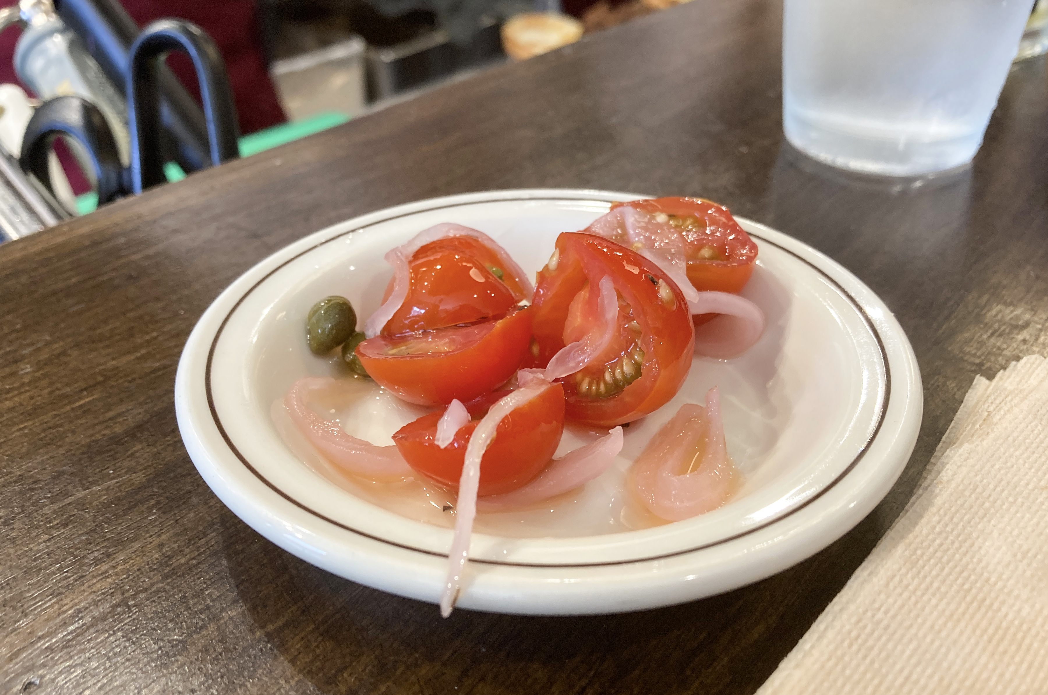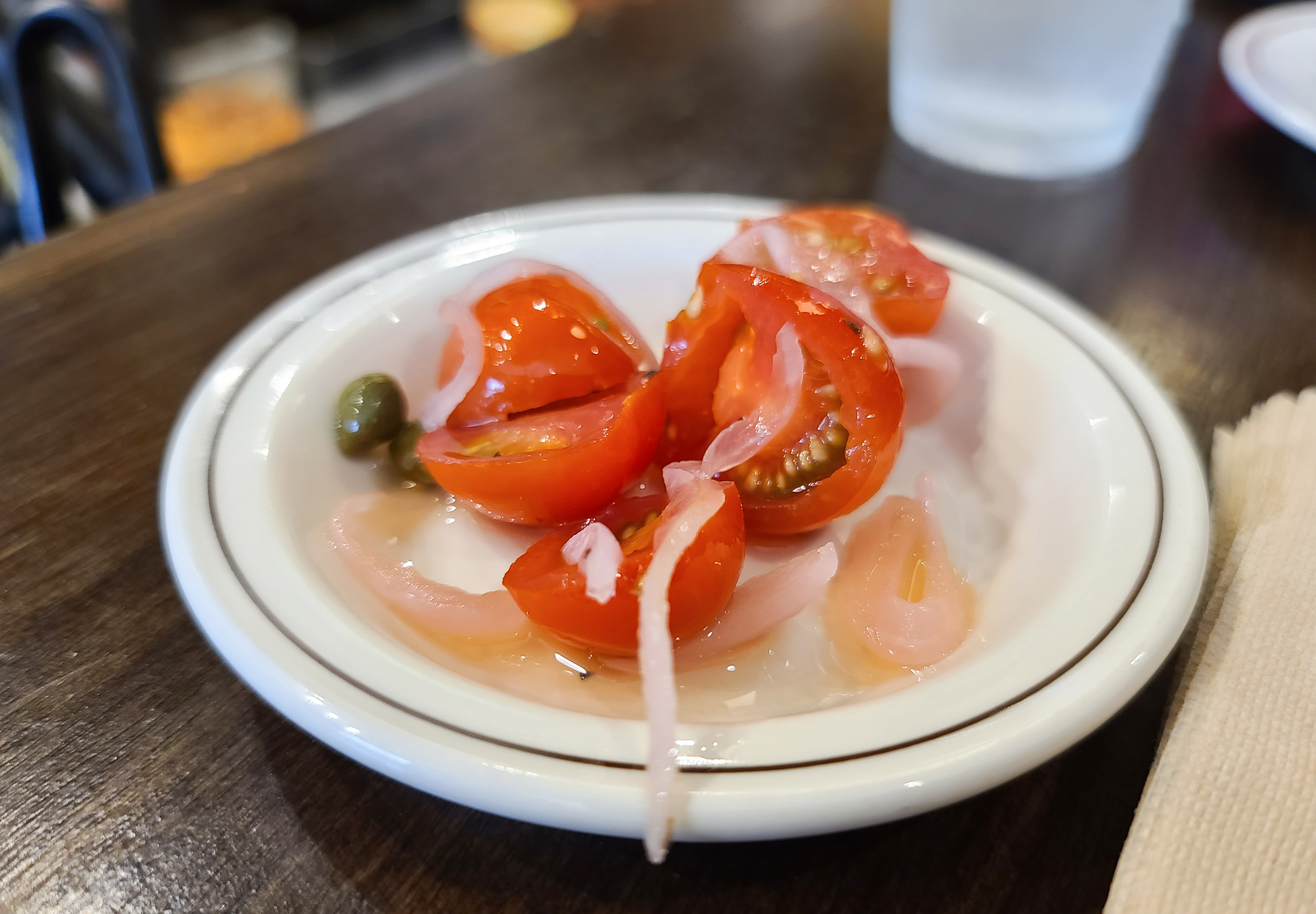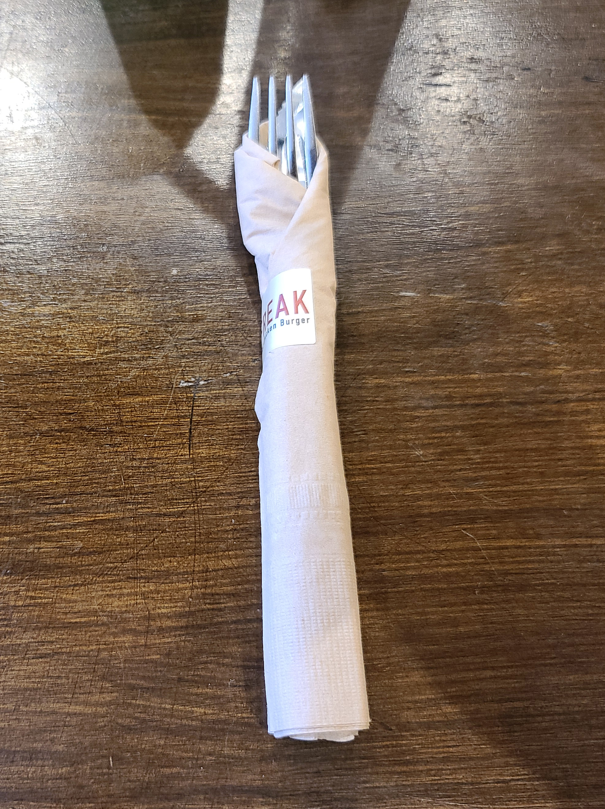먼저 음료와 버거를 먹을 때 사용할 수 있는 포크, 나이프가 제공되었습니다. 그리고 방울토마토를 이용해 만든 피클이 제공되었는데, 피클이 새콤한 게 입맛 당기게 해 주더라고요.