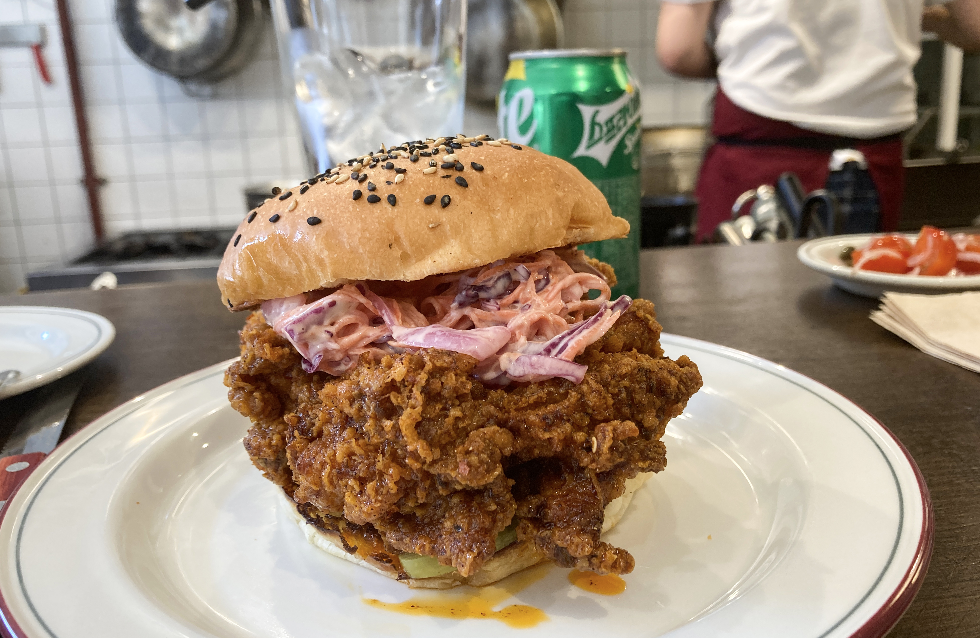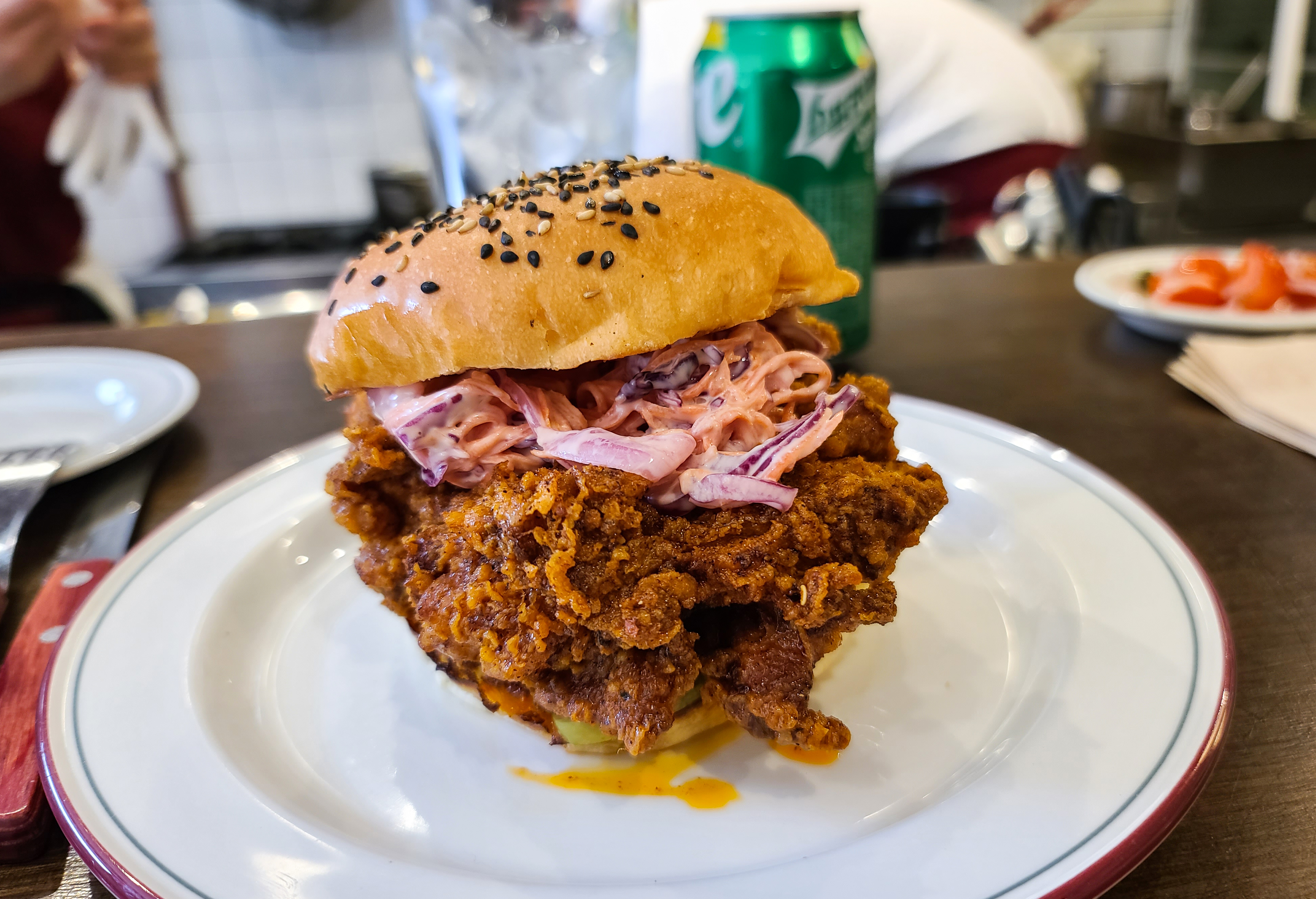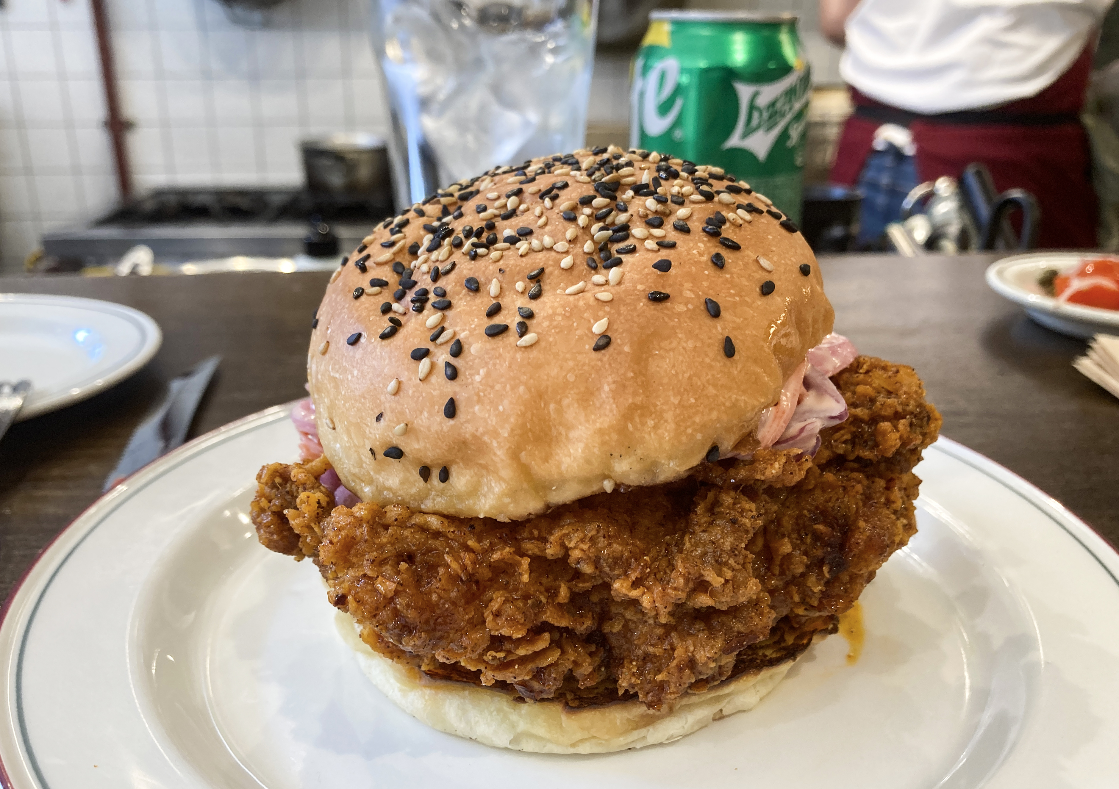 완성된 르프리크 시그니쳐 버거가 나왔습니다. 시그니쳐 버거에는 내쉬빌 핫치킨, 딜 피클, 코울슬로, 밀크 번으로 만들어지는데, 확실히 시그니쳐라는 이름답게 치킨의 크기가 상당했습니다. 저는 사이다와 함께 먹었는데, 꽤 만족스럽게 먹을 수 있었습니다.