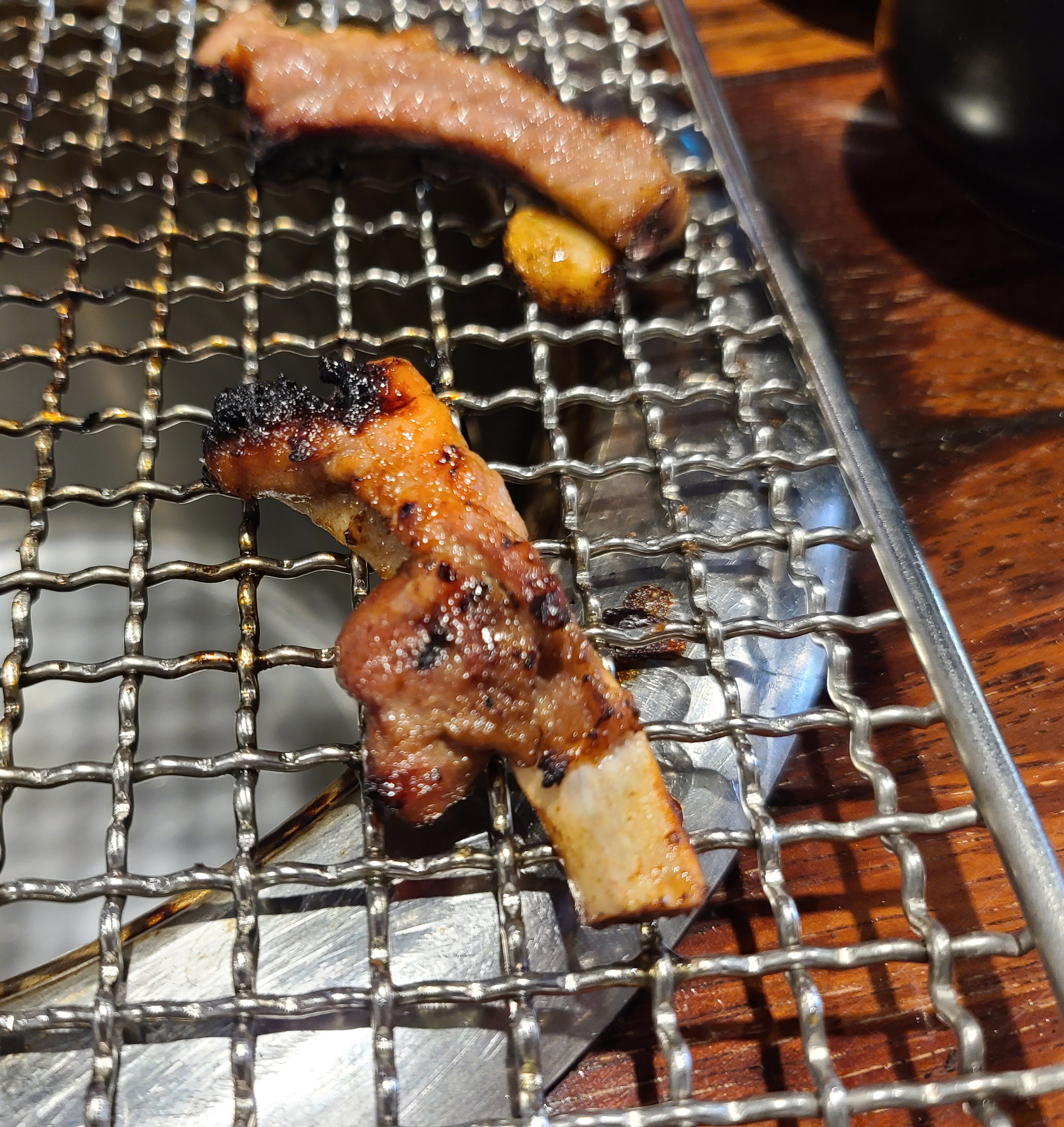 보통 고깃집 냉면은 시큼한 맛의 육수를 베이스로 하지만, 봉피양 평양냉면은 다소 심심한 맛이지만, 육수의 맛은 정말 맛있었습니다. 냉면을 어느 정도 먹으니, 갈빗살이 거의 다 익었더라고요. 그래서 갈빗대를 뜯으며 식사를 마무리했습니다.