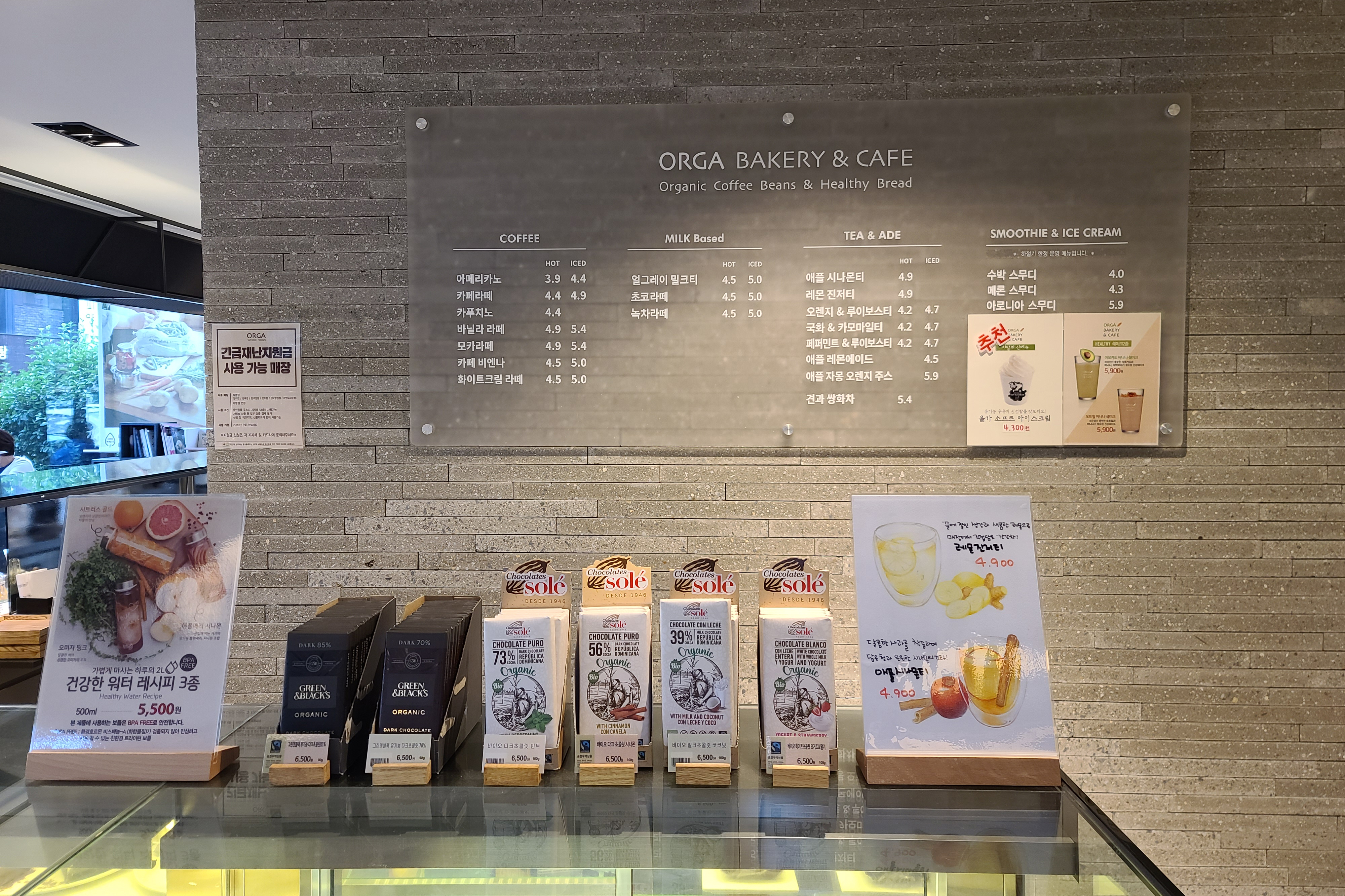 미쉐린 가이드에 돼지갈비와 평양냉면 맛집으로 소개된 '봉피양'에 다녀온 뒤, 커피를 마시러 유기농 식품점 <올가(ORGA)> 에 다녀왔습니다. '올가'는 다양한 유기농 먹거리와 베이커리, 식물 등을 판매하는 가게인데요.