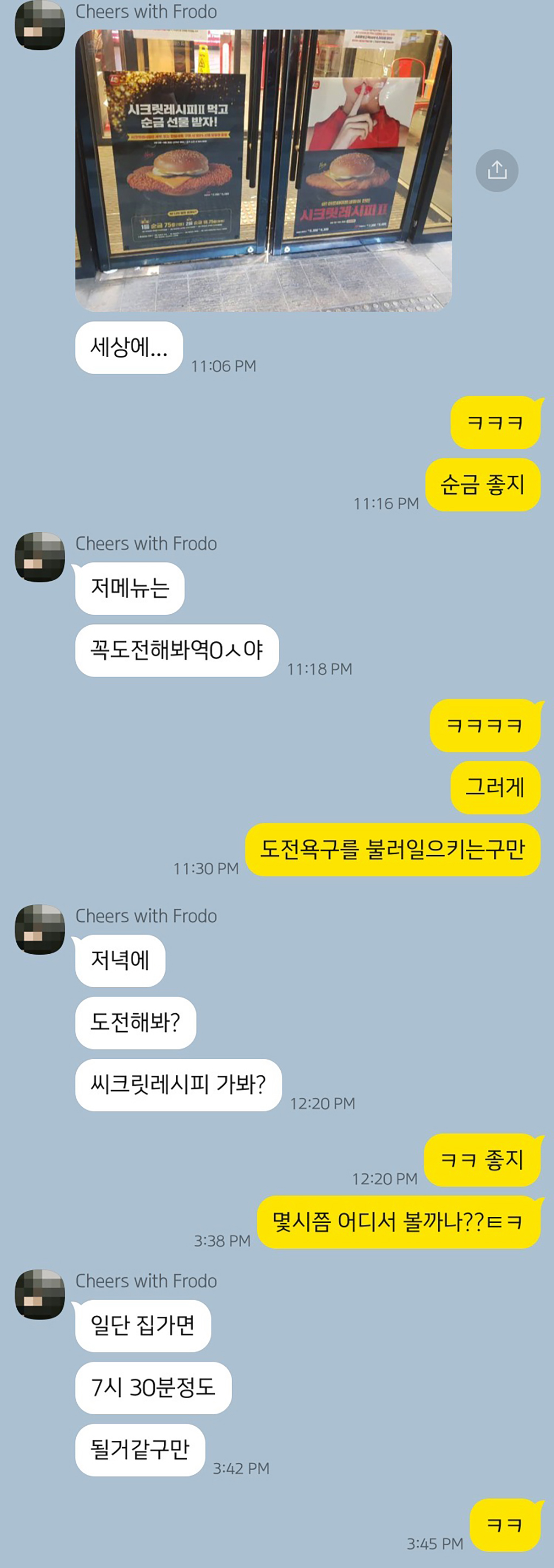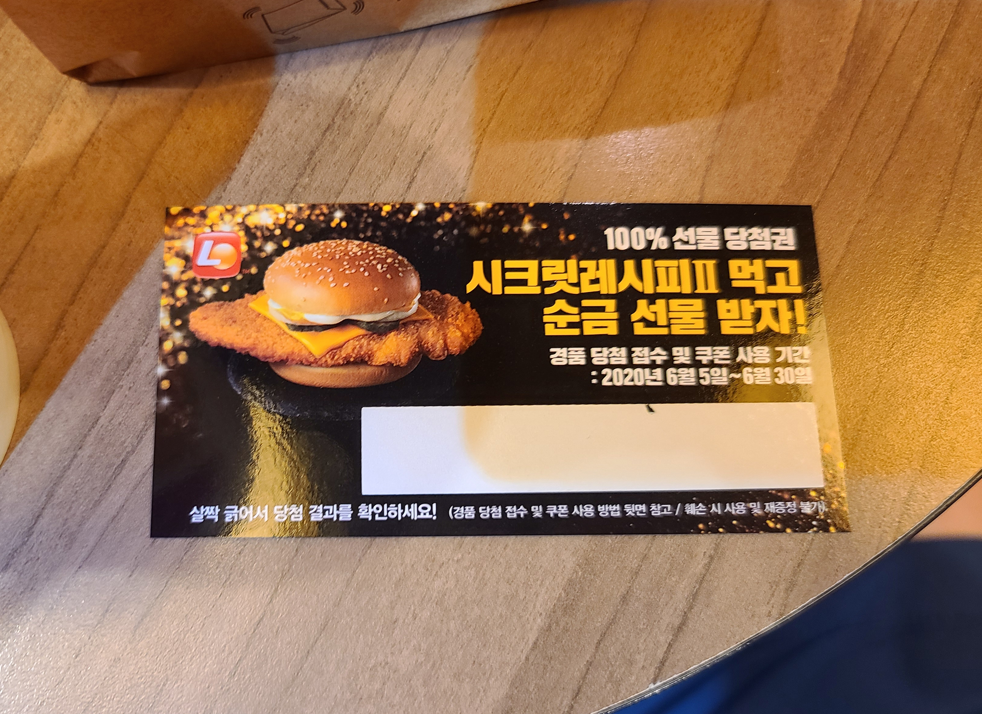 그렇게 친구와 저는 롯데리아 시크릿 레시피에서 상품으로 내 건 '순금'이라는 상품에 바로 다음 날 친구의 퇴근 시간에 맞춰서 롯데리아 매장으로 달려갔죠.