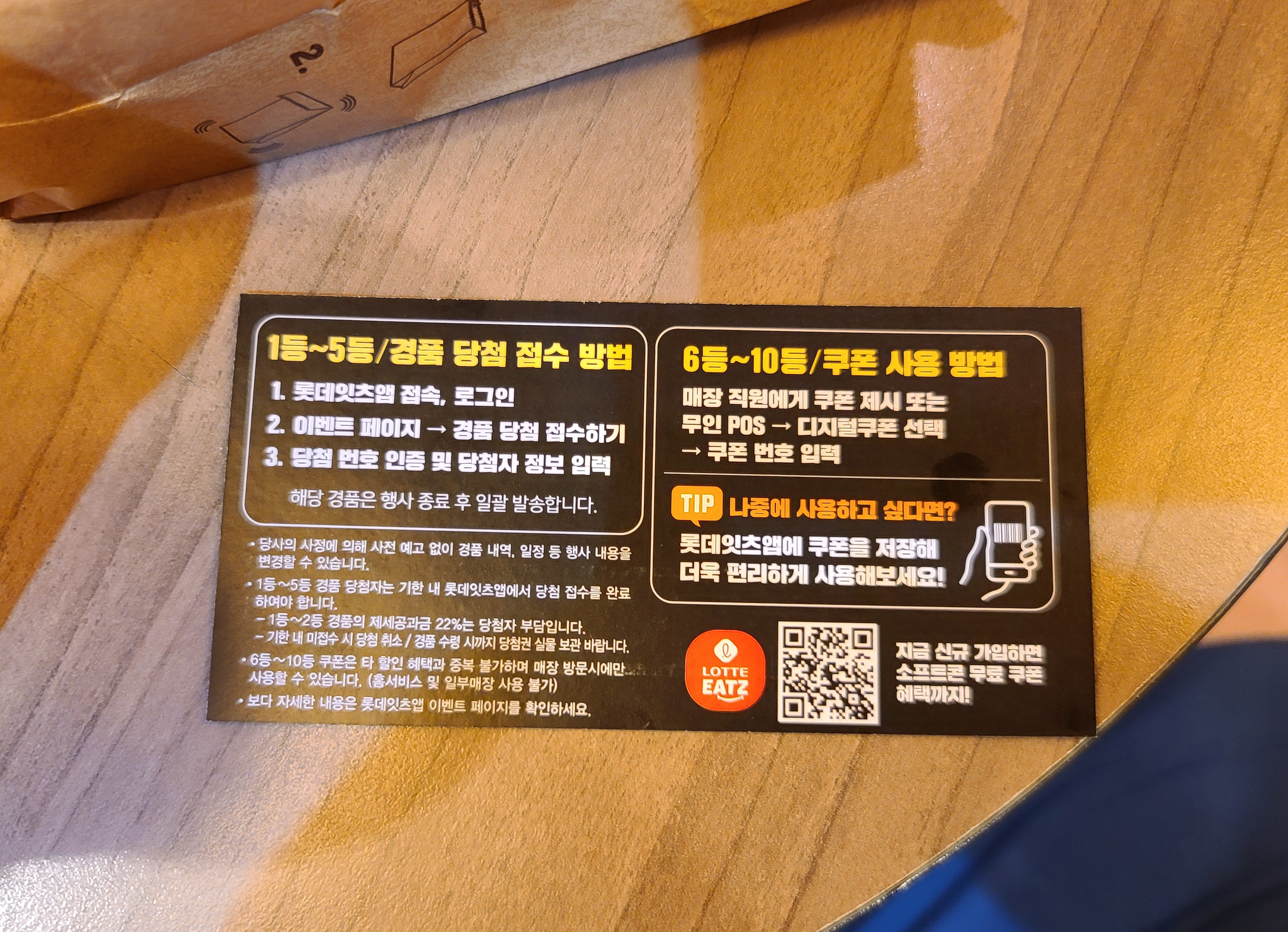 사실 롯데리아에 순금 당첨의 기회를 노리고 방문하였는데, 결과는 10등, 9등...(ㅠㅠ) 친구와 저는 미련 없이 응모 용지를 바로 폐기처분하였죠. 할인해줄 테니 돈 주고 사 먹으라는데 더 사 먹을 기분이 아니었거든요..(ㅋㅋ) 그래도 덕분에 요즘 유행하는 신상 버거도 맛보고 친구와 즐거운 시간을 보냈죠.