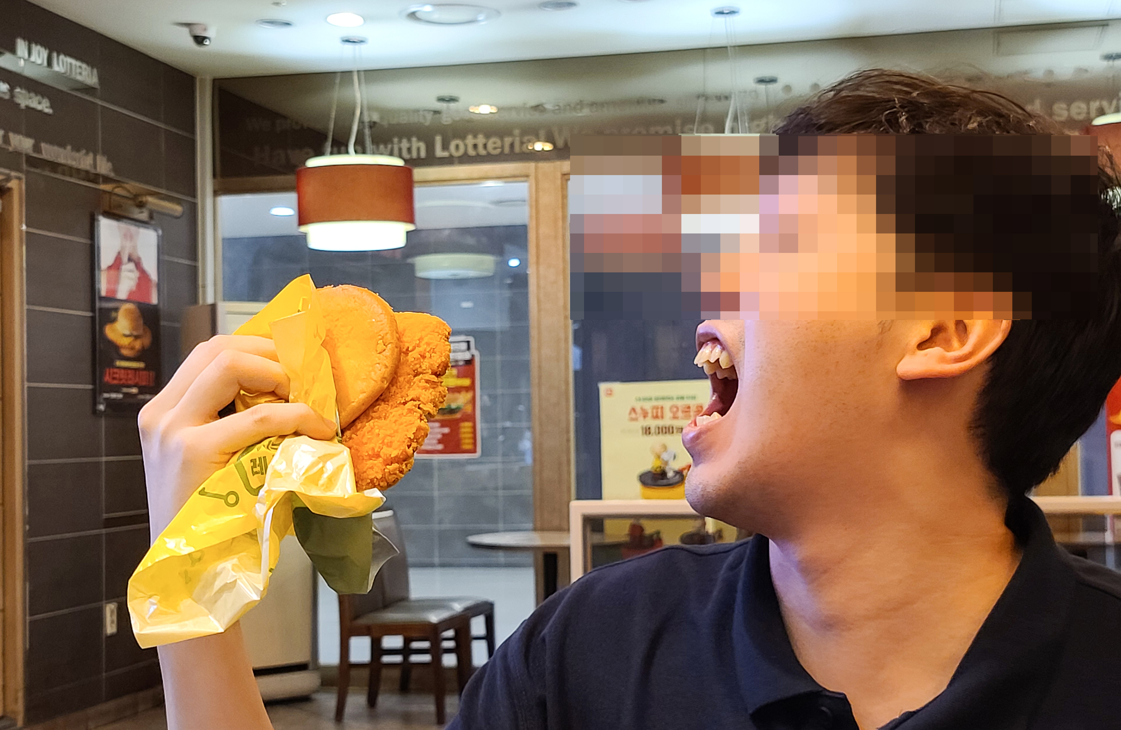 롯데리아 핫클라쓰 버거를 들고있는 친구.