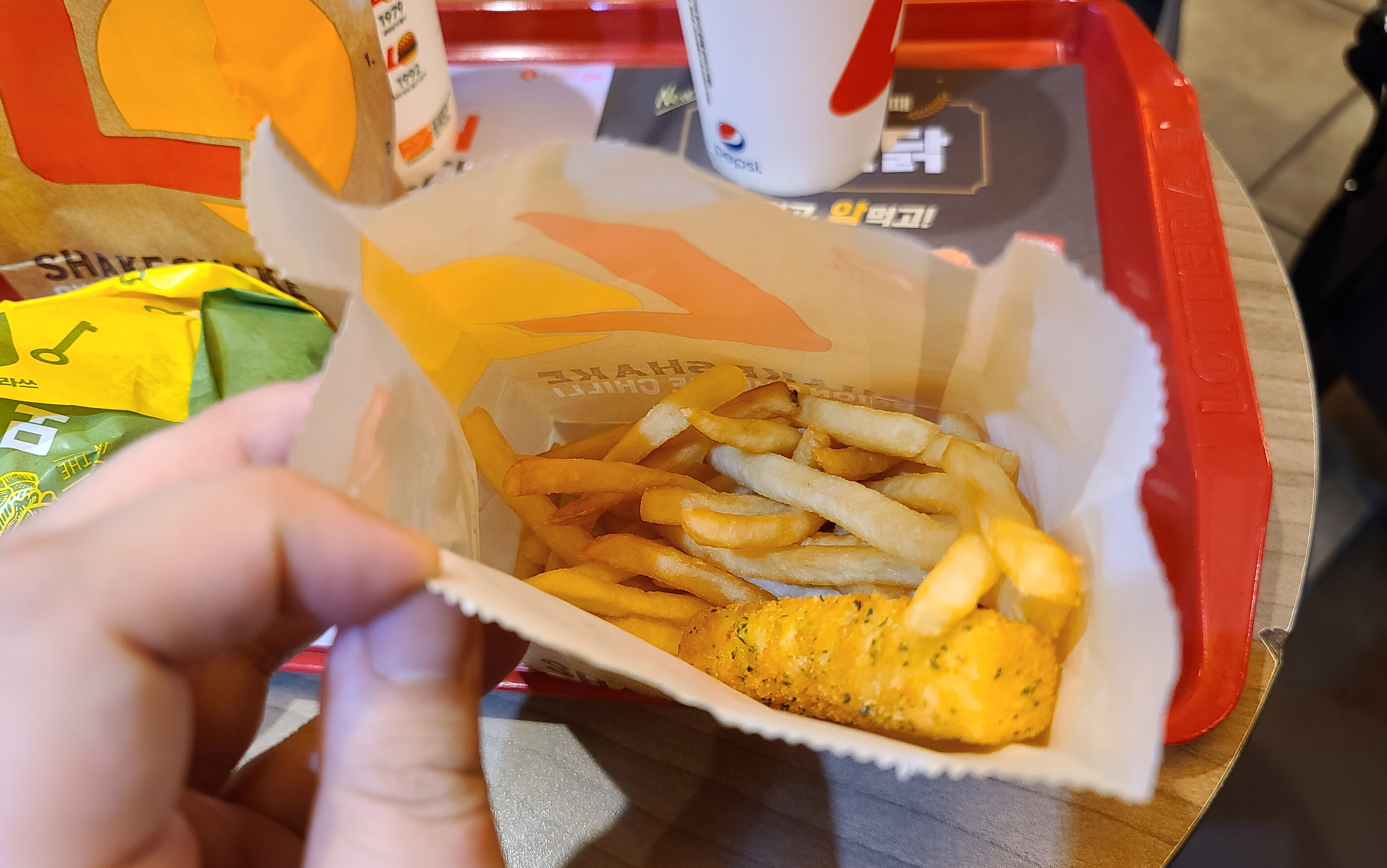 저번에 먹었던 티렉스 버거도 가성비가 괜찮았는데, 핫 클라쓰 버거도 꽤 괜찮았습니다. 100원 추가로 양념감자와 치즈스틱을 받는 만렙 세트로 먹어야 가성비가 괜찮고, 그냥 세트로 먹으면 약간 비싼 느낌이 있습니다.
