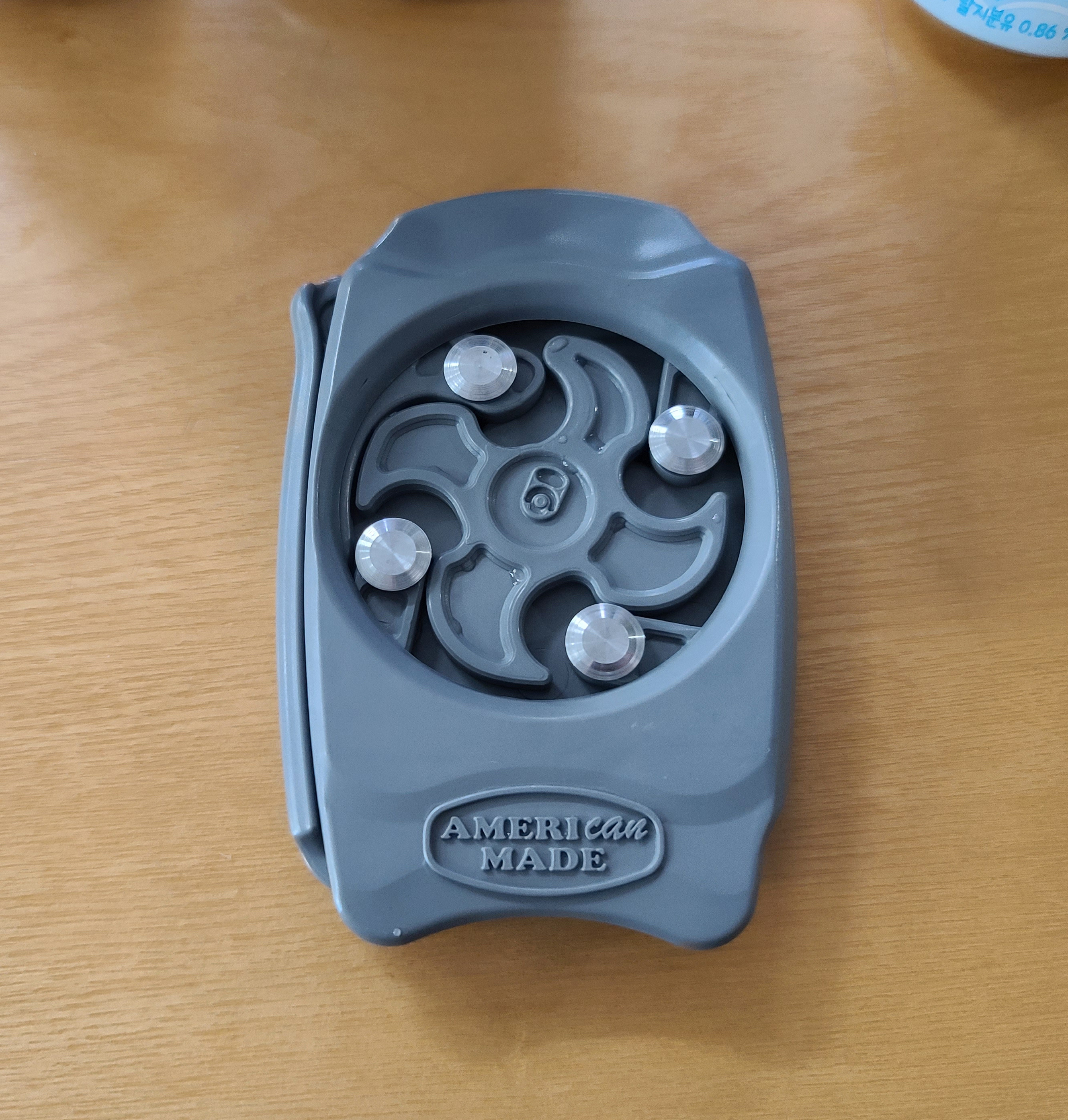 Draft Top 의 제품은 위와 같이 생겼습니다. 크기는 요즘 스마트폰 정도의 사이즈이며, 손잡이와 캔의 뚜껑을 제거해 줄 동그란 칼날 4개가 있습니다.