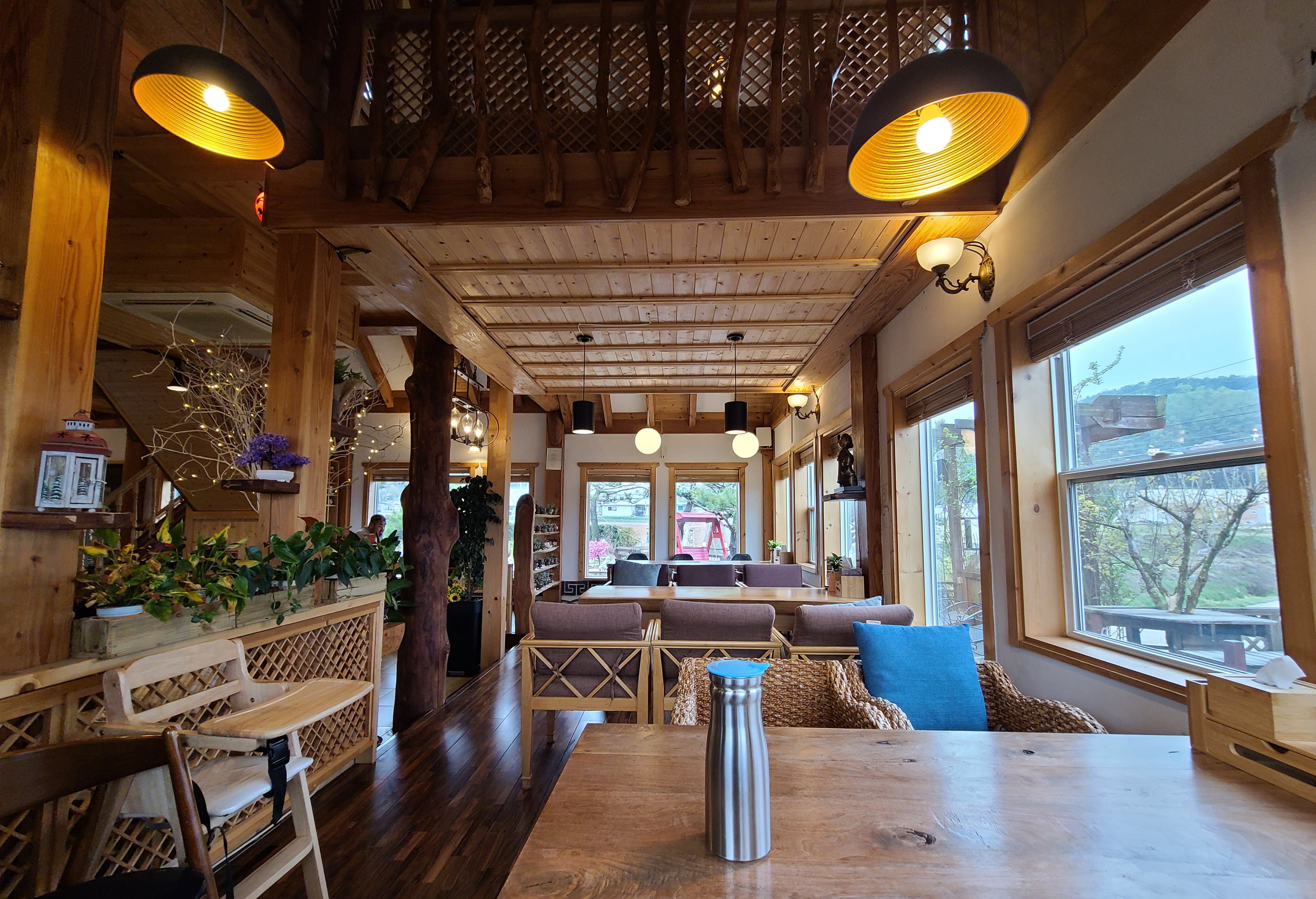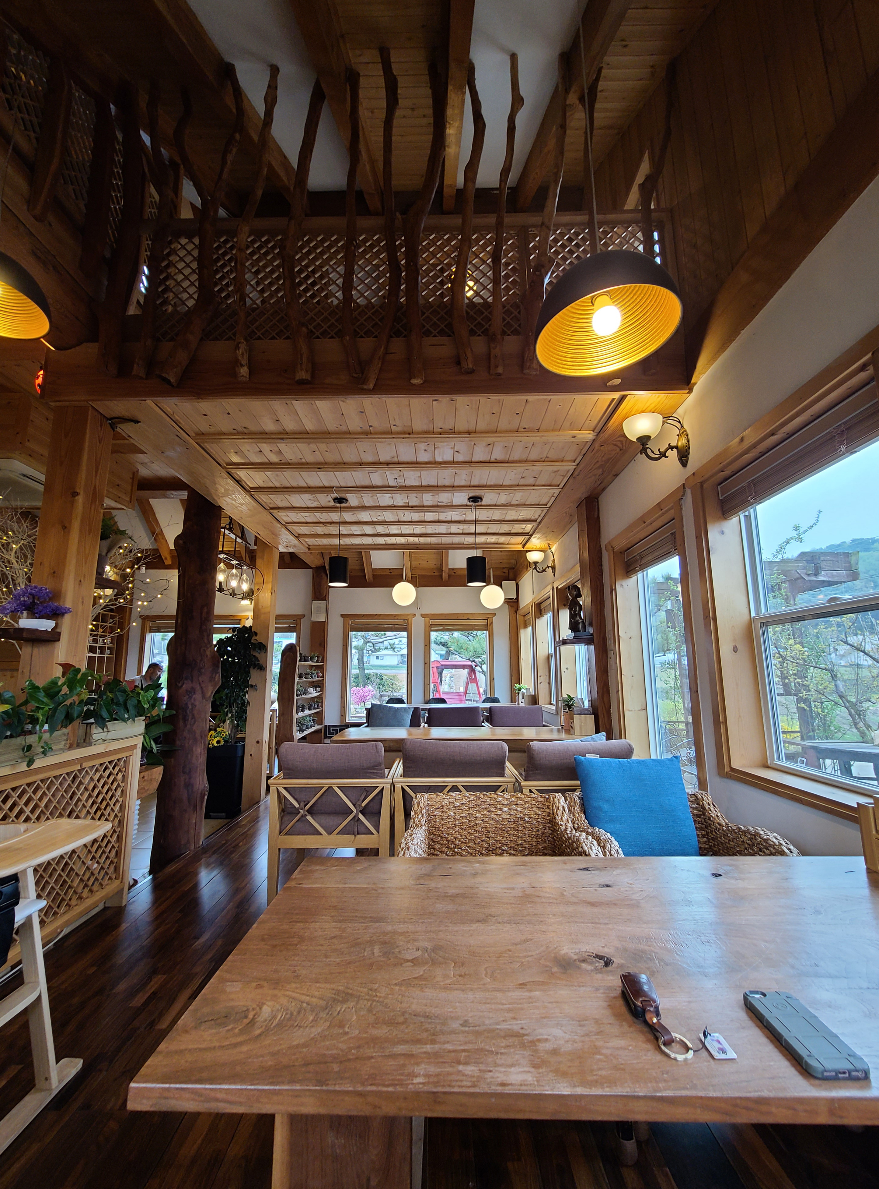 제가 평소에 마니온을 저녁에만 다니다가, 처음으로 낮에 방문했는데 곳곳에 식물들도 잘 가꿔져 있고, 가게에서 보이는 풍경도 이쁘고 좋더라고요. 물론 실내에도 나무로 마감이 되어있어 따뜻하면서도 멋스러운 분위기를 연출했죠.