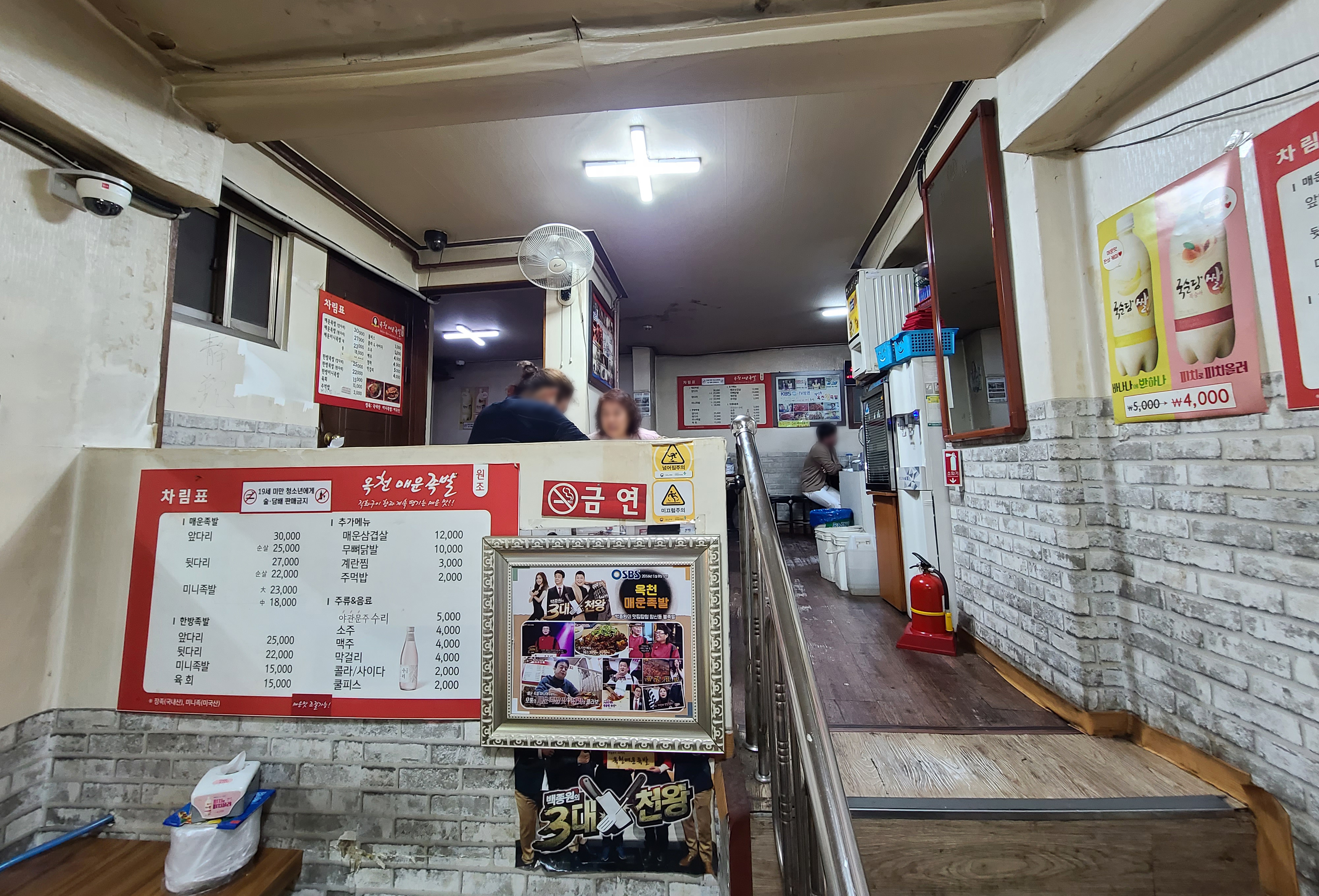창신동 옥천 매운족발 가게는 위와 같이 생겼으며, 오후 11시가 넘은 시간인데도 손님이 많았습니다. 가게 앞에서는 매운 족발의 불맛을 위해 그릴에 직화를 하는 모습을 볼 수 있었고, 곳곳에 TV 방영의 흔적이 남아있었습니다.