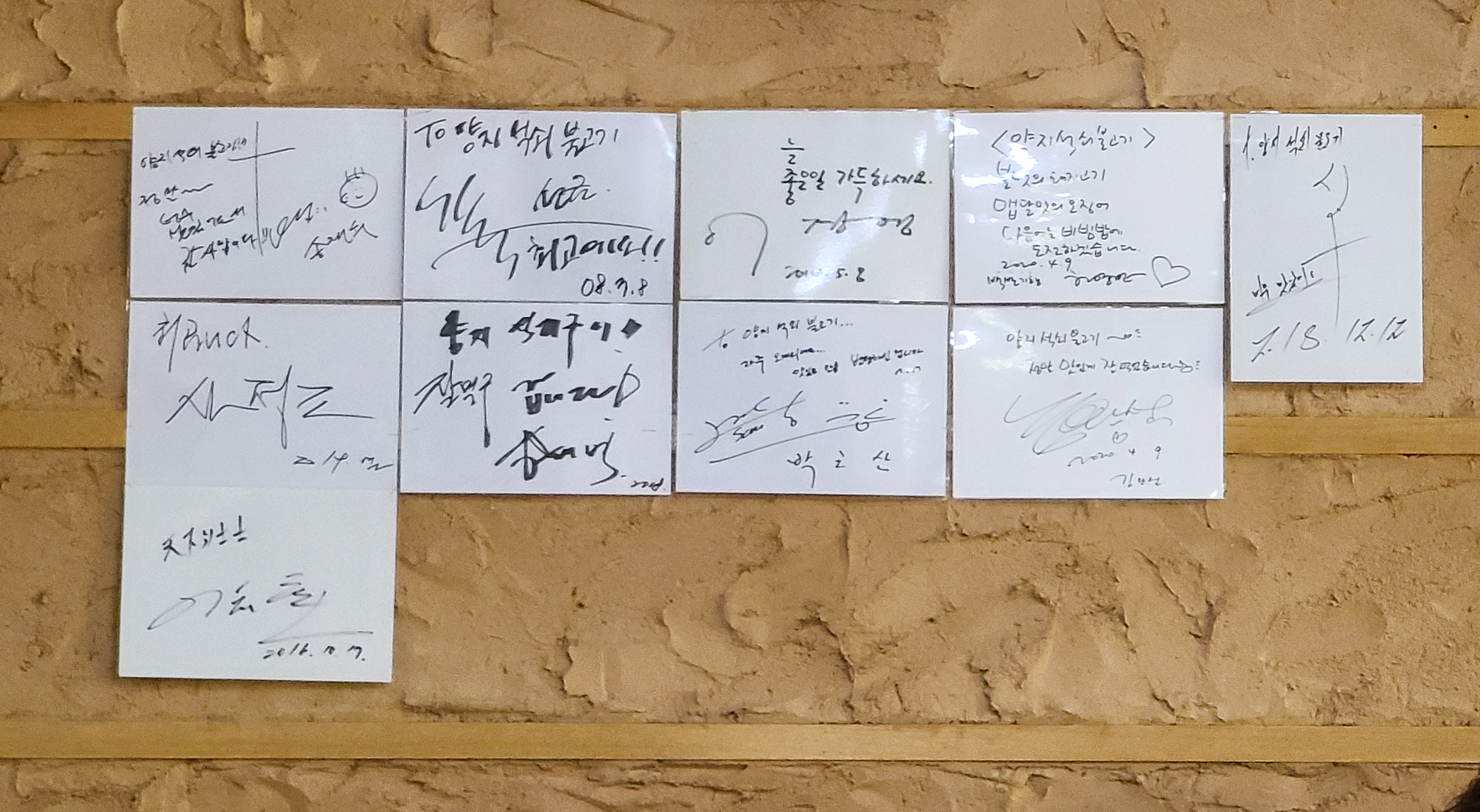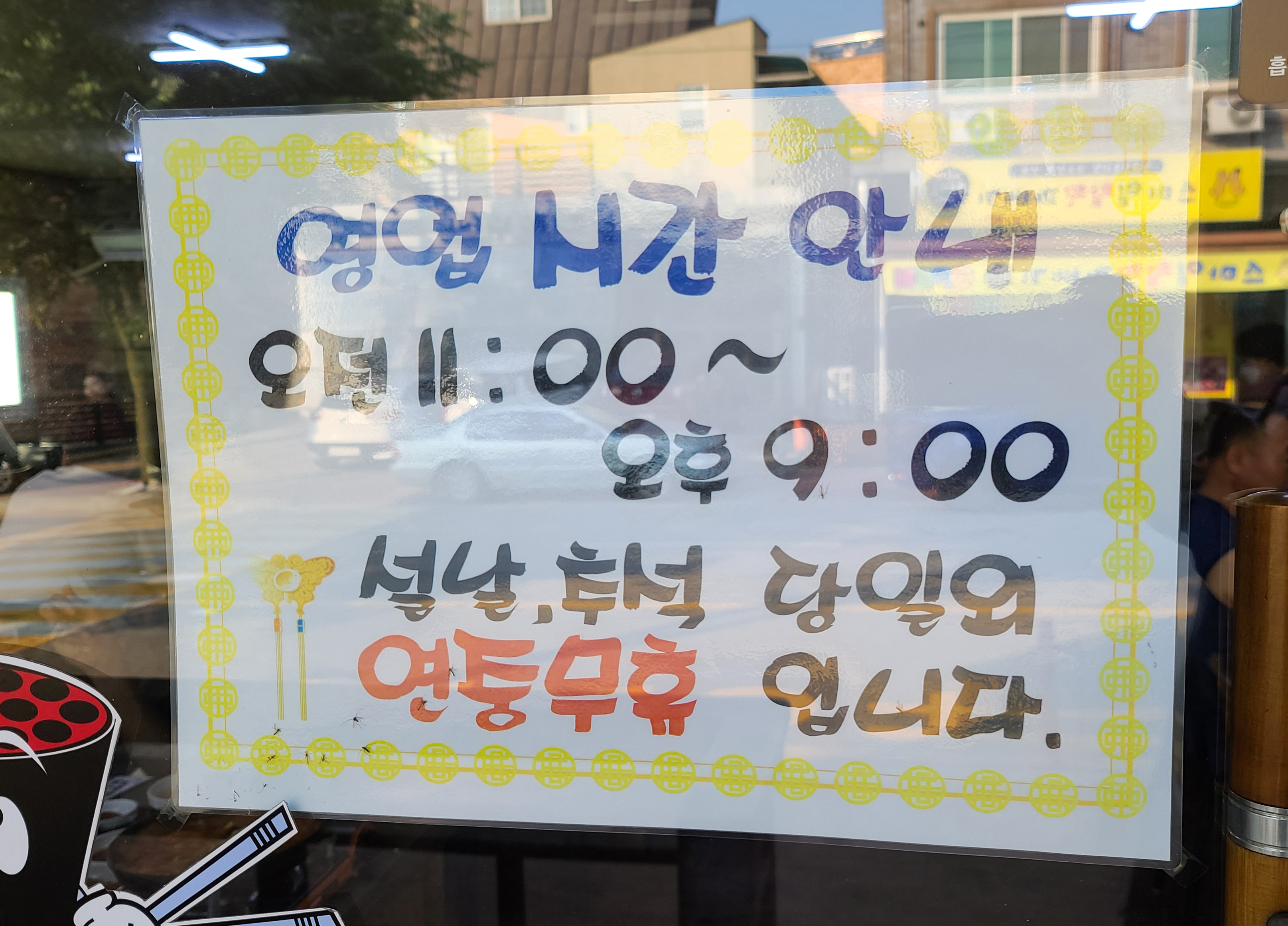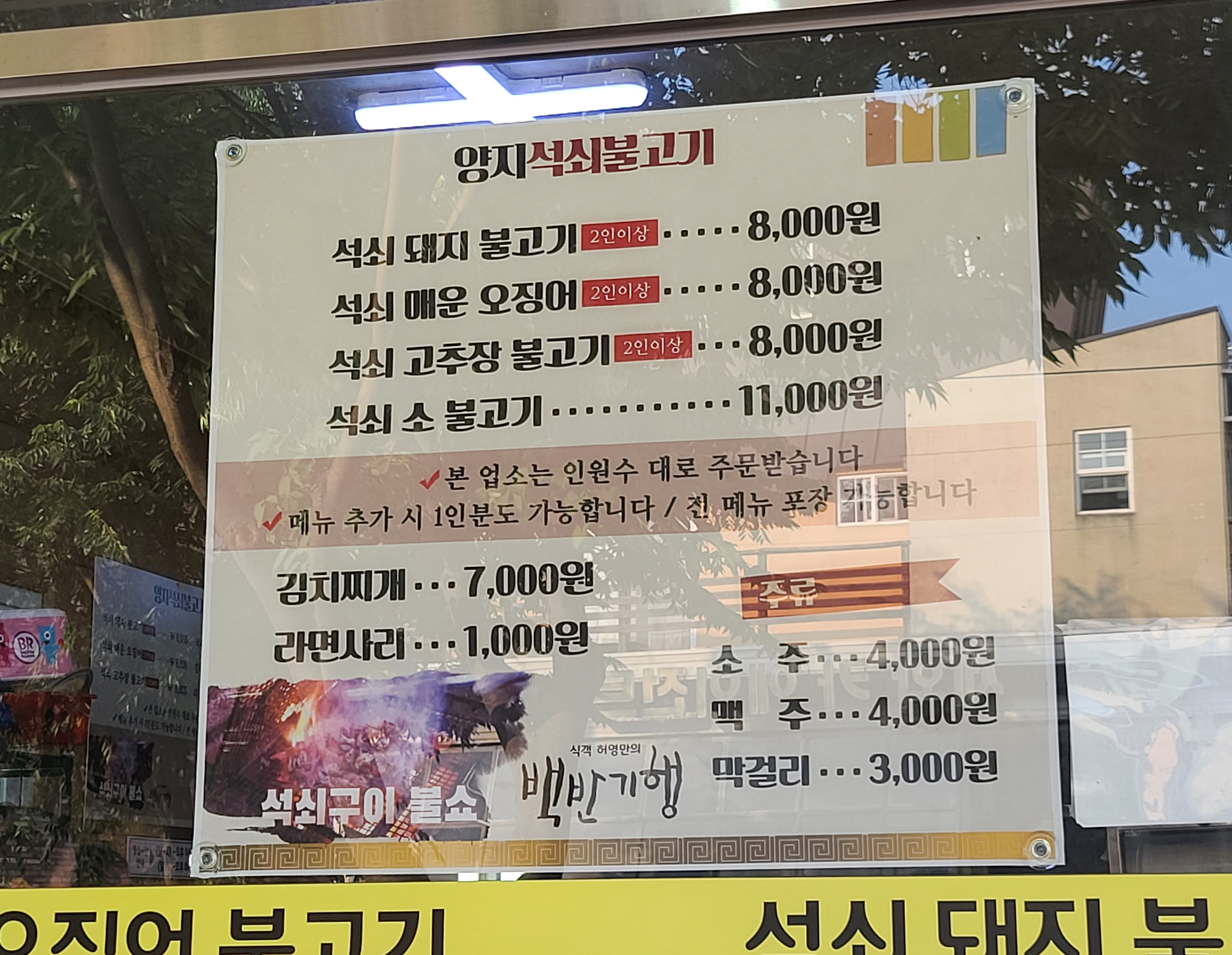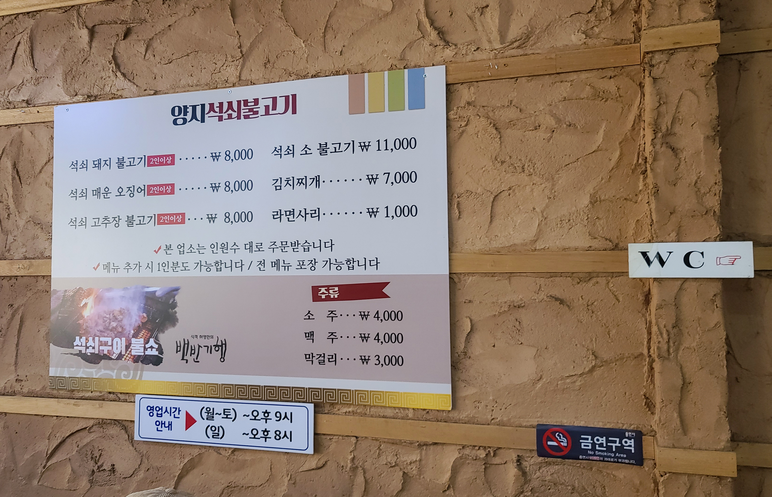 가게는 주차 공간이 별도로 마련되어있지는 않았고, 영업시간은 11:00~ 21:00 까지였습니다. 양지석쇠불고기는 명절을 제외하고 연중무휴로 운영되는 가게였습니다. 가게에는 각종 유명인들의 서명이 붙어있었습니다.