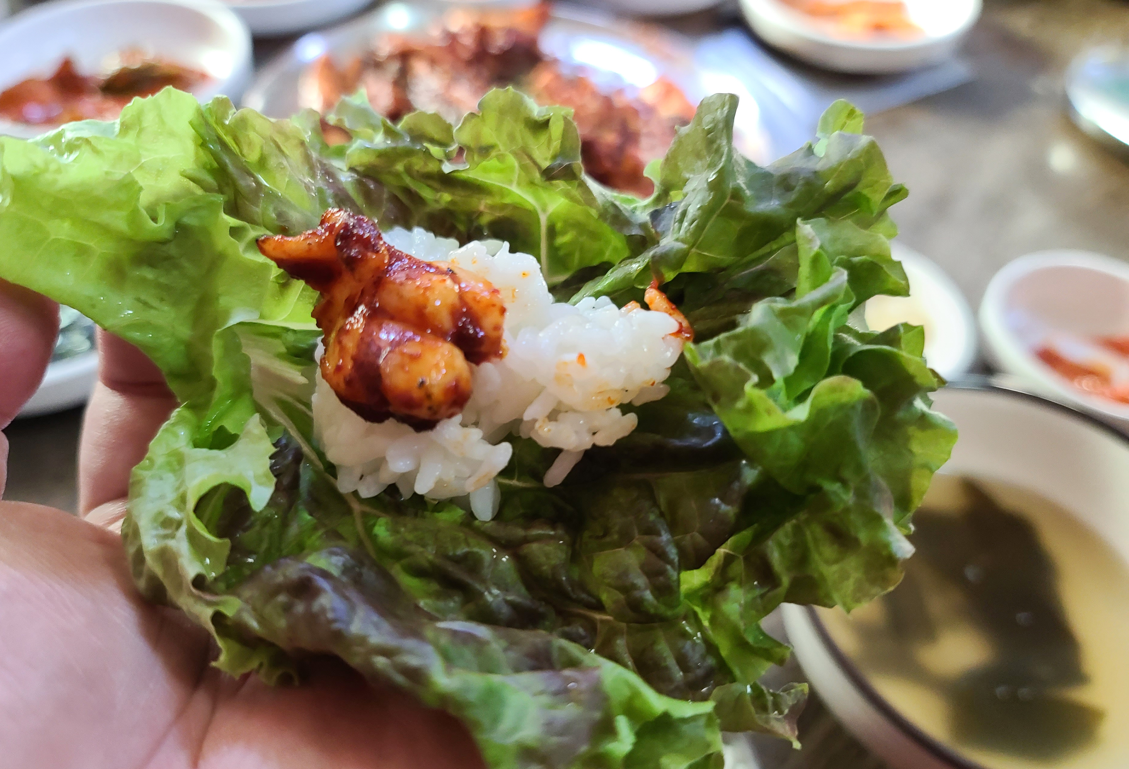 석쇠에 구워내어 그런지 불맛이 있었고, 매콤한 맛이 괜찮았습니다. 하지만 성인 기준으로 양은 좀 적었으며, 추가로 메뉴를 더 주문해야 하나 싶더라고요. 대부분의 손님들이 추가 메뉴를 주문해서 먹는 것을 볼 수 있었고요.