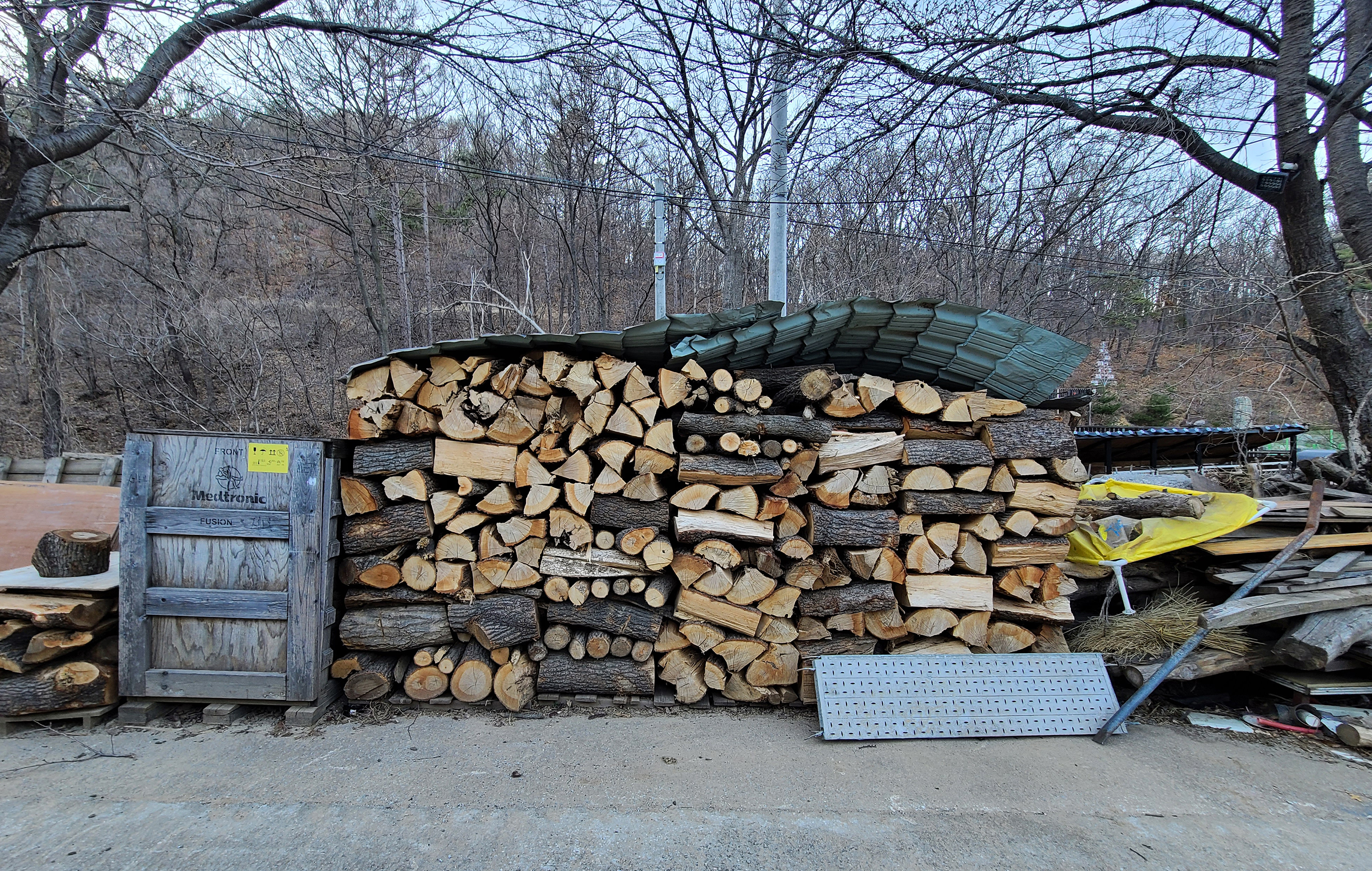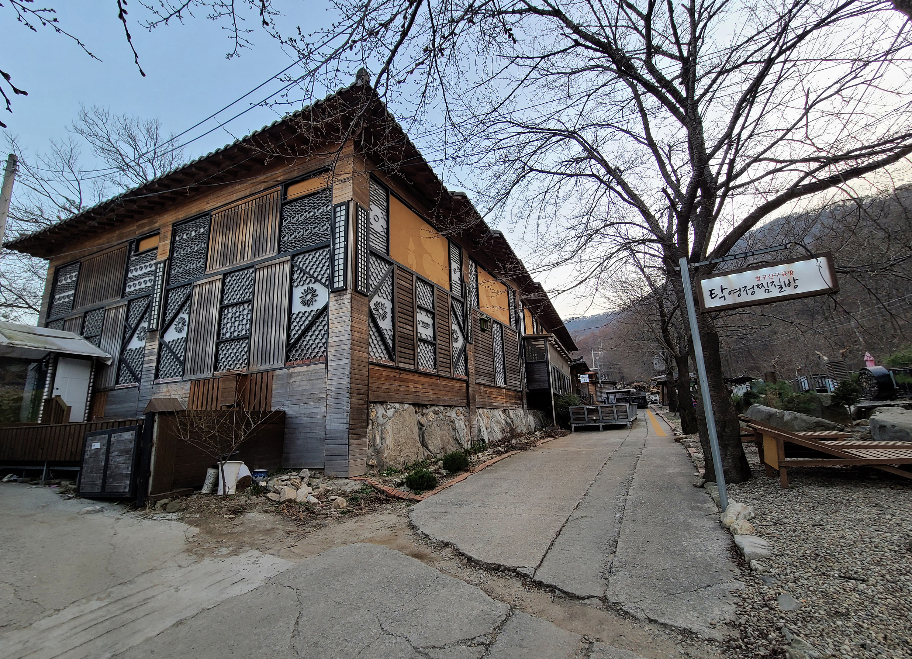 여유로운 오후 찜질방에 도착하여 곳곳을 돌아다니며 사진을 좀 찍어보았습니다. 역시 장작불로 구들방을 데우는 찜질방이다보니 장작들이 많이 보였고, 비가 많이와서 그런지 찜질방 앞에 흐르는 냇물도 물의 양이 많아져서 시원함을 더해주었습니다.