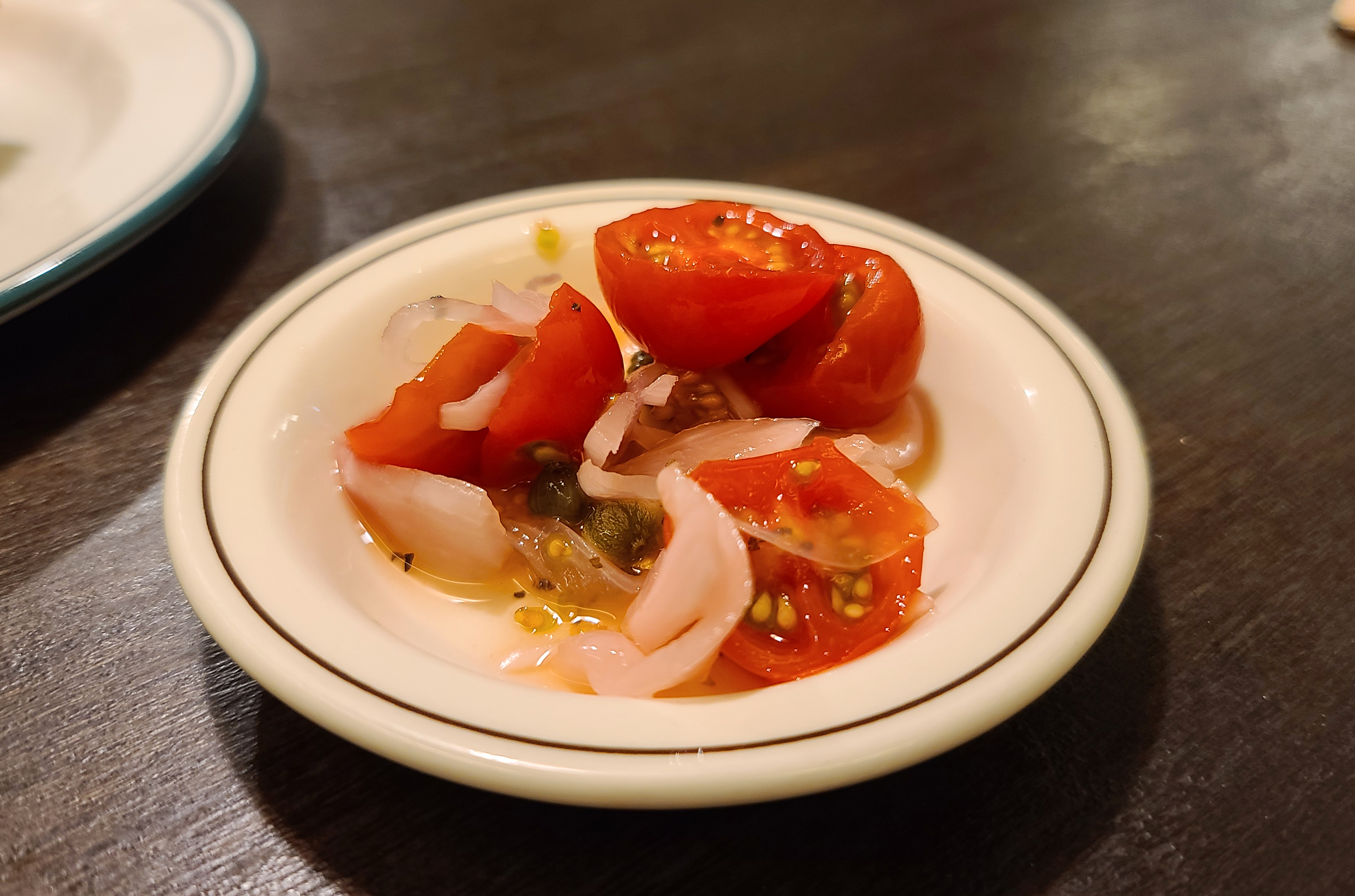 르프리크 가게에 들어가기 전 미리 햄버거를 주문하여 주문한 르 프리크의 시그니처 치킨버거를 바로 받을 수 있었고, 주문한 음료와 함께 햄버거에 곁들일 토마토 피클이 나왔습니다.