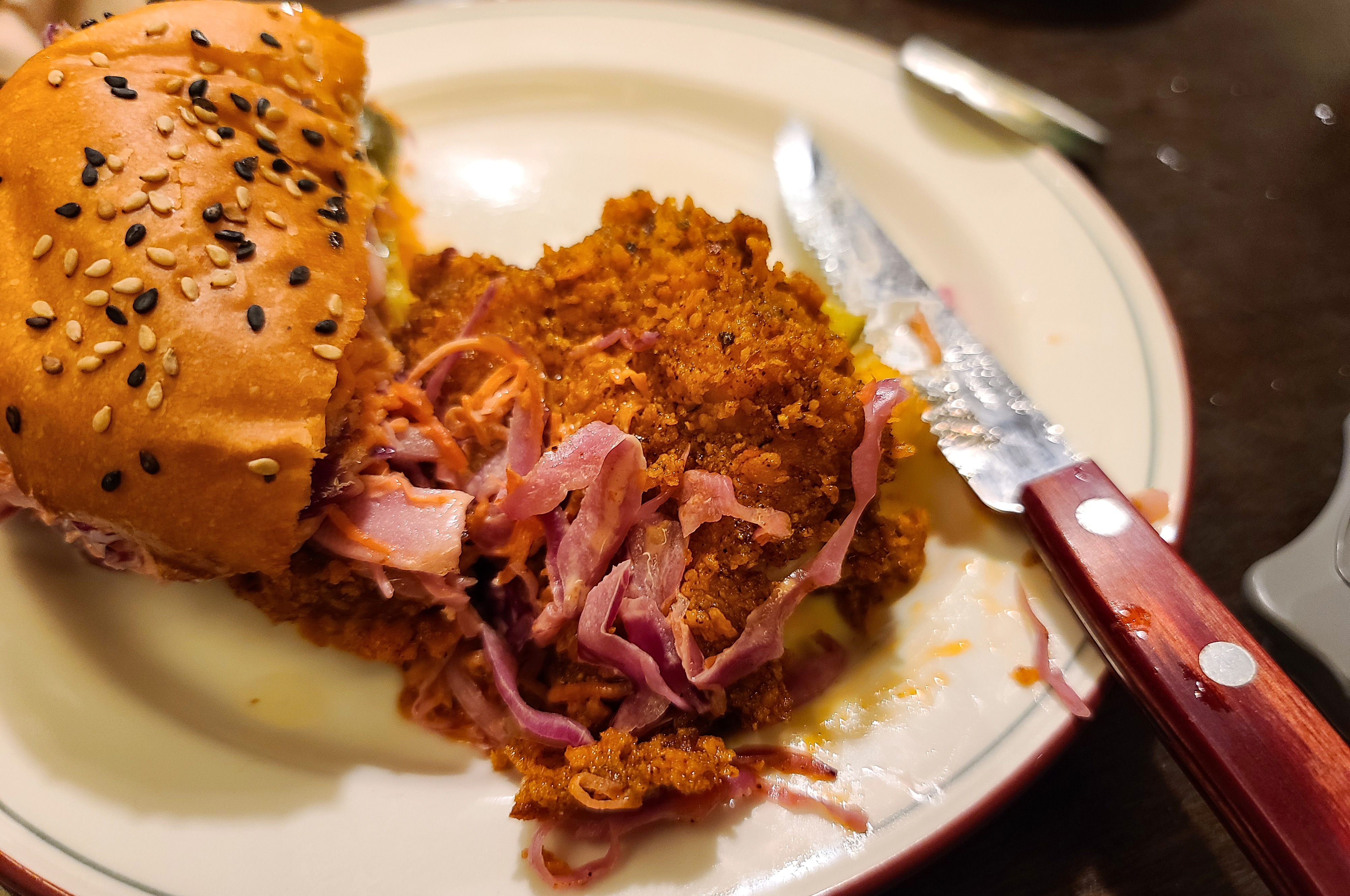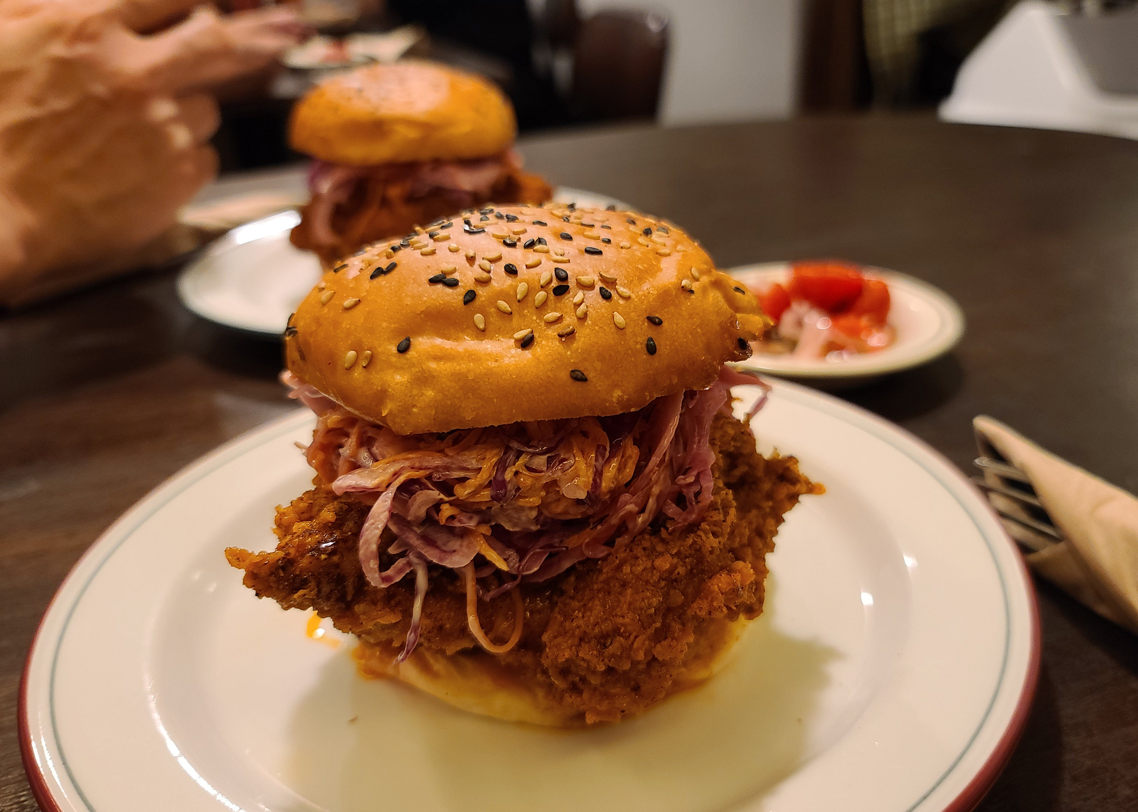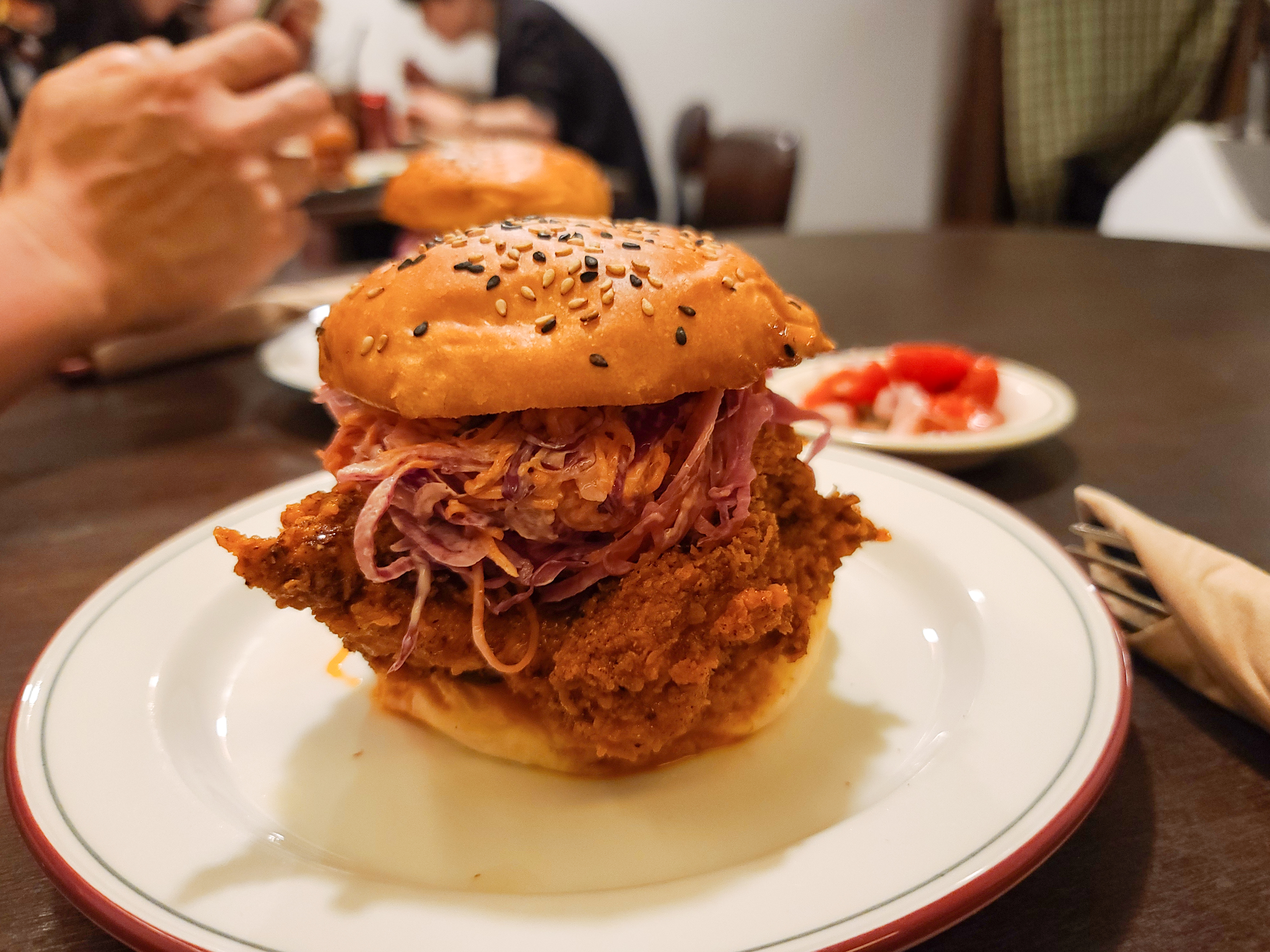 성수동 르프리크의 햄버거는 두툼한 통살 치킨 패티와 양배추 당근 등이 채 썰어 들어간 햄버거인데요, 버거의 번도 맛있고 약간 매콤하게 튀겨낸 치킨 패티도 고소하게 입맛을 자극하는 맛이었죠.