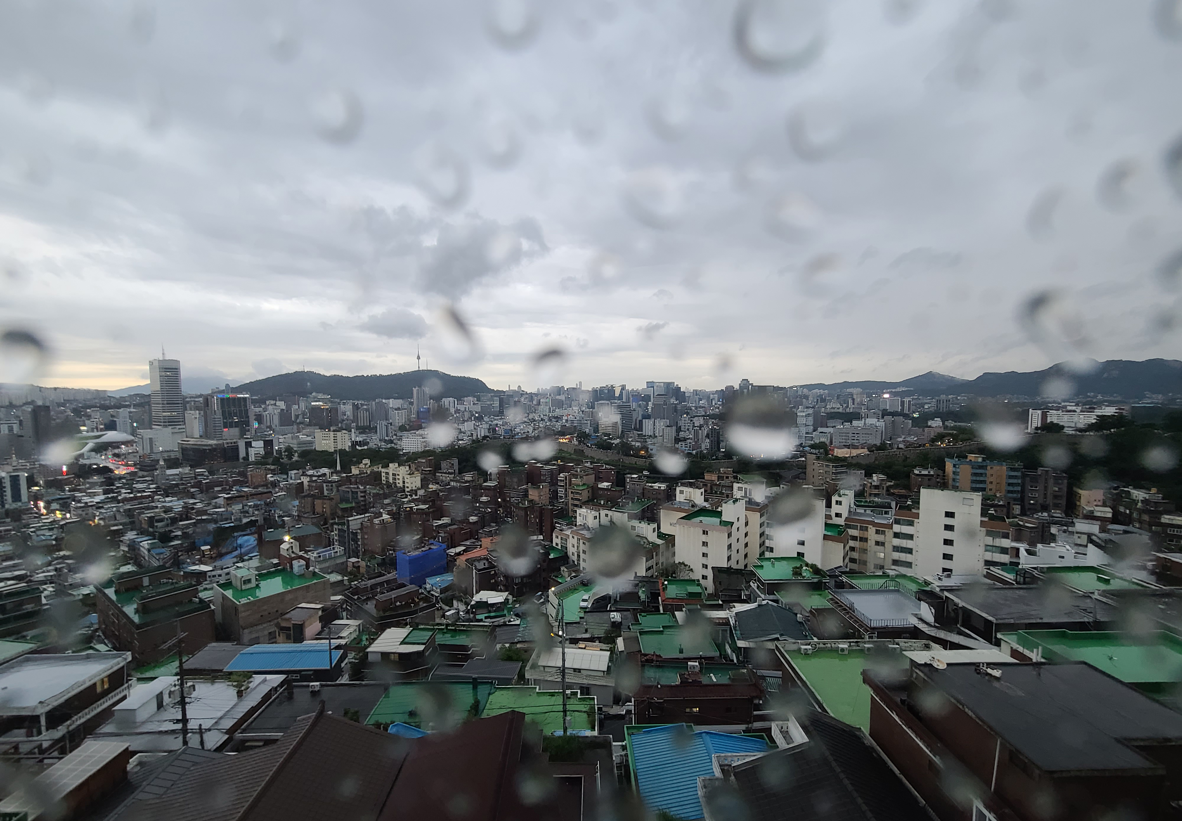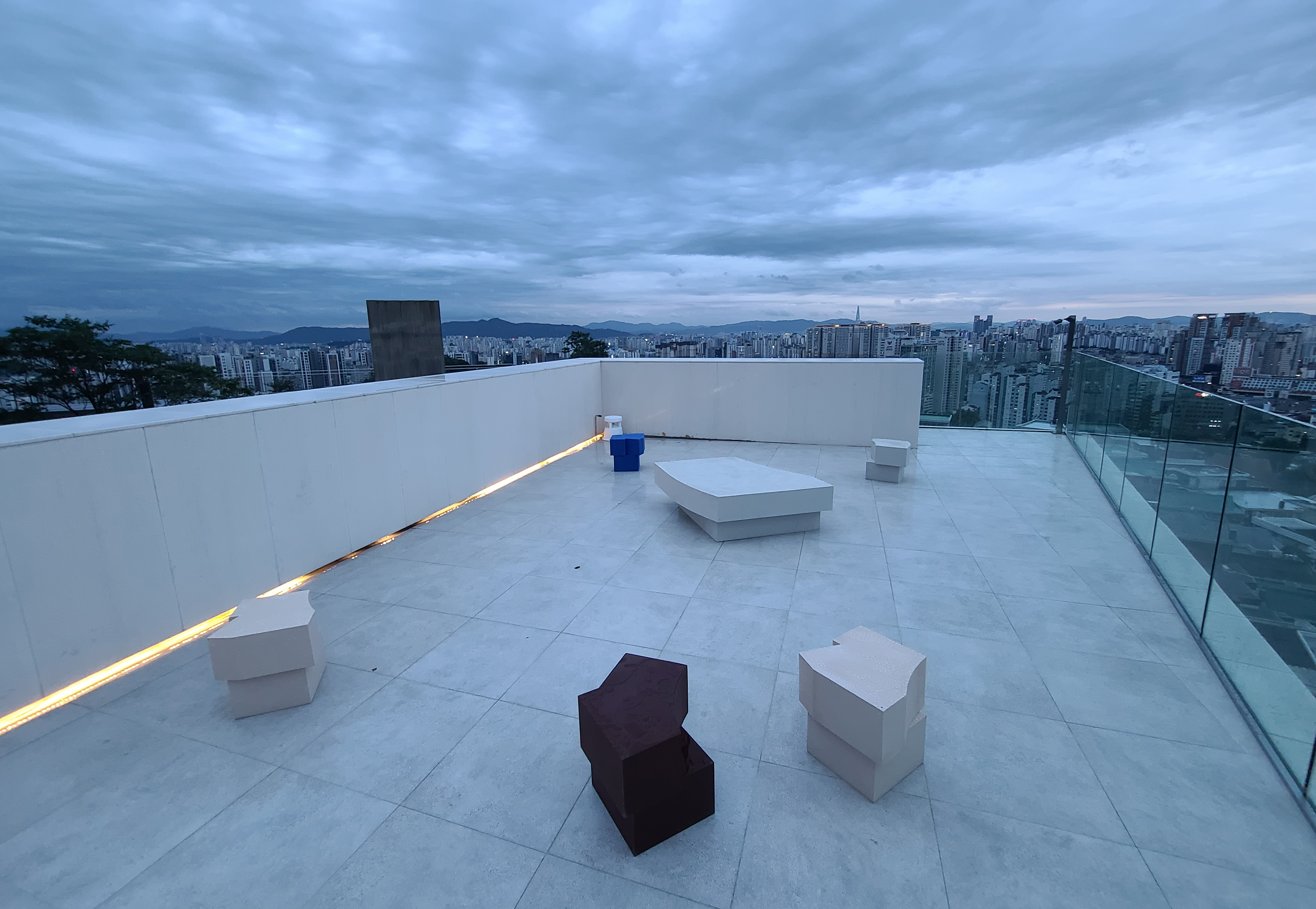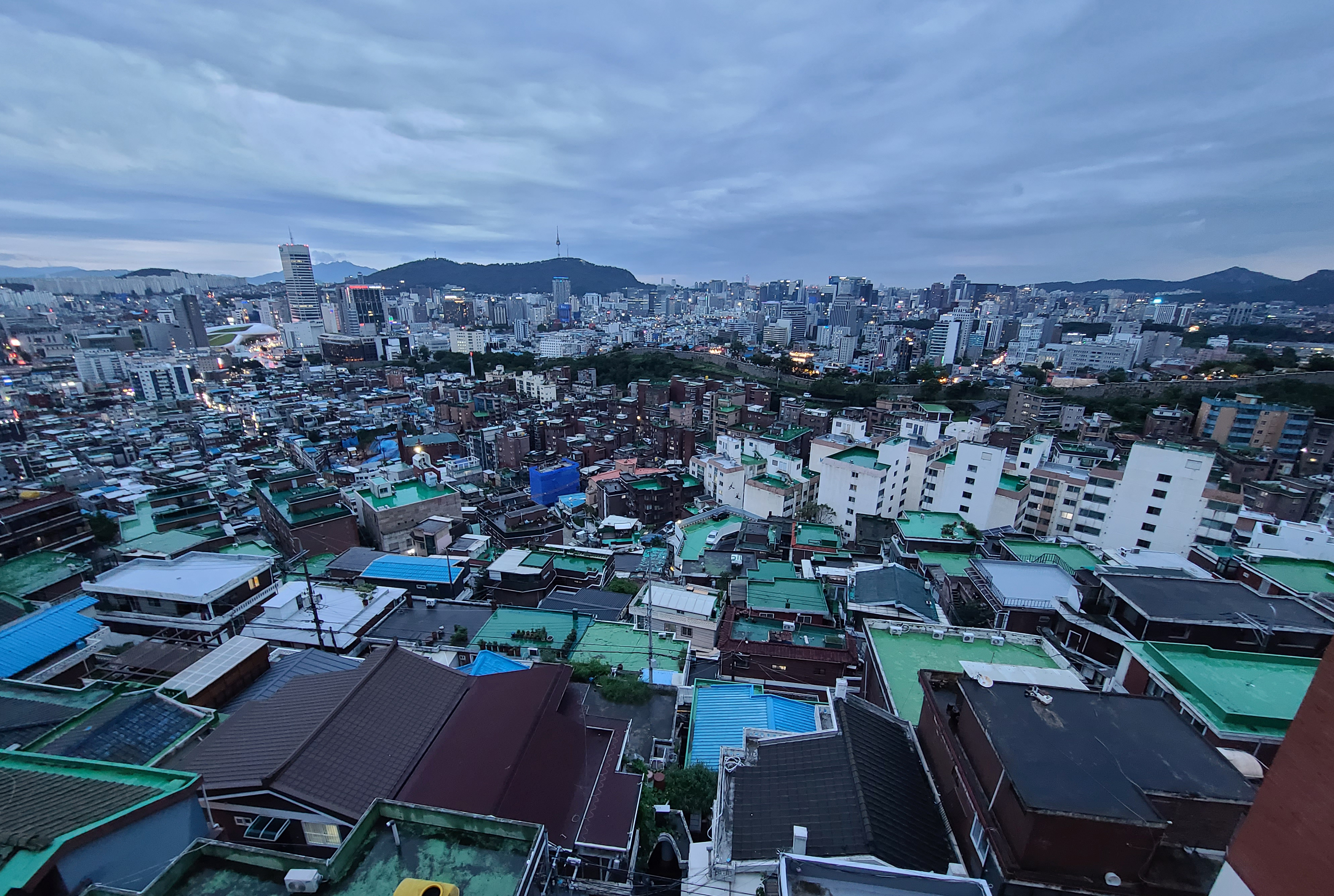 창신동 테르트르 카페의 외부로 통하는 계단을 따라 올라가면 루프탑이 나오는데, 이 날은 비가 계속 내려서 이용할 수 없겠거니 하고 바깥구경하는 것을 포기하고 있었는데, 다행히 비가 그치면서 루프탑에서 서울을 내려다보는 야경을 감상할 수 있었습니다.