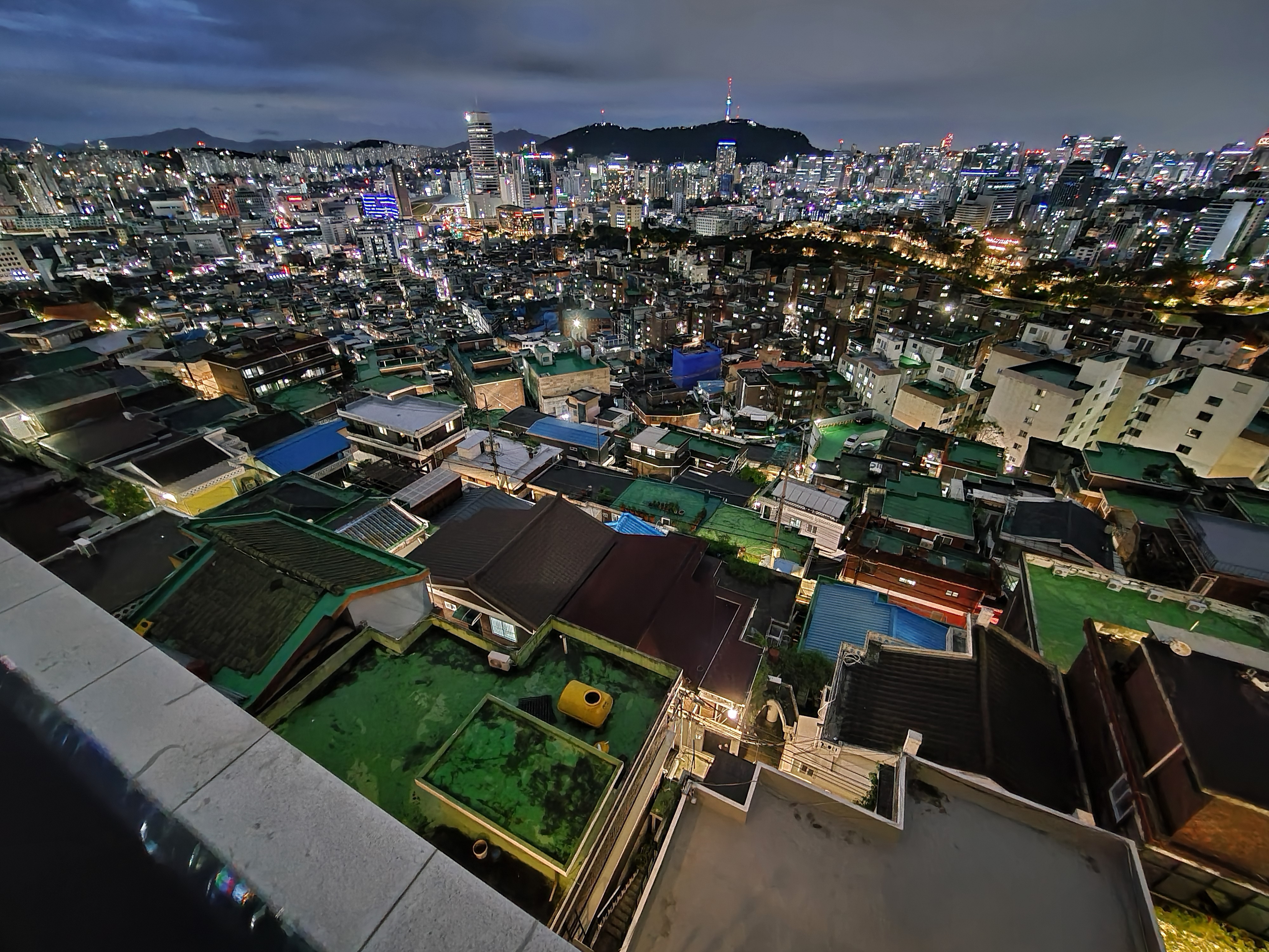 창신동 테르트르 카페의 외부로 통하는 계단을 따라 올라가면 루프탑이 나오는데, 이 날은 비가 계속 내려서 이용할 수 없겠거니 하고 바깥구경하는 것을 포기하고 있었는데, 다행히 비가 그치면서 루프탑에서 서울을 내려다보는 야경을 감상할 수 있었습니다.