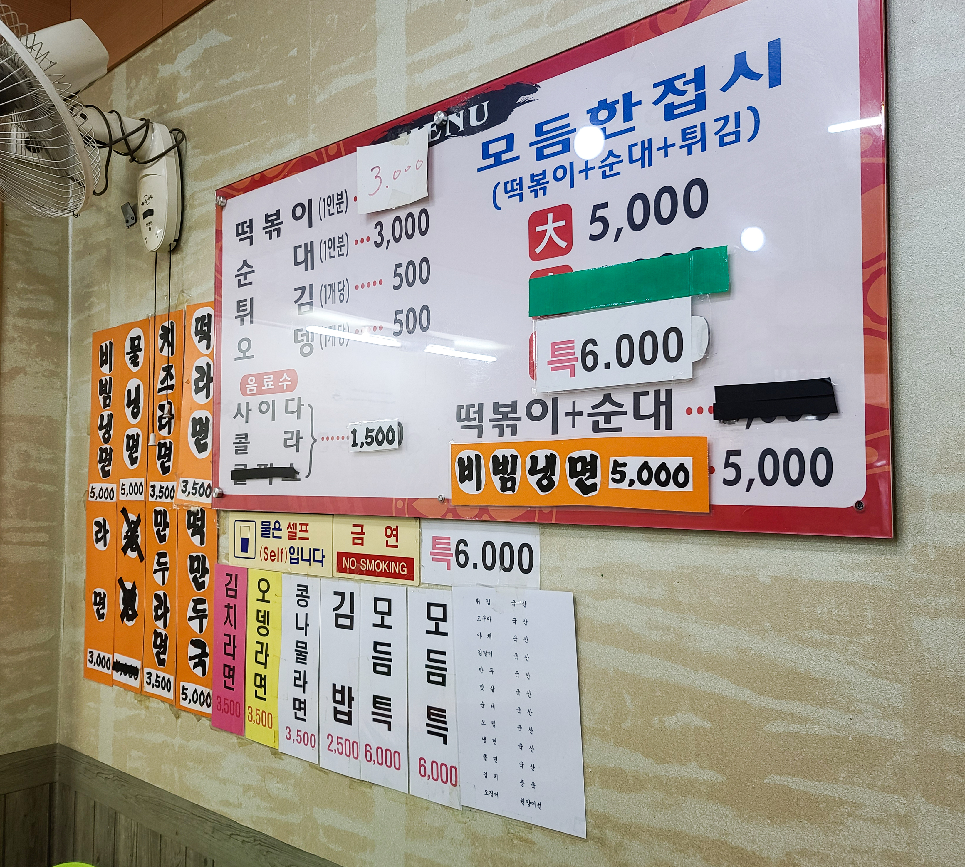 생활의 달인에 나온 맛집을 썩 신뢰하는 편이 아니라, 불안한 마음이 앞섰지만 오렌지 분식의 사장님 노부부는 그런 편견을 깰 수 있게 친절하게 맞아주셨습니다. 분식집은 요즘 보기가 참 어려운데, 전통시장 내 위치한 분식집이라 그런지 다양한 먹거리를 판매하고 있었습니다. 떡볶이는 물론이고, 순대, 튀김, 오뎅, 김밥, 라면, 냉면 등을 판매하고 있었습니다.