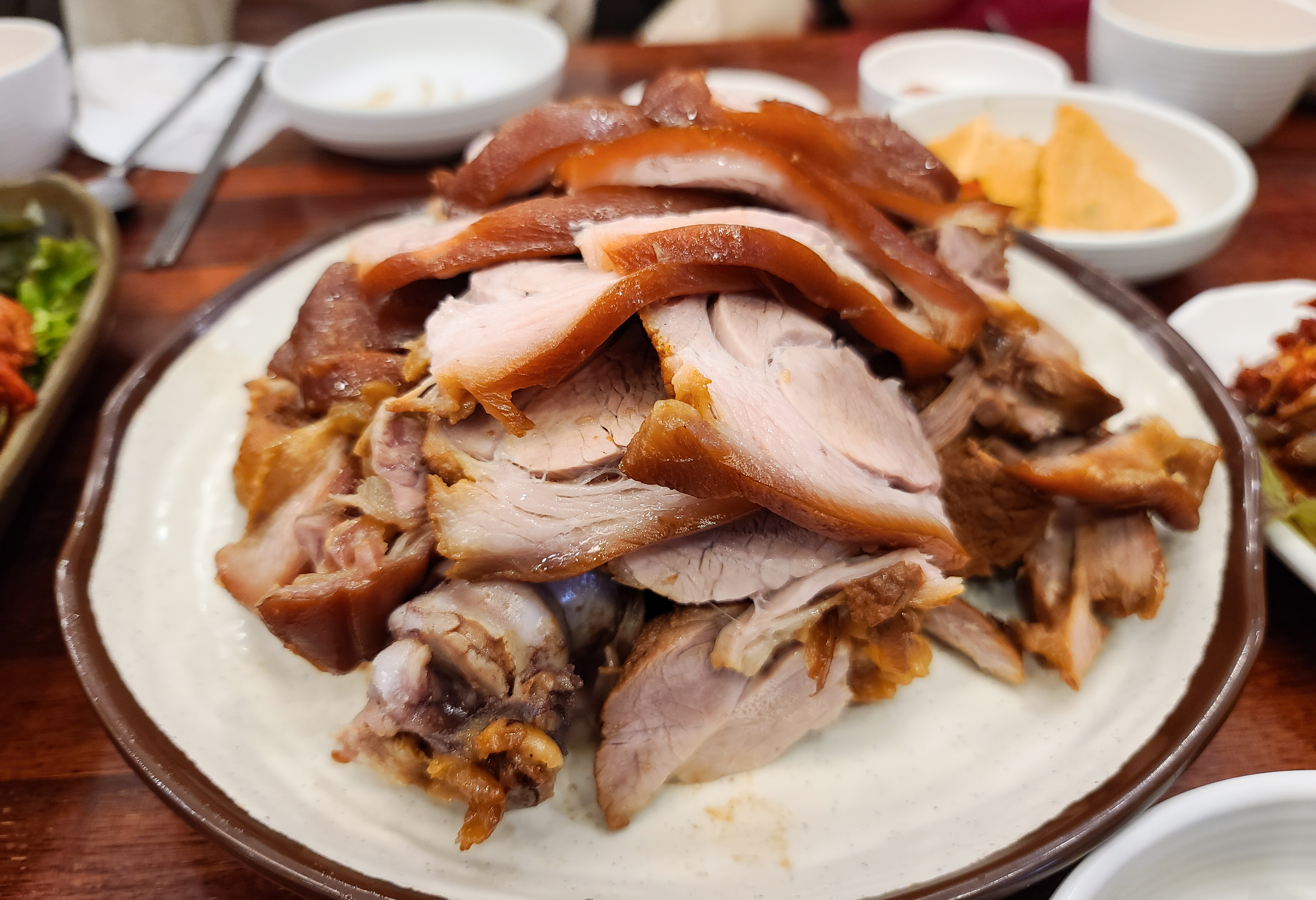 곧이어 주문한 족발이 나왔습니다. 큼직큼직하게 썰어져 나온 족발과 맛있게 무쳐낸 보쌈김치가 정말 잘 어울렸습니다. (포스팅하고 있는 지금도 김치와 족발을 보며 군침이 도는데요.)