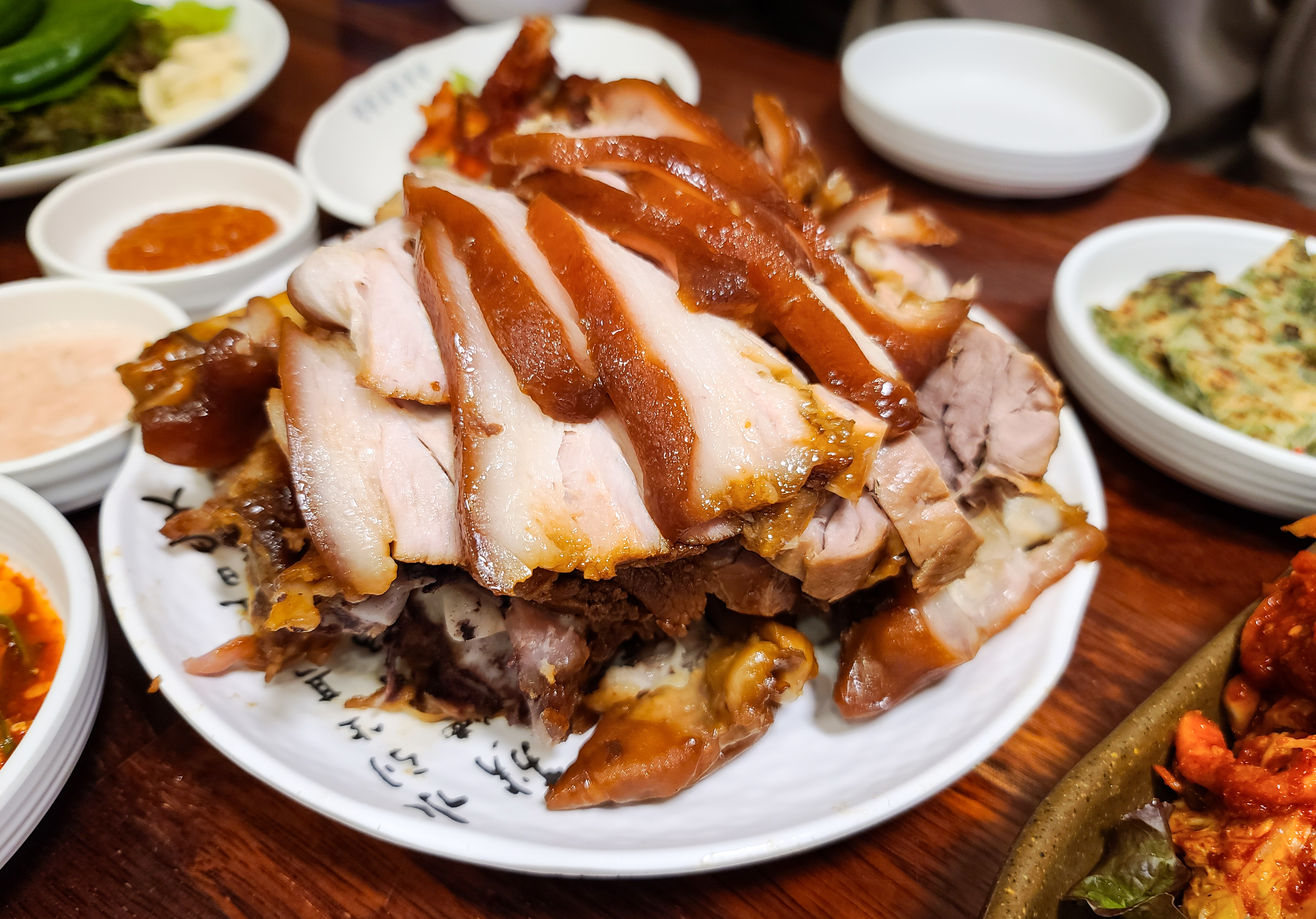 곧이어 주문한 족발이 나왔습니다. 큼직큼직하게 썰어져 나온 족발과 맛있게 무쳐낸 보쌈김치가 정말 잘 어울렸습니다. (포스팅하고 있는 지금도 김치와 족발을 보며 군침이 도는데요.)