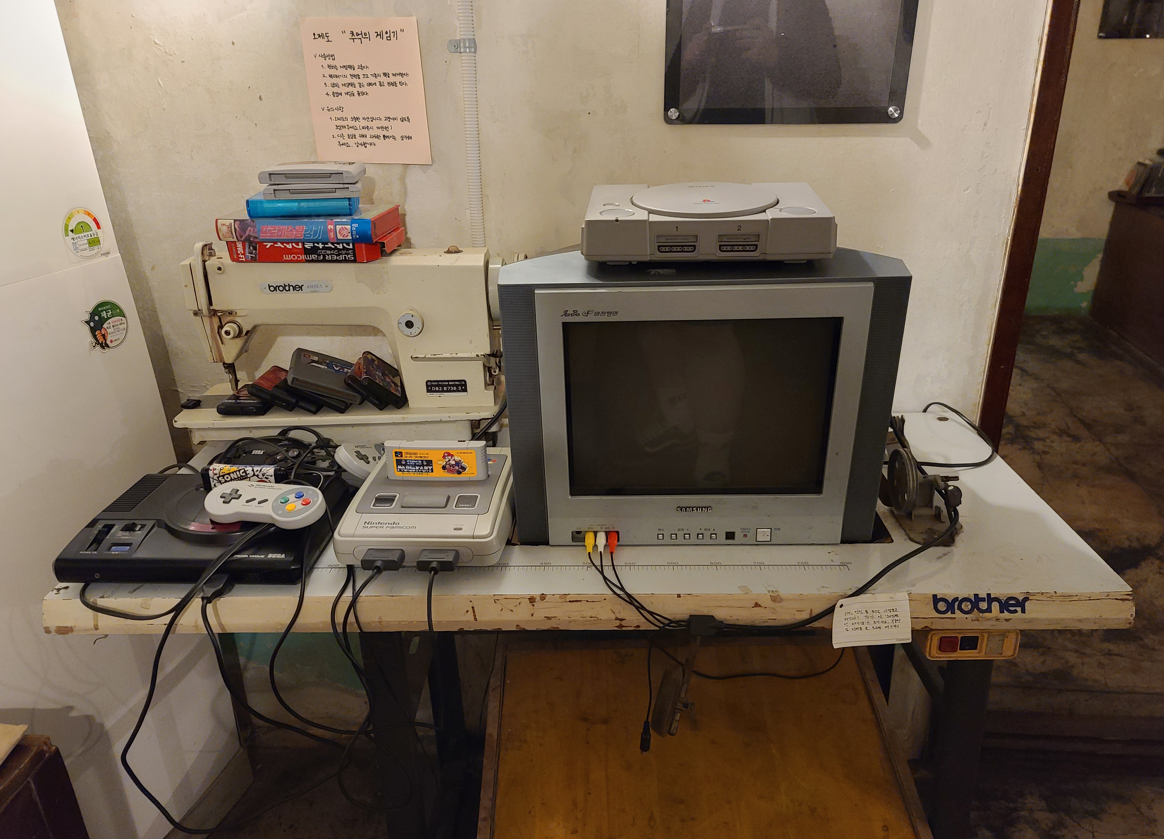 제가 앉은자리는 실제 패미콤과 그 밖의 미니 오락기들을 작동해볼 수 있는 자리였는데요, 잘은 못하지만 스트리트 파이터도 오랜만에 해보니 재미있더라고요. 스트리트 파이터 2 게임을 몇 판 하면서, 저는 게임에는 소질이 없다는 것을 다시금 깨달았죠.