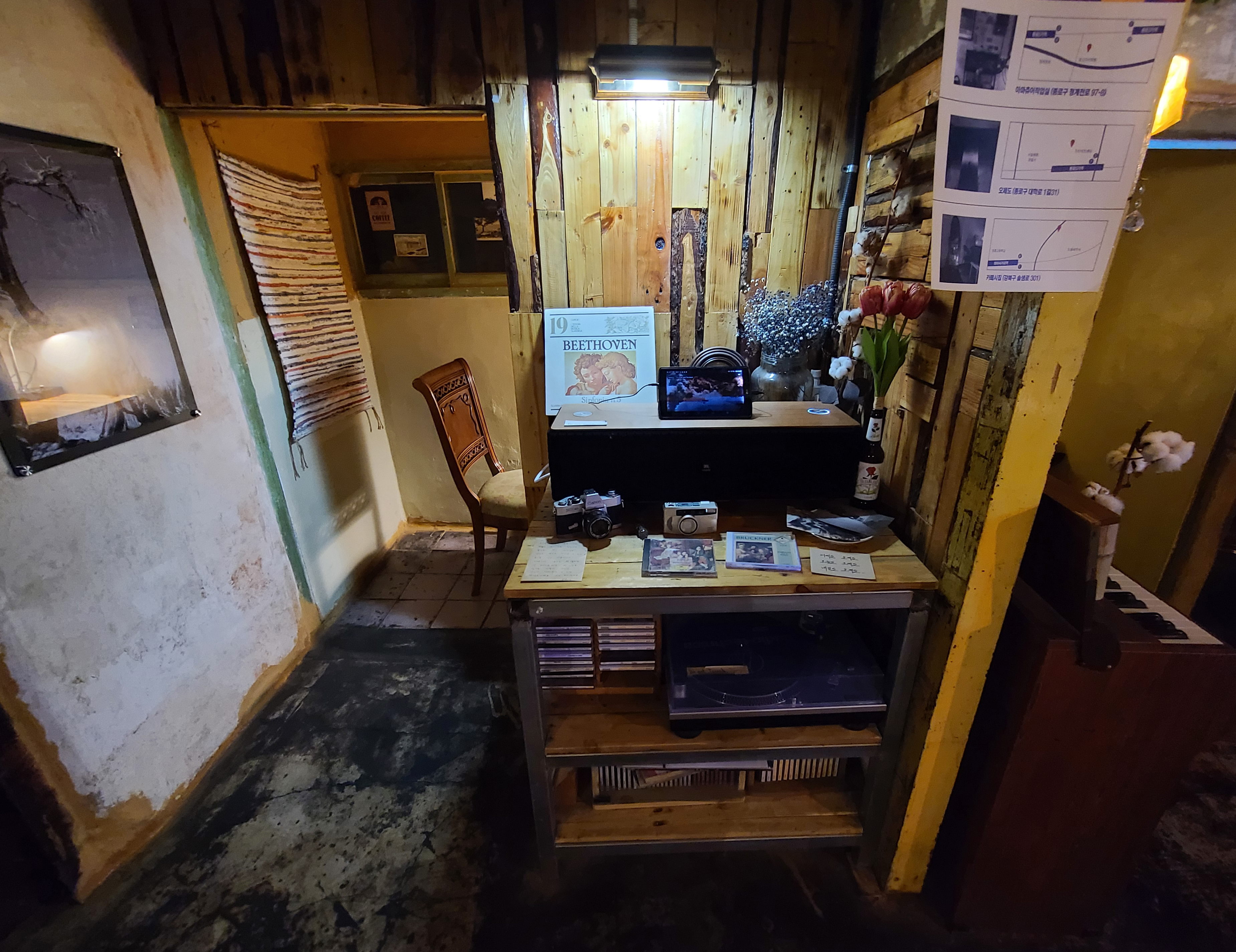 곧이어 진동벨이 울렸고, 음료를 받아왔습니다. 음료는 가게 사장님 말로는 특별하다고 하는데, 커피 맛은 제 취향은 아니더라고요. 그냥 분위기 값이라고나 할까요? 이제 커피를 받았으니 가게 곳곳을 둘러보기로 하였죠.